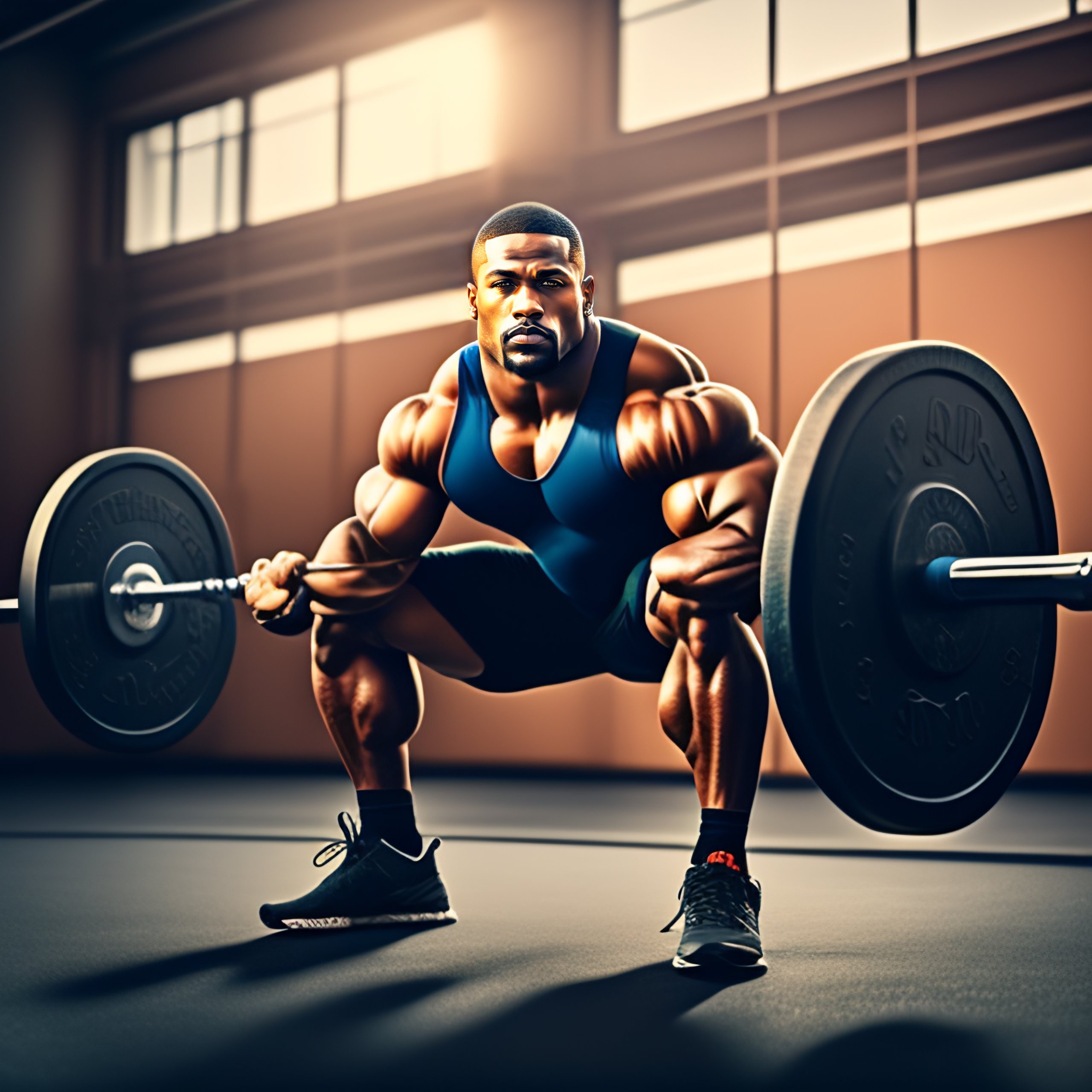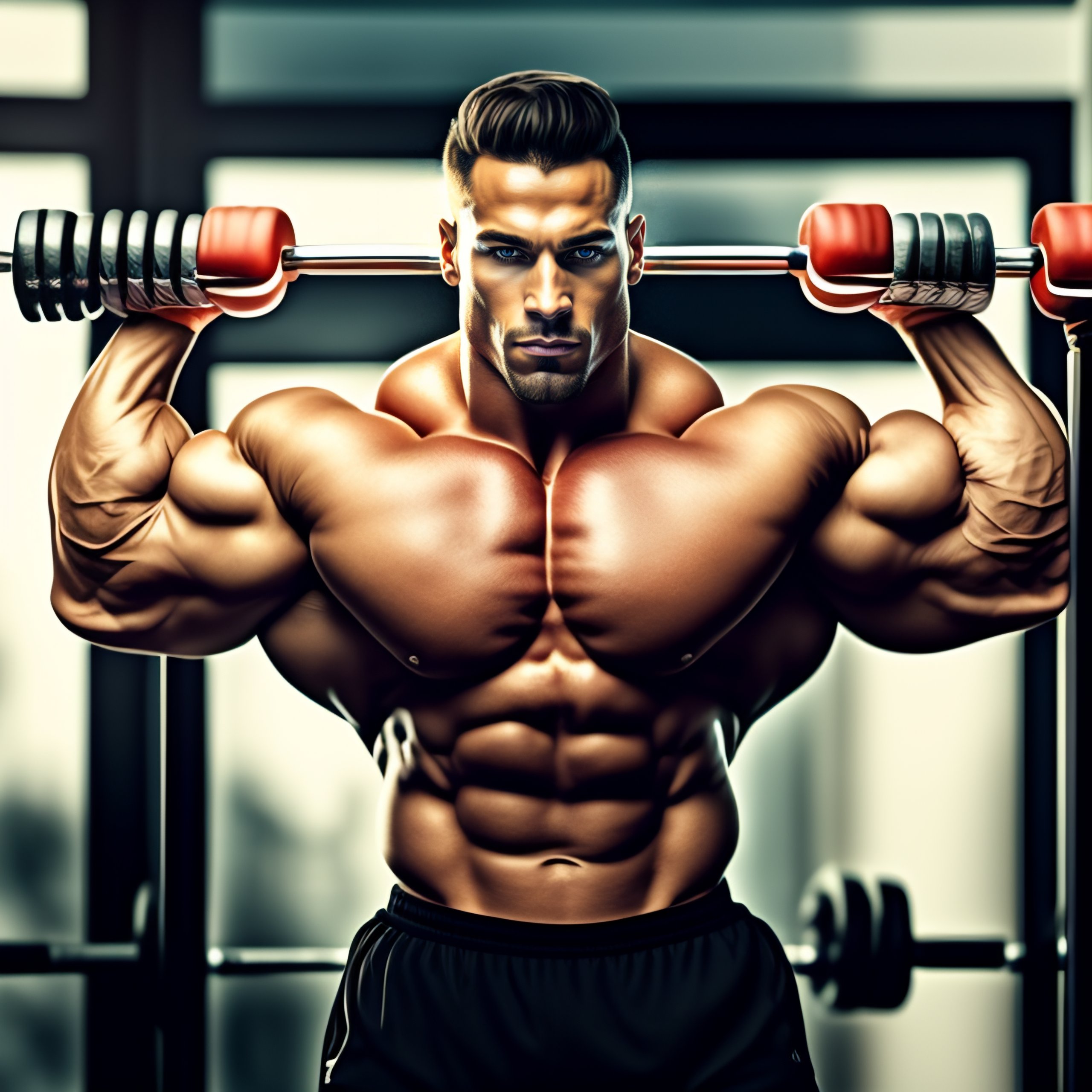 Portrait of a bodybuilder lifting weights outside