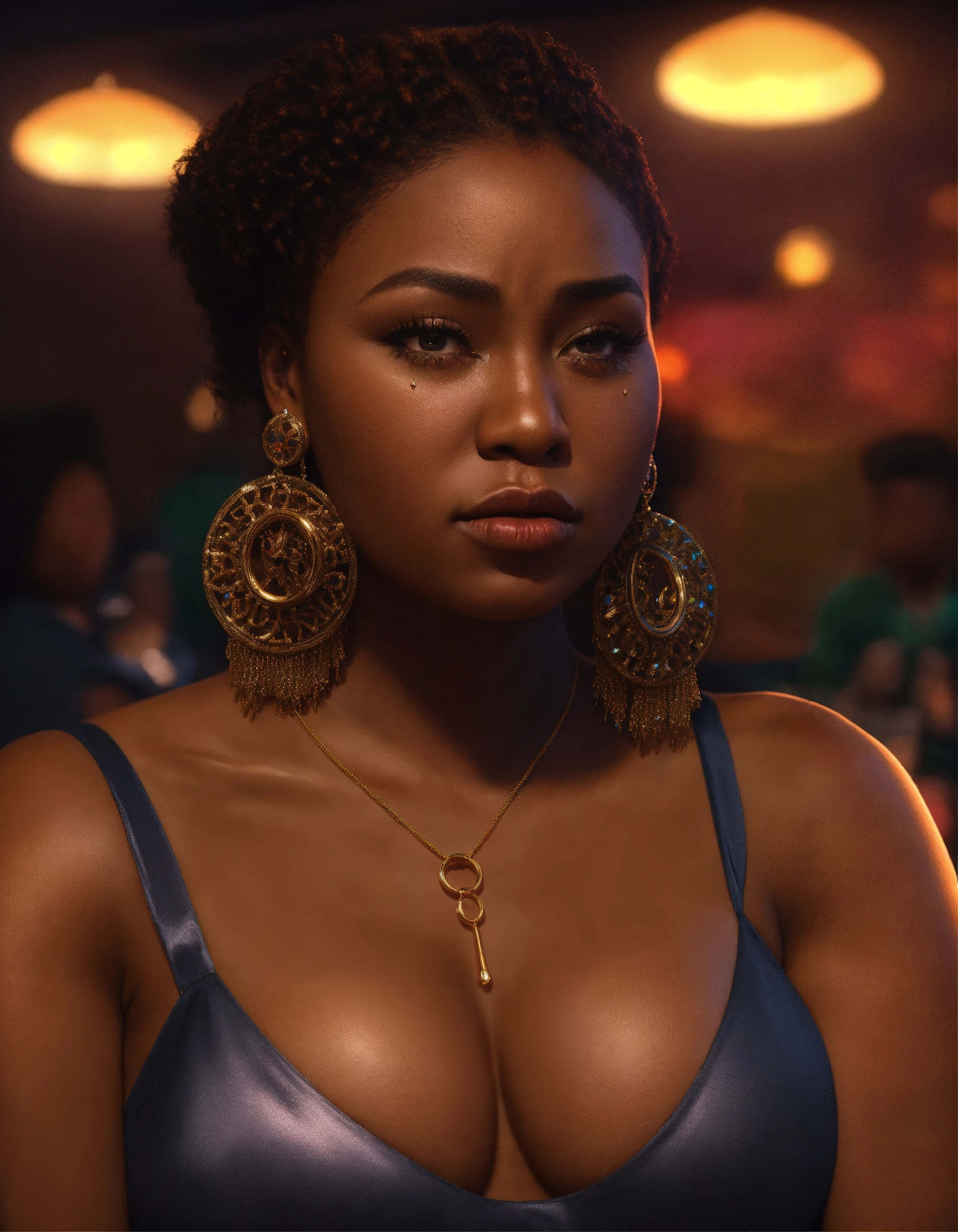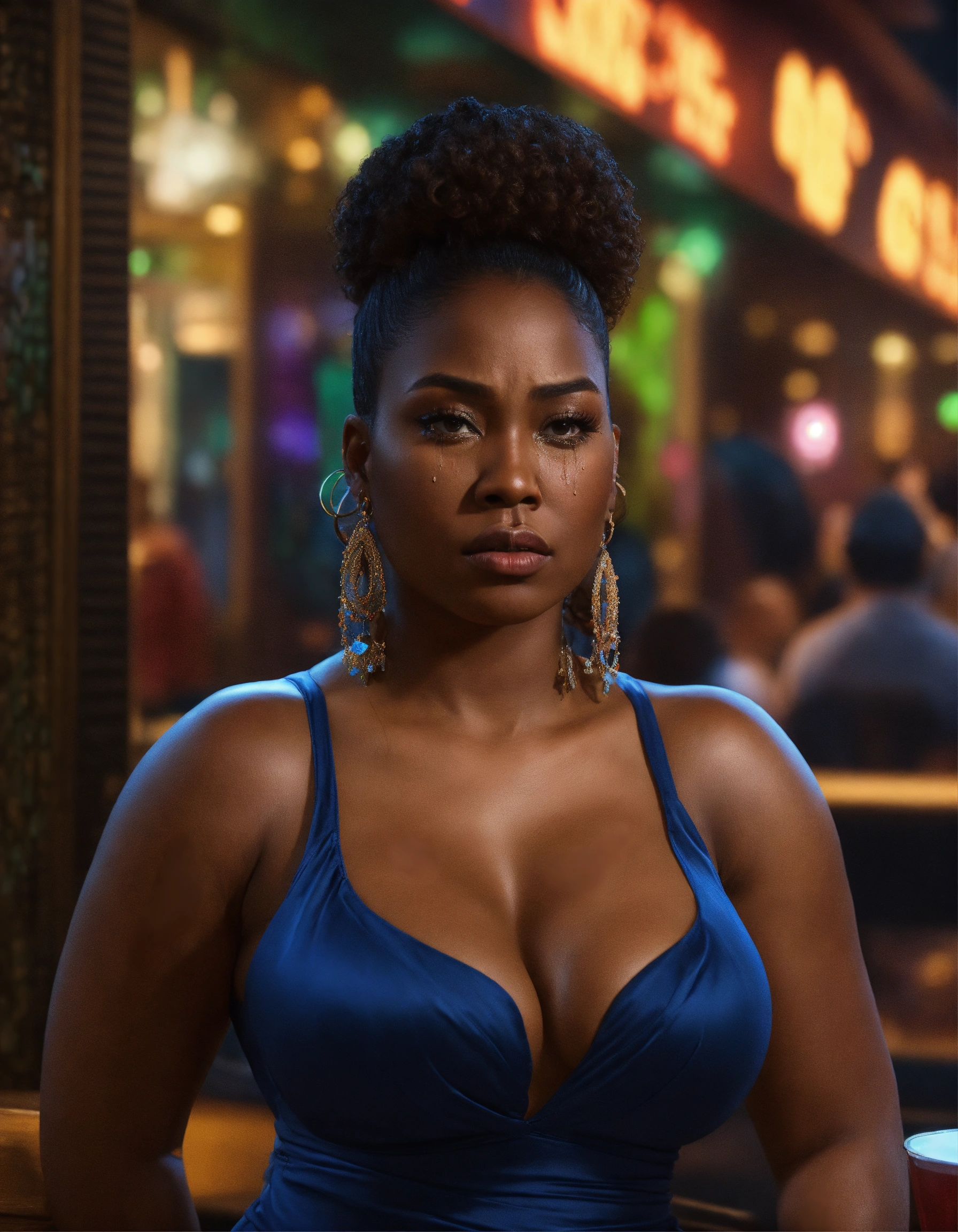 Mommy body . mighty plump. 8k resolution . highly detailed . gorgeous woman . very beautiful lady . black woman . mocha skin, carmen hayes, p valley, crawl, realistic, crying tears on cheek, ashamed face, nightclub