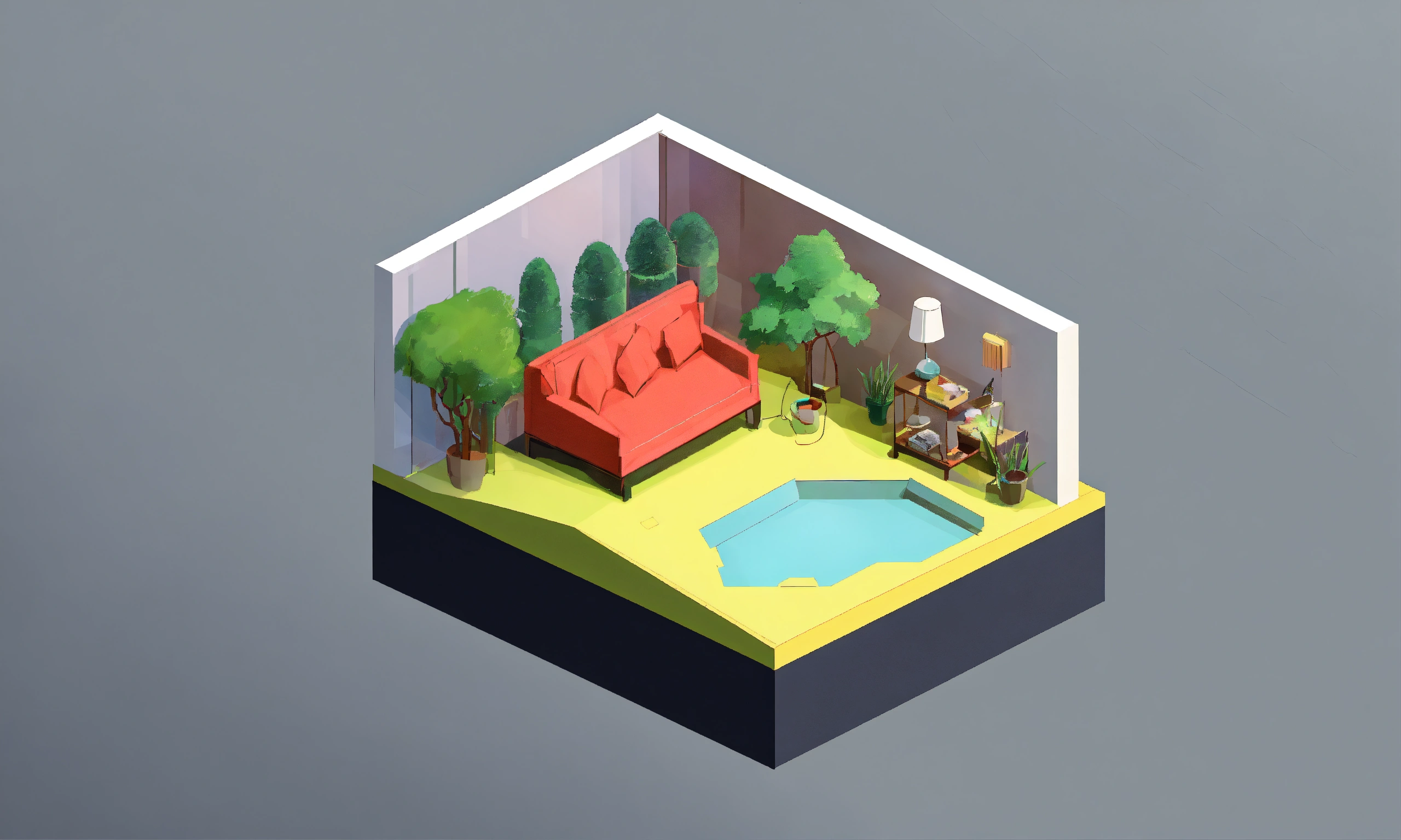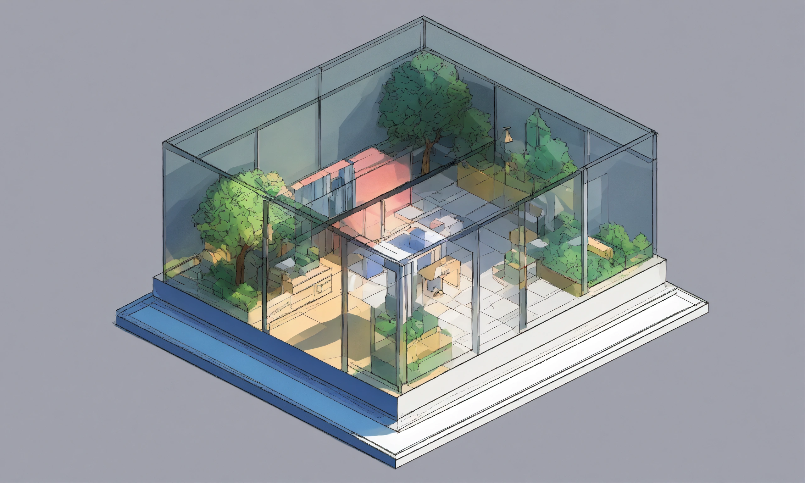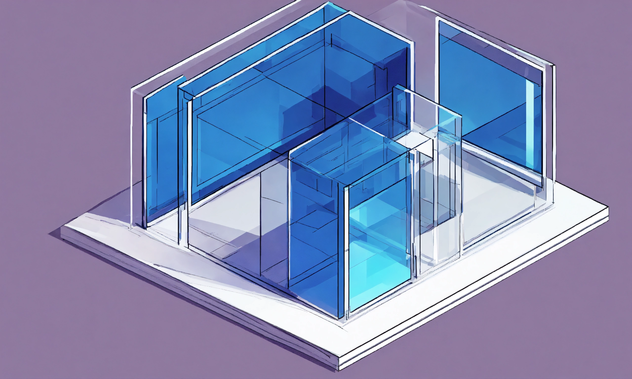 Isometric sketch of a flat transparent square area highlighting, simple one color, light background, flat