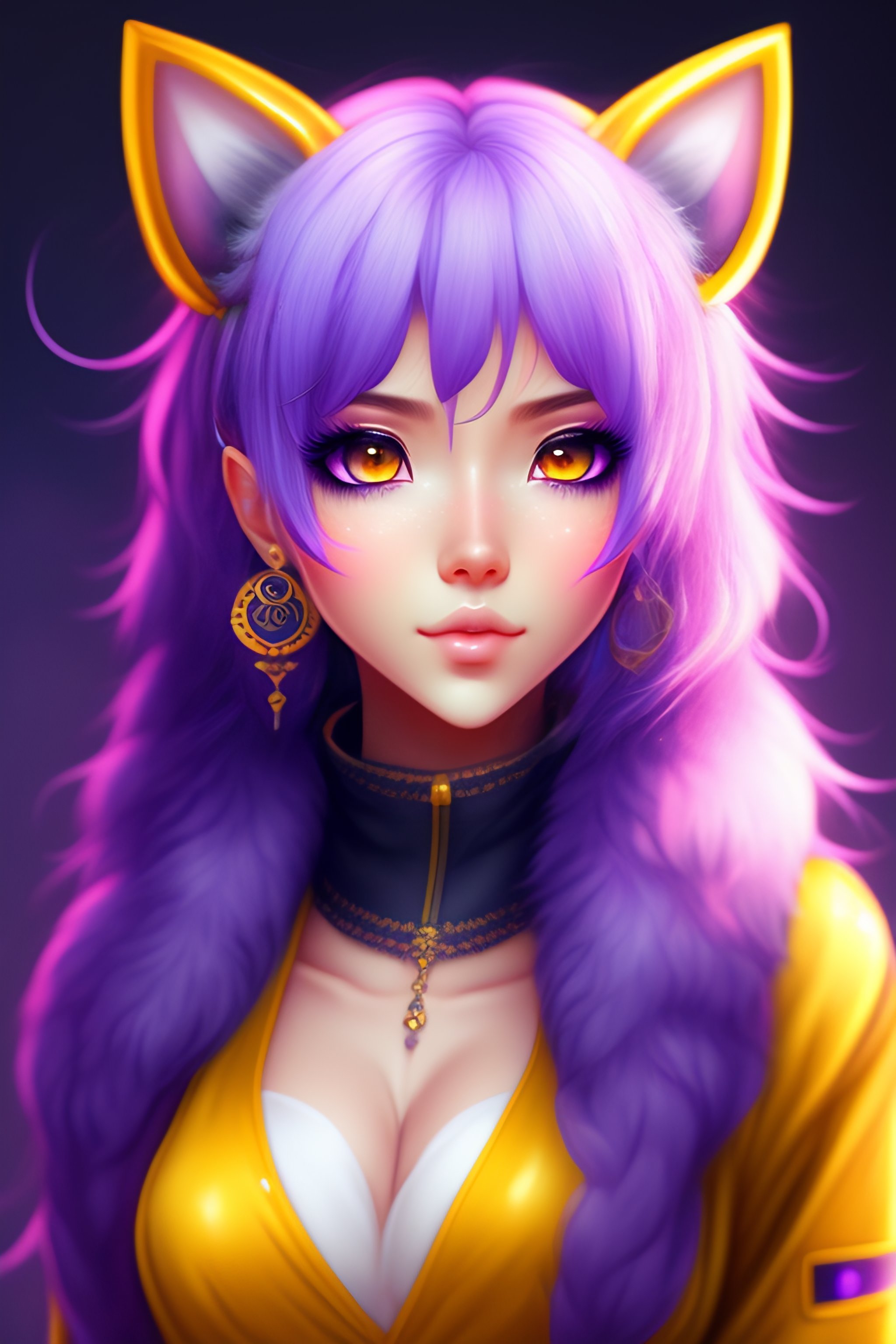 A furry with lavender and yellow fur digital art cute anime eyes fursona cartoony