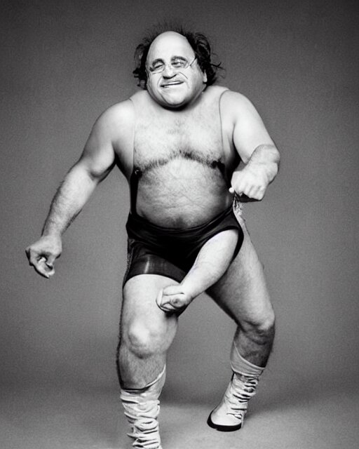 Portrait of danny devito as a professional wrestler. photographic