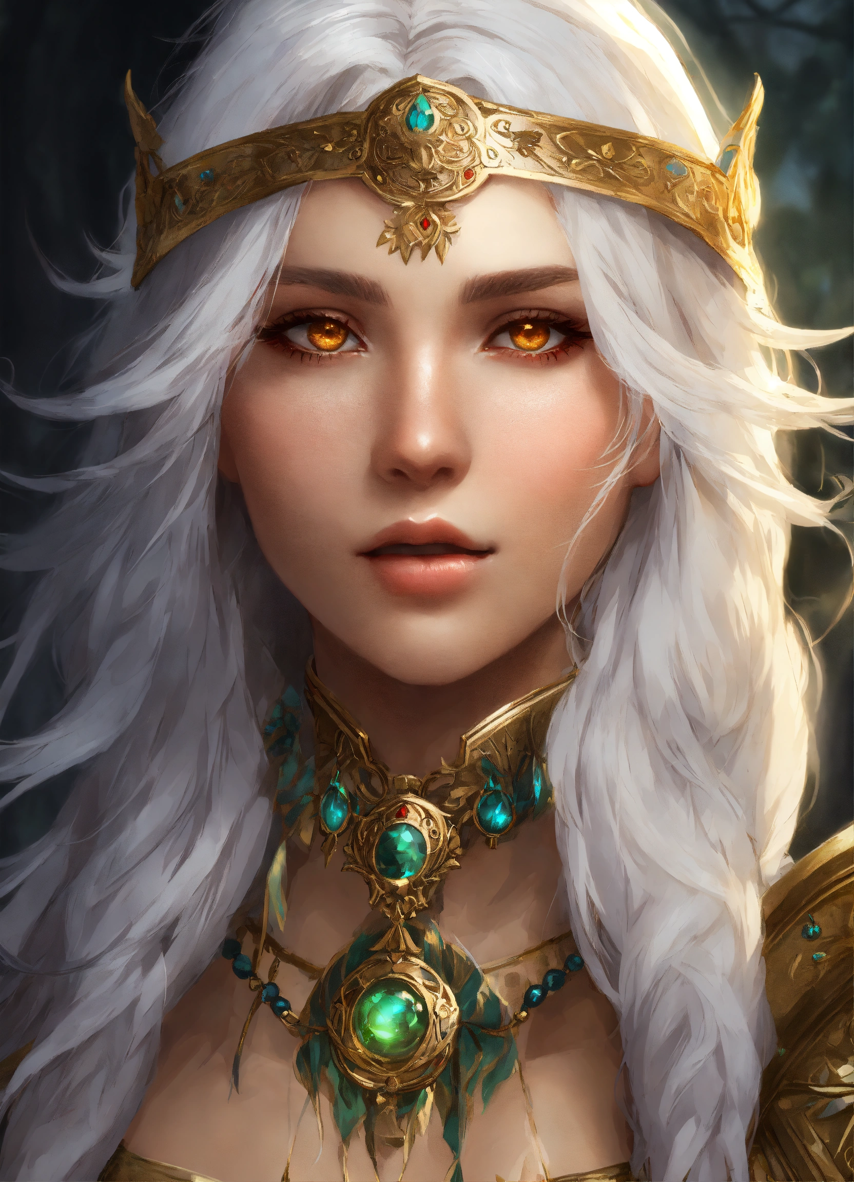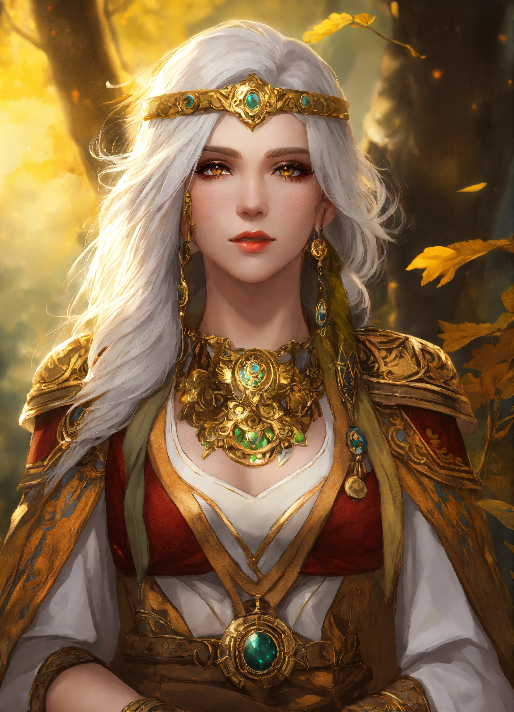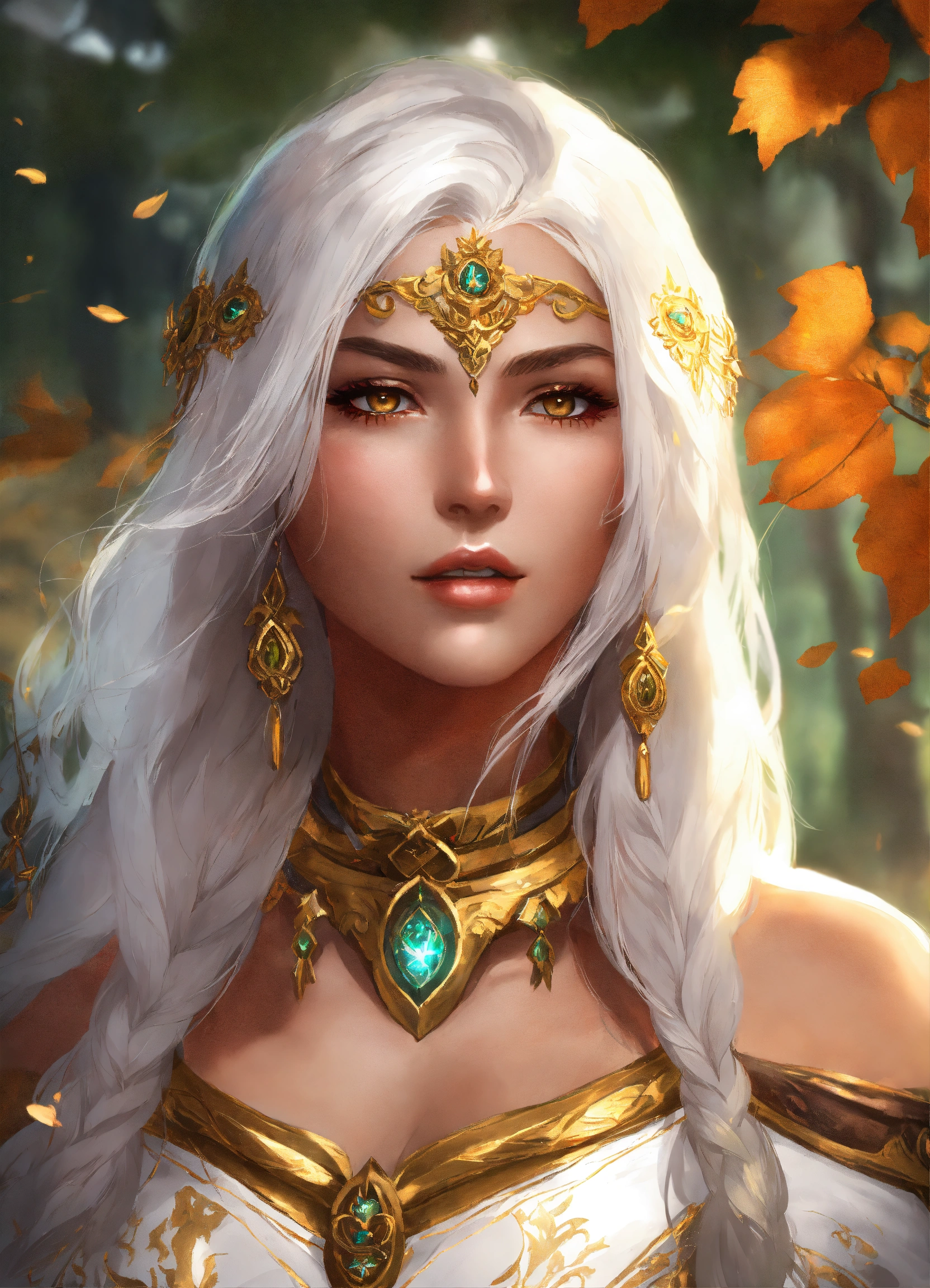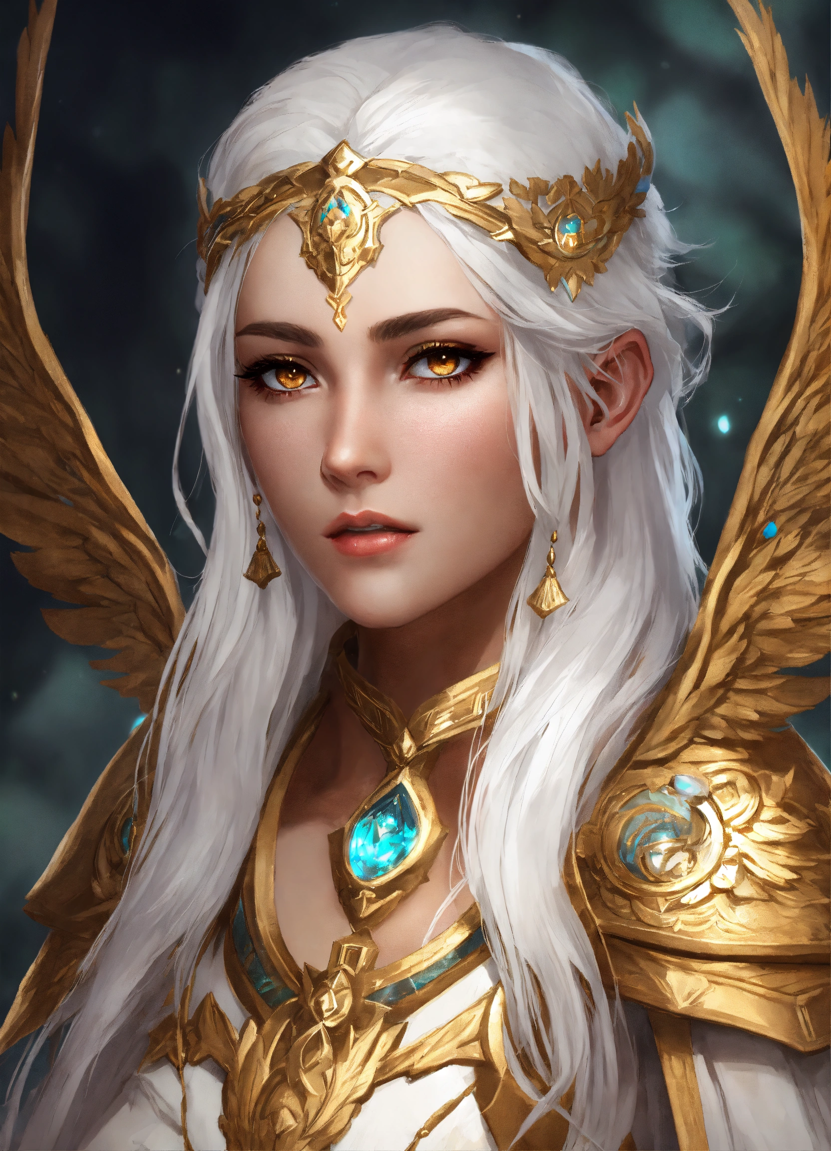 Aasimar druid female white hair gold eyes