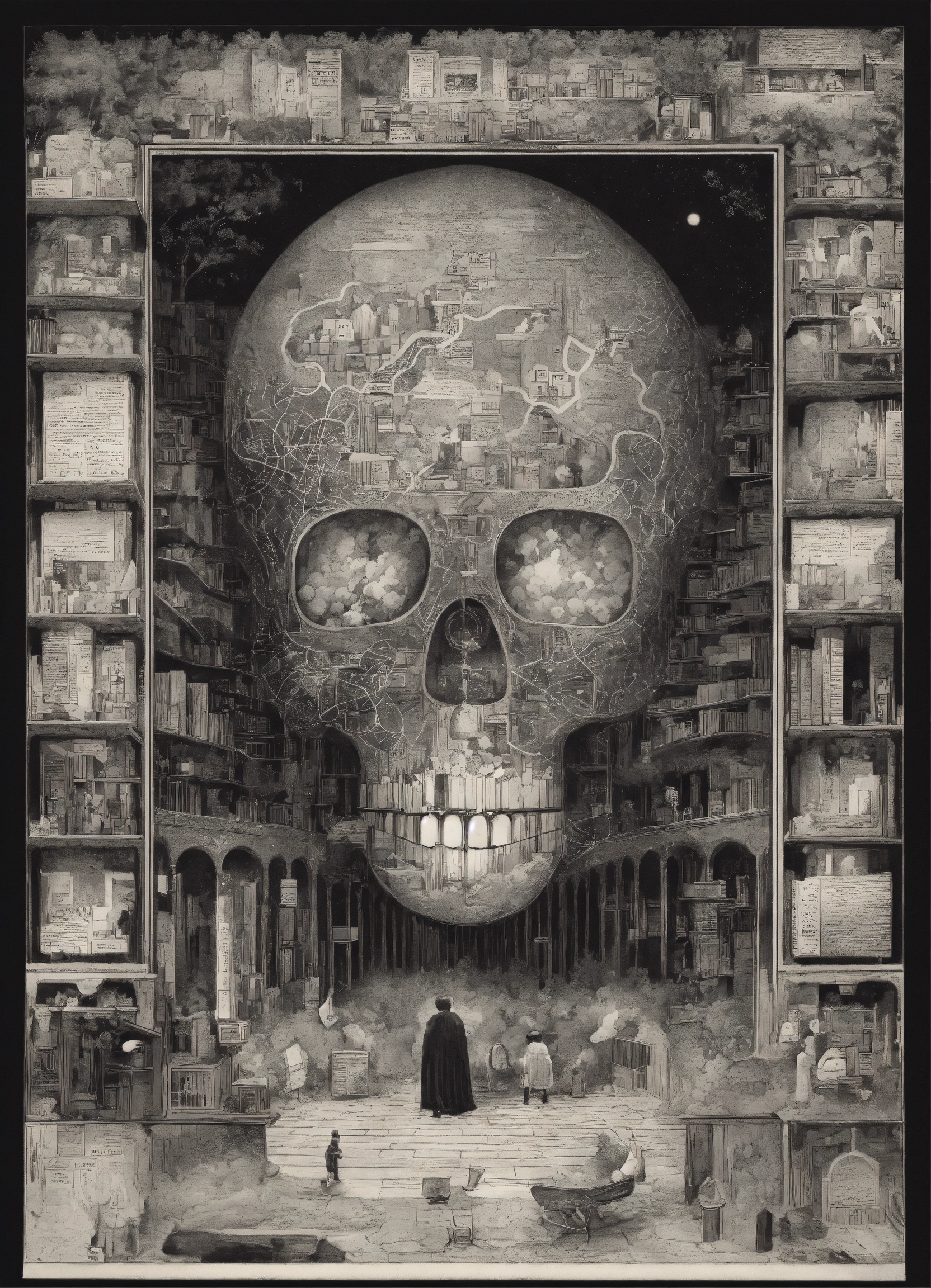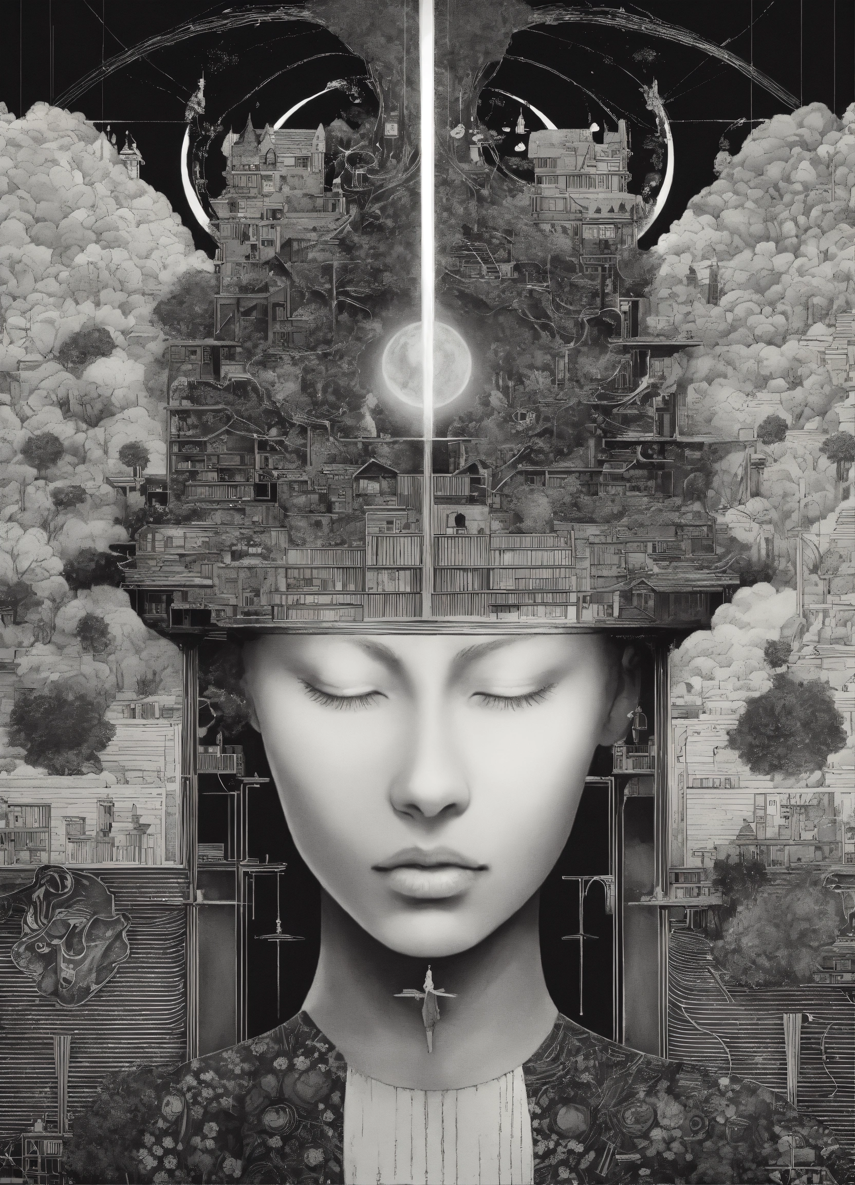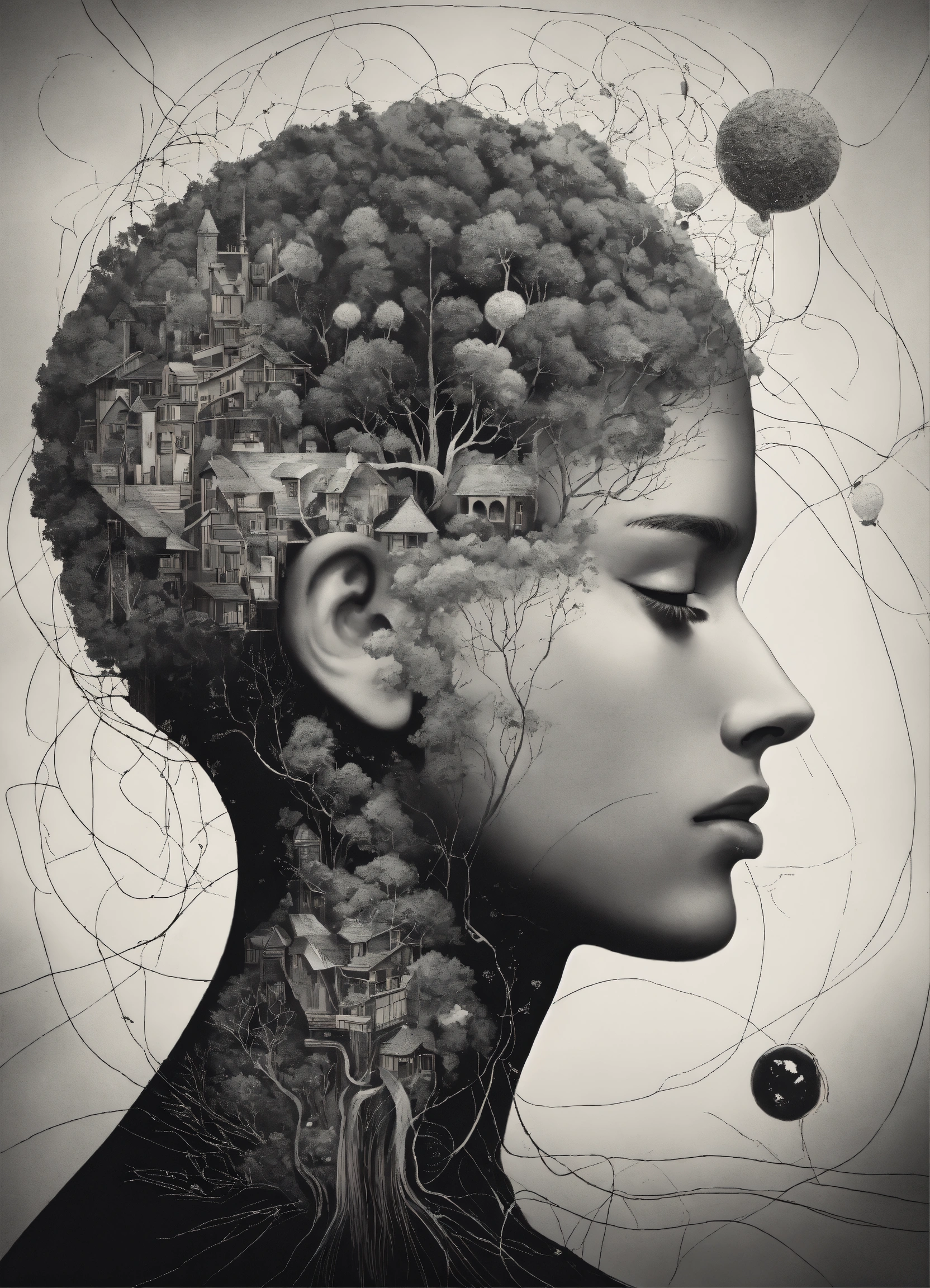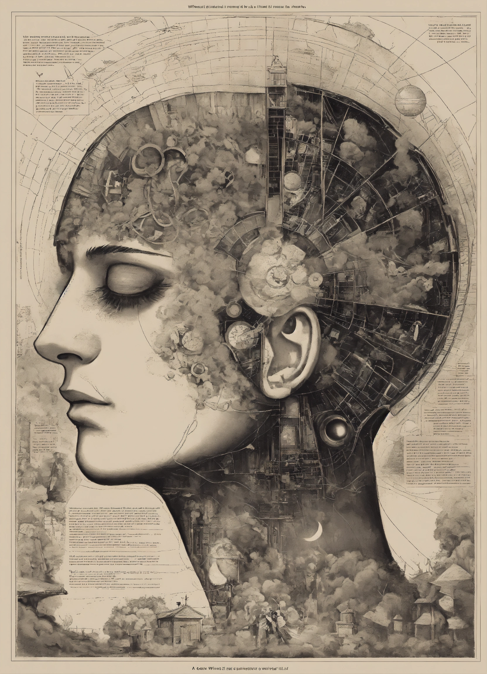 A illustration that explains the mind in black an white