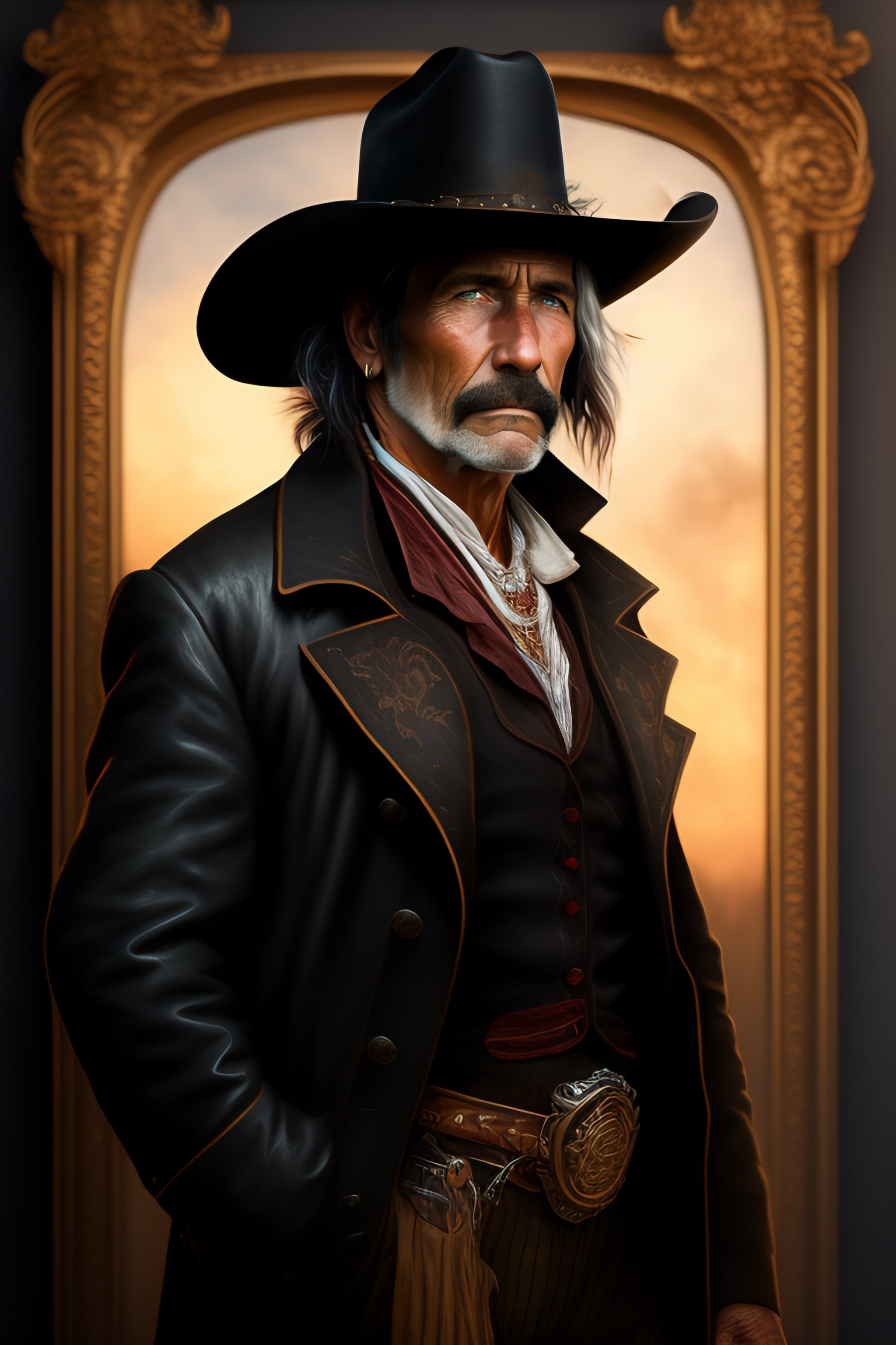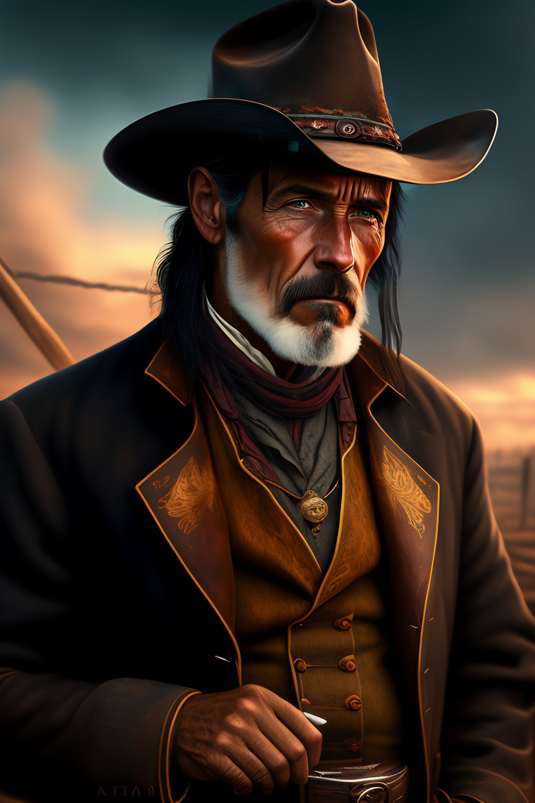 Ugly shabby, beggar poor american gambler cowboy 45 years old man from american 1890s, black hair, highly detailed, digital painting, splash art.