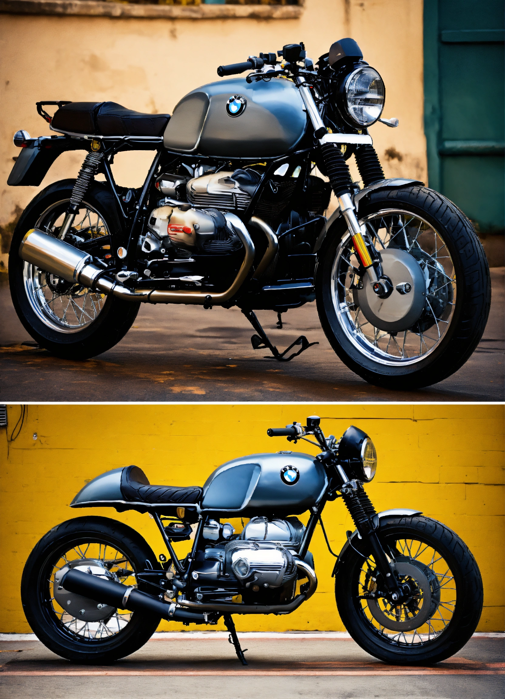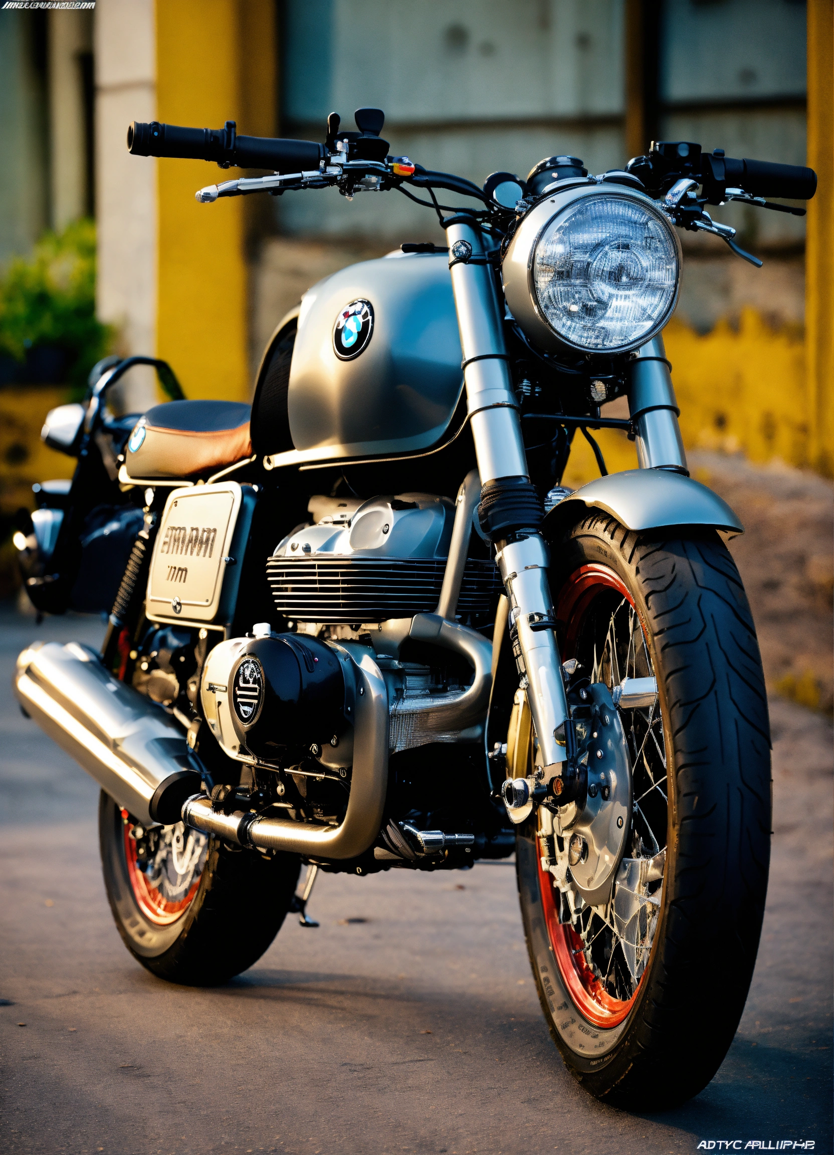 A modified gray royal enfield hunter 350 into a cafe racer style (bmw r9t look alike), with inscription on its fuel tank ‘m.adr’