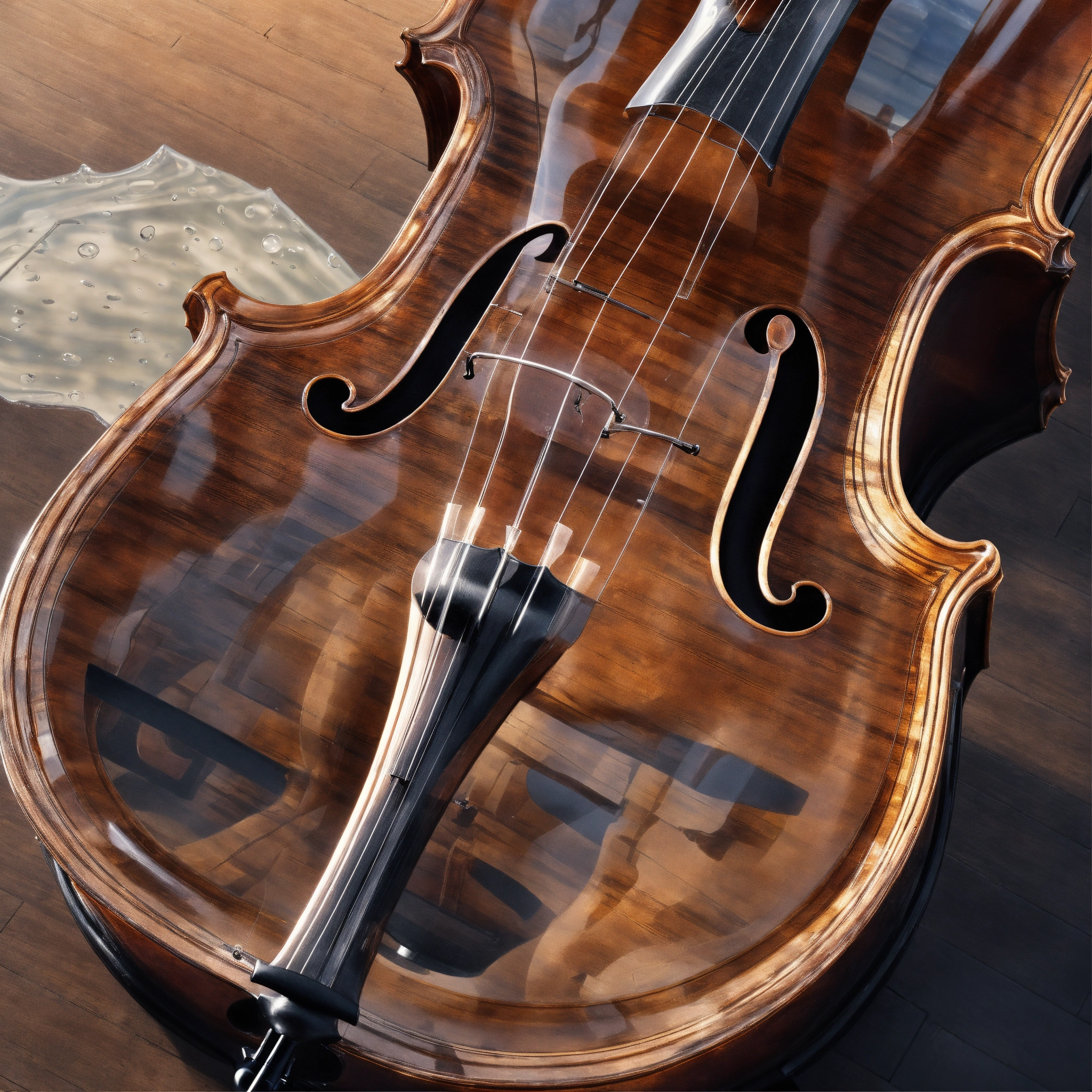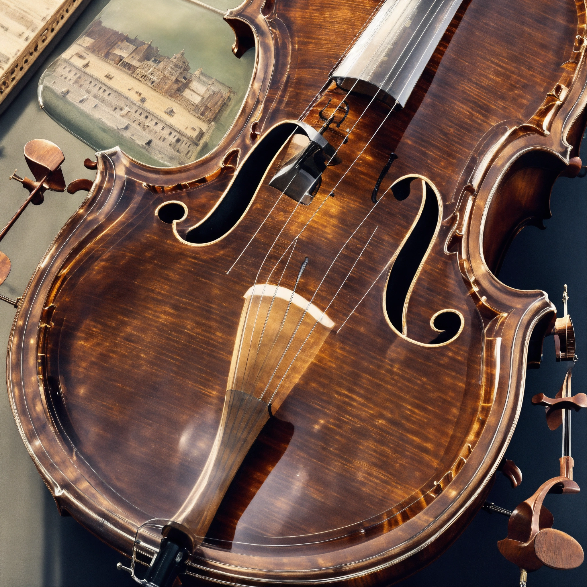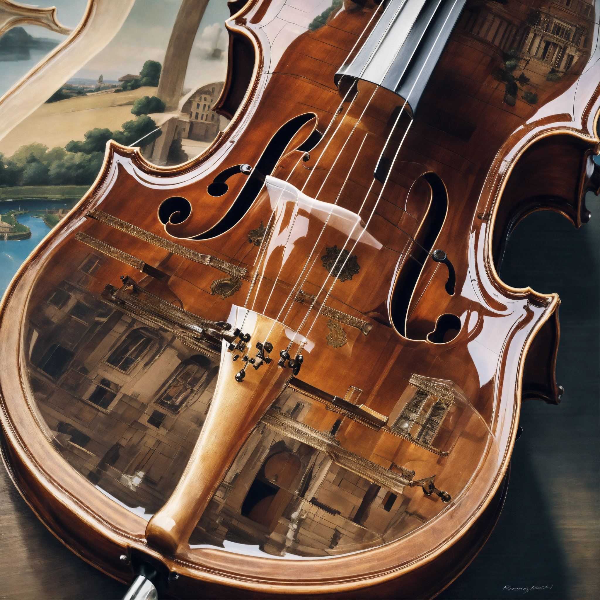 A photorealistic closeup view of inside a transparent cello, imagine someone is standing inside of a glass cello and watching the architecture of the instrument, by rene magritte, don't show the outside of the instrument, just inside, the hidden part from eyes. created by canaletto, highly detailed image, extremely high resolution, surrealistic construction inside the cello