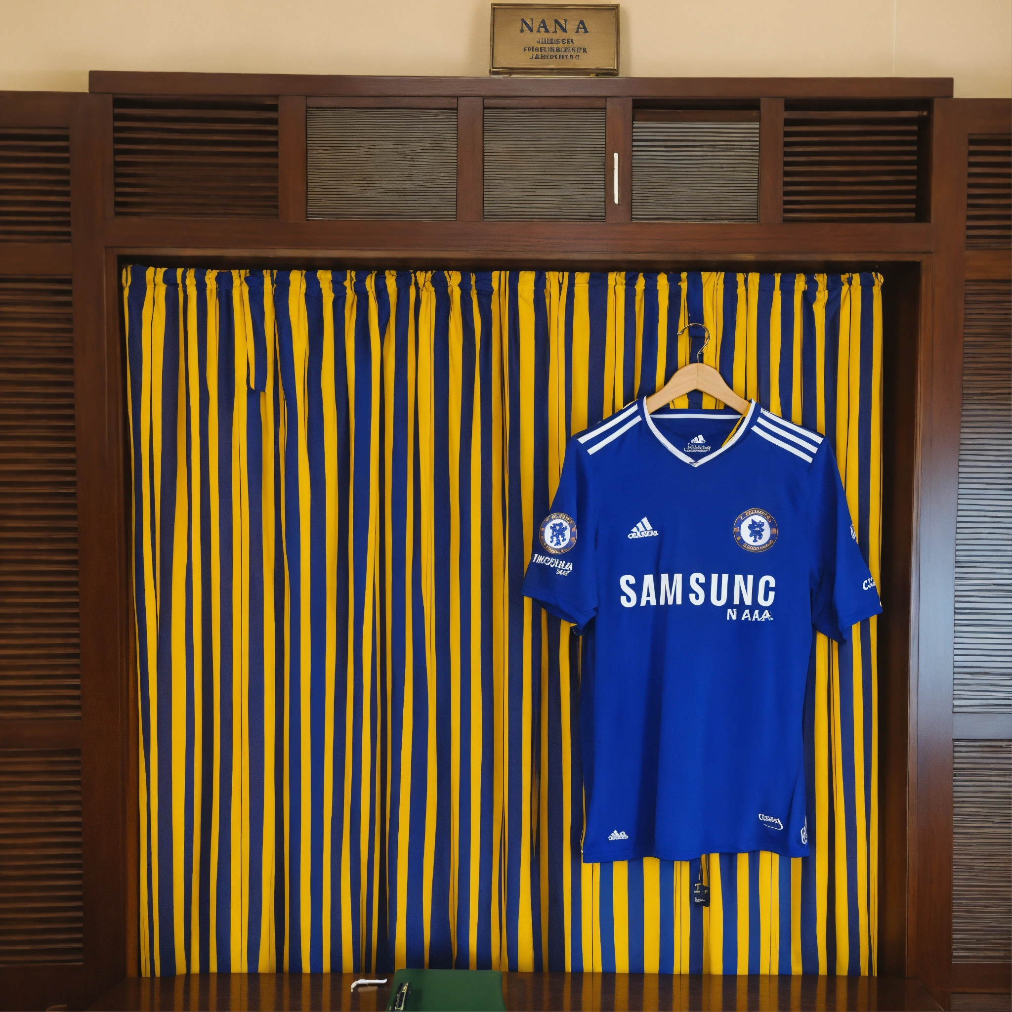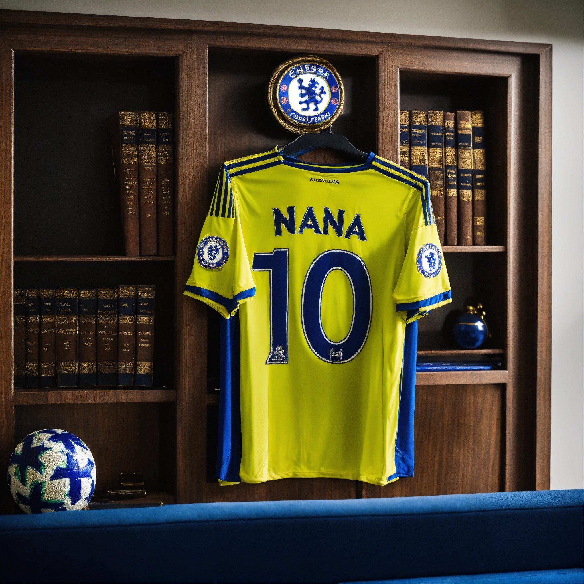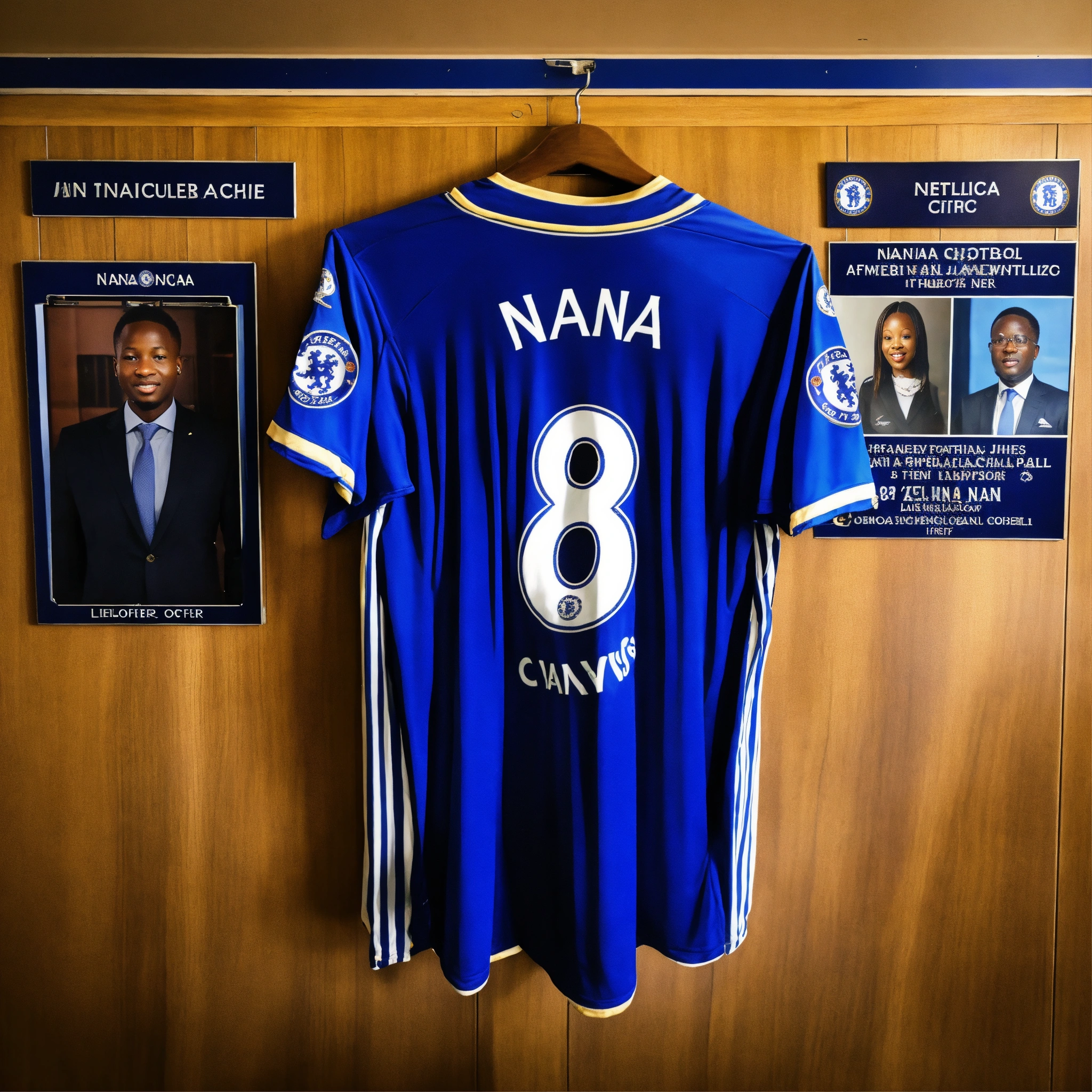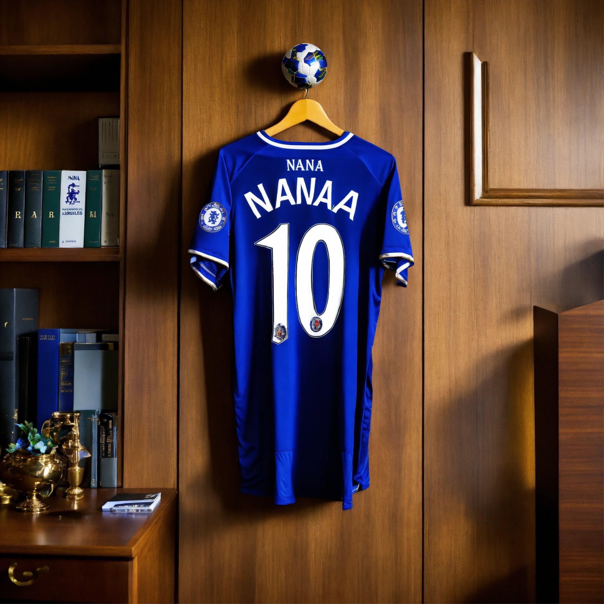Chelsea football jersey hanging on african lawyer’s office wall player name nana