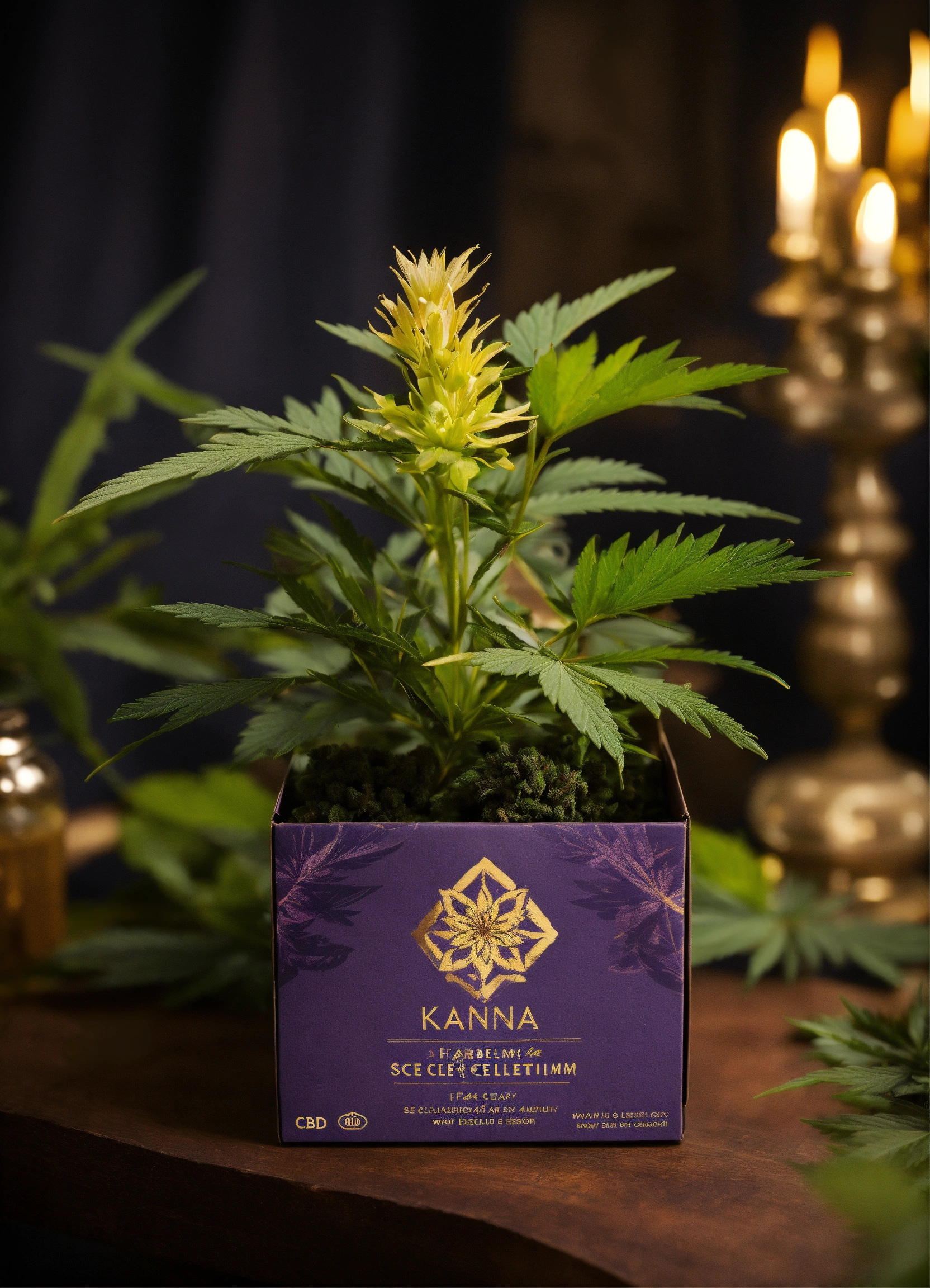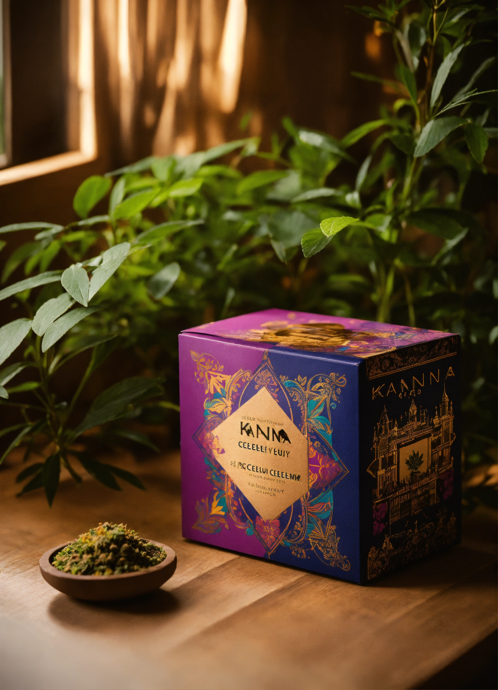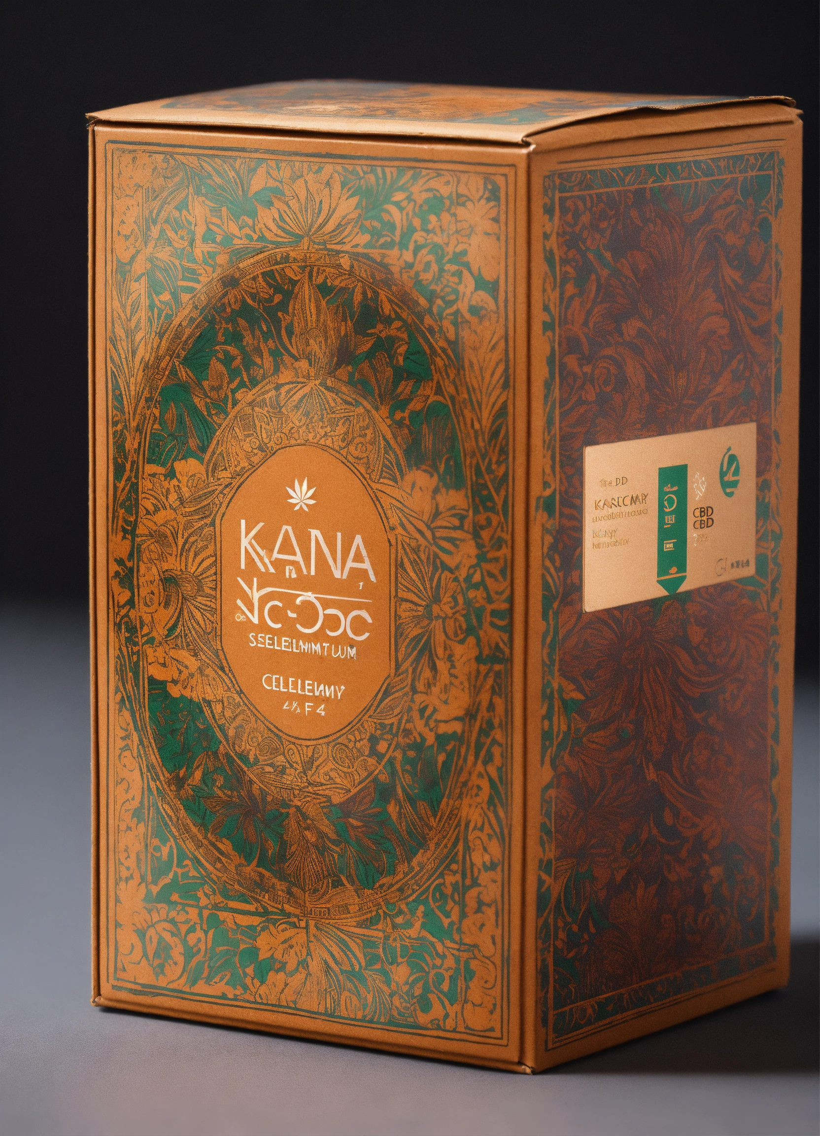 Cbd cardboard box of a sober and elegant luxurious kanna sceletium product and far cry 4 design