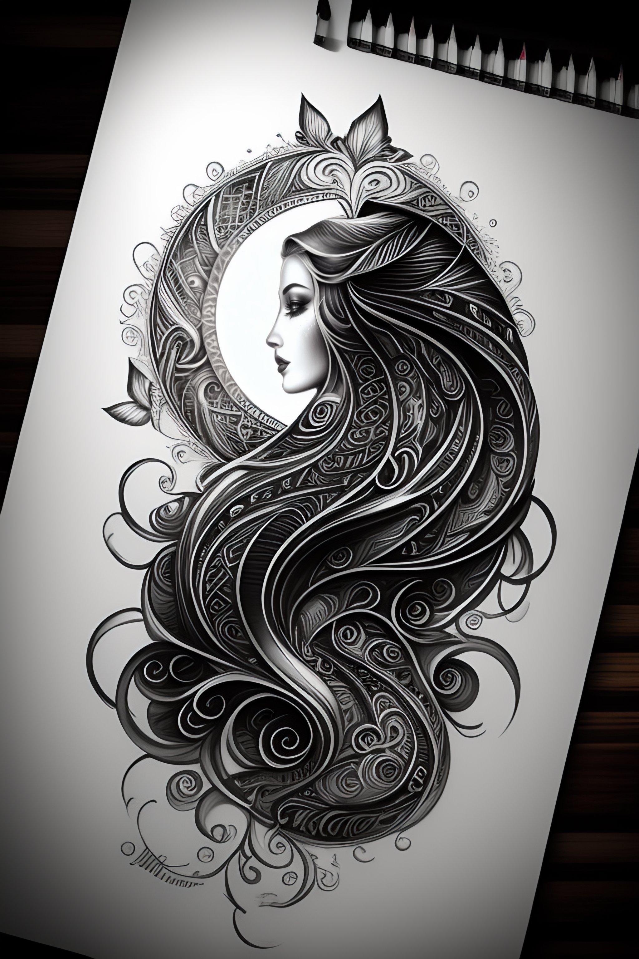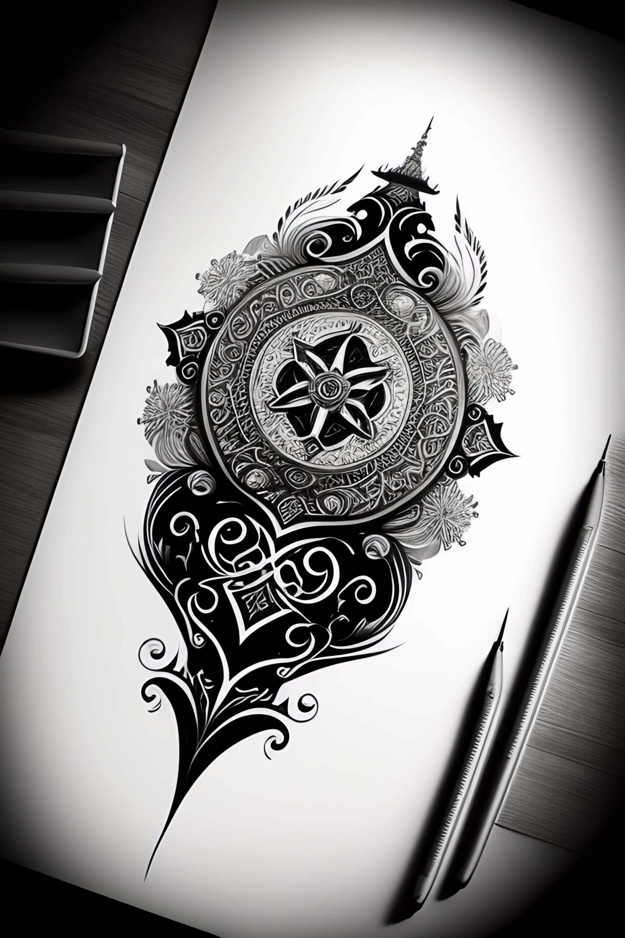 Sketch creative tattoo design on white paper