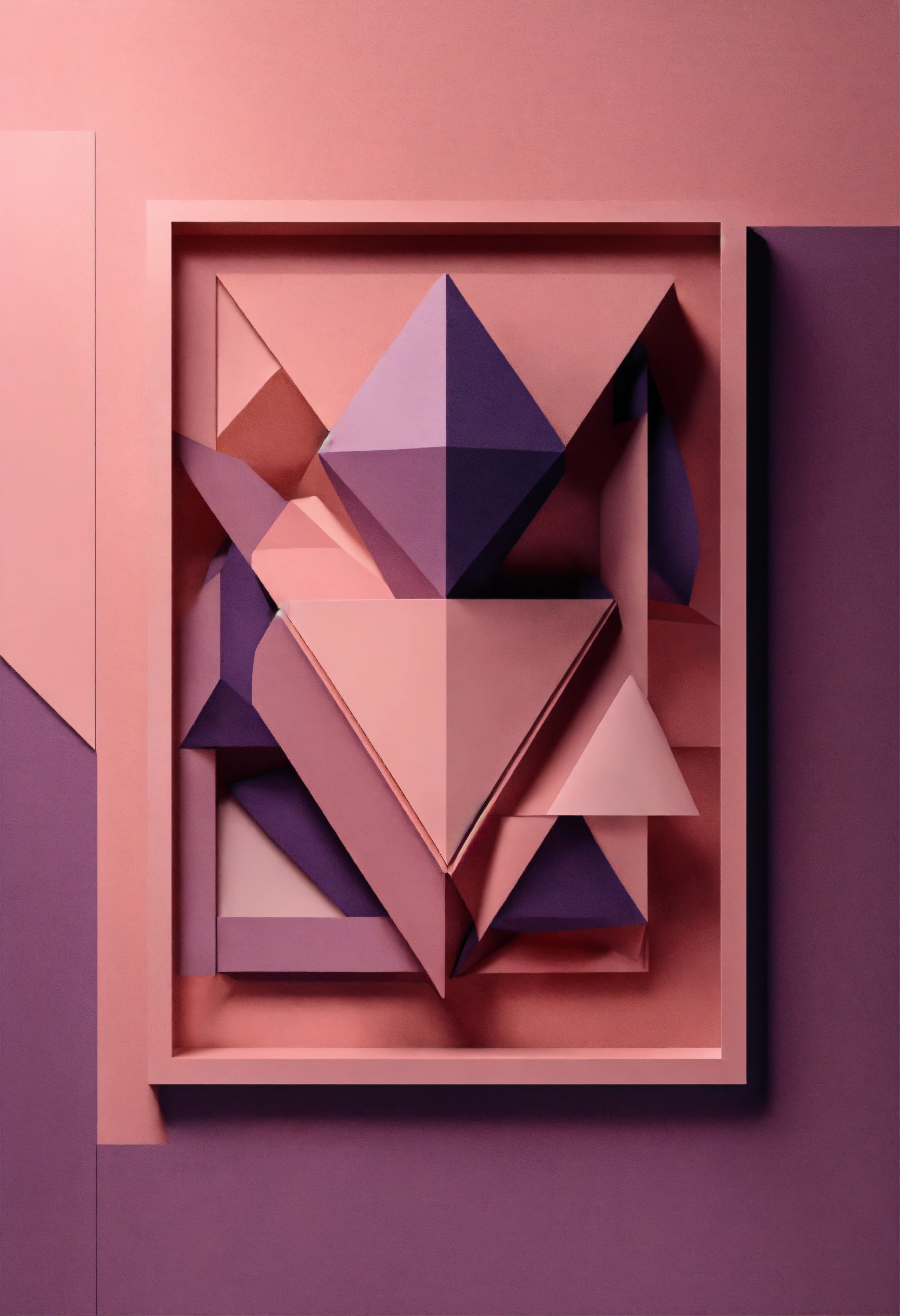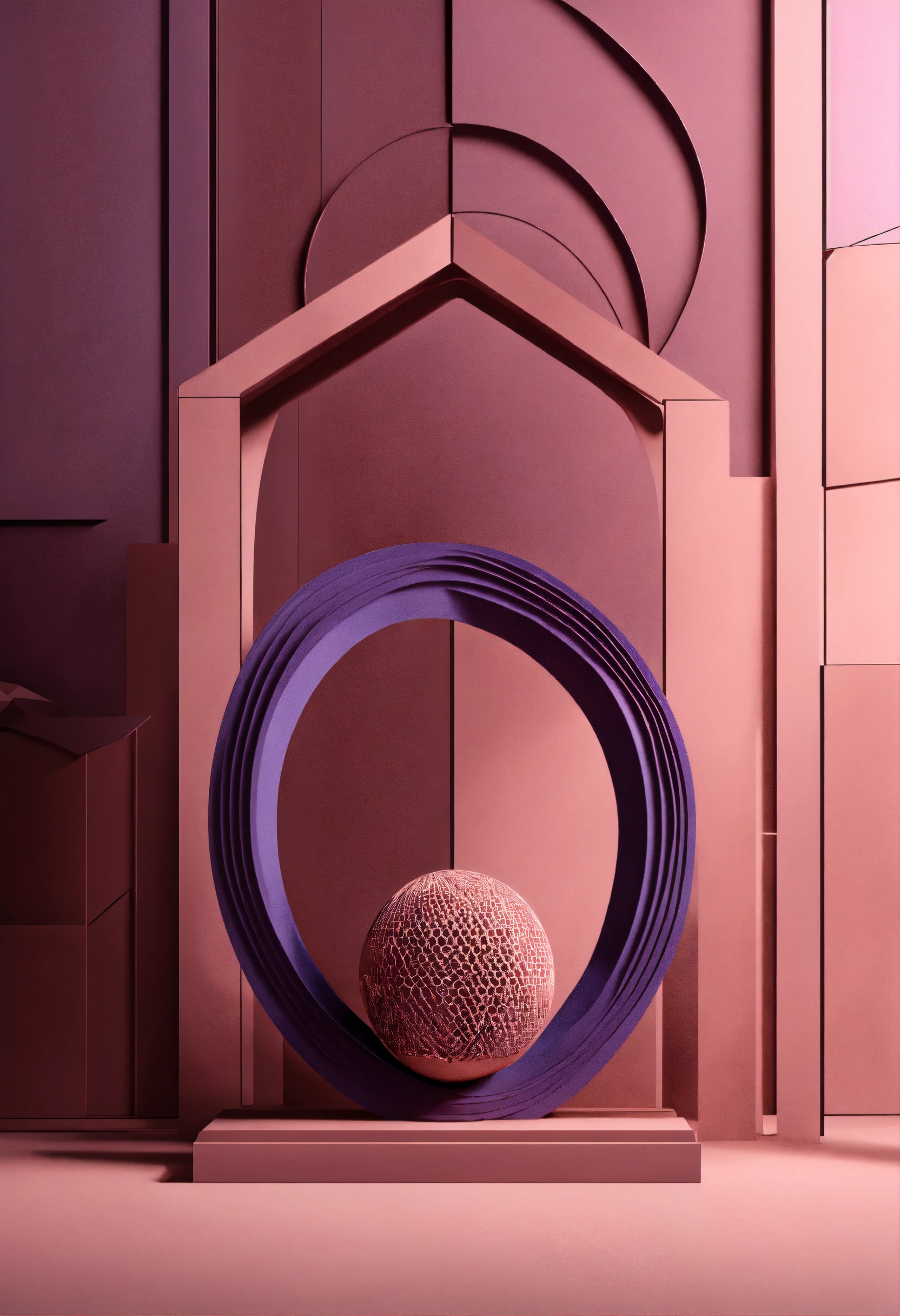 Muted tones of dusty pink and dark purple, evoking a sense of calmness, sacred geometry art, clean and minimalistic approach 3d compositions, wedding theme.