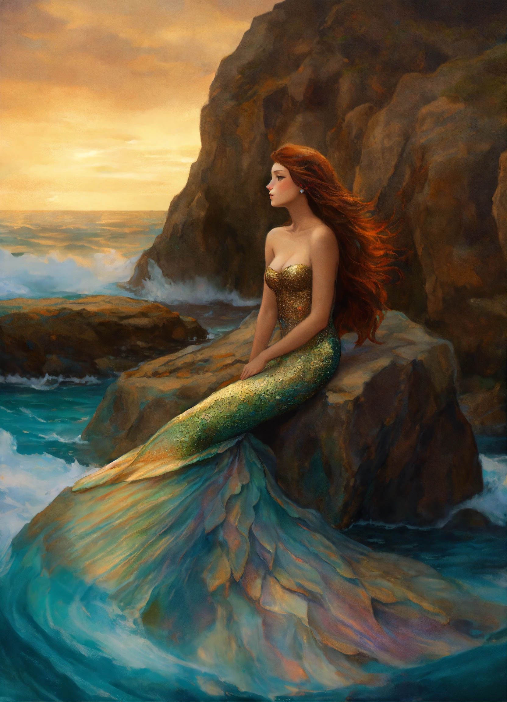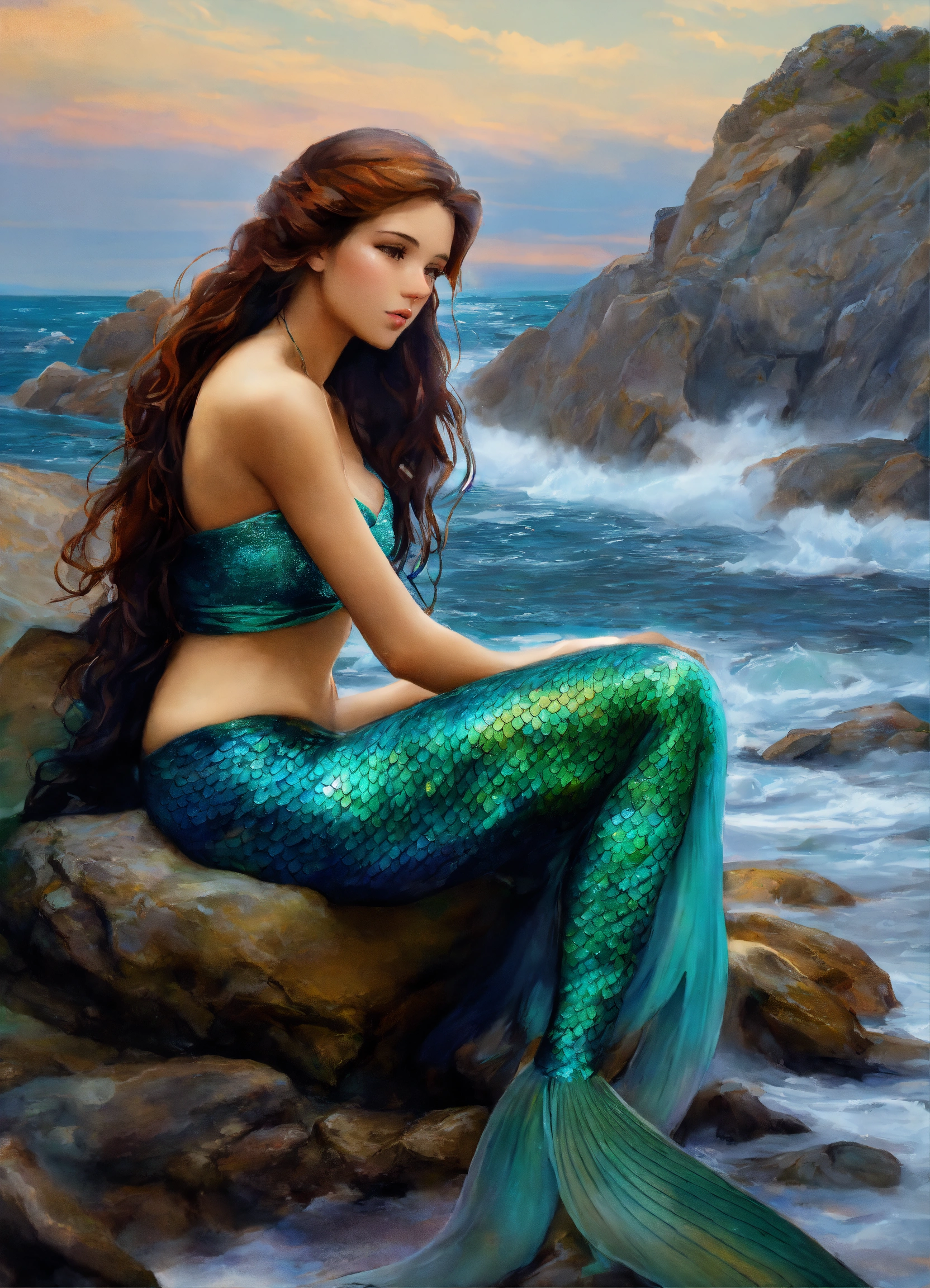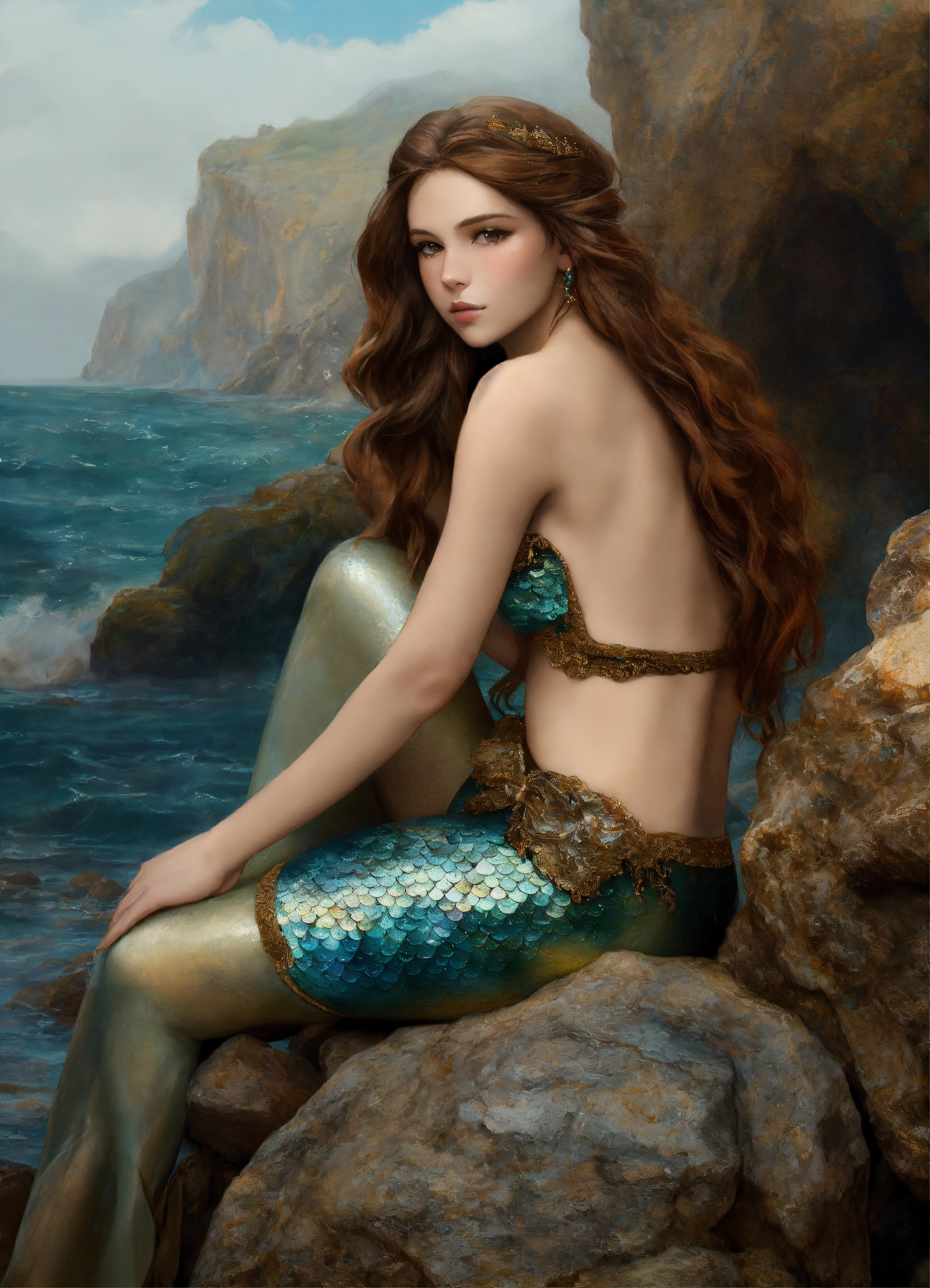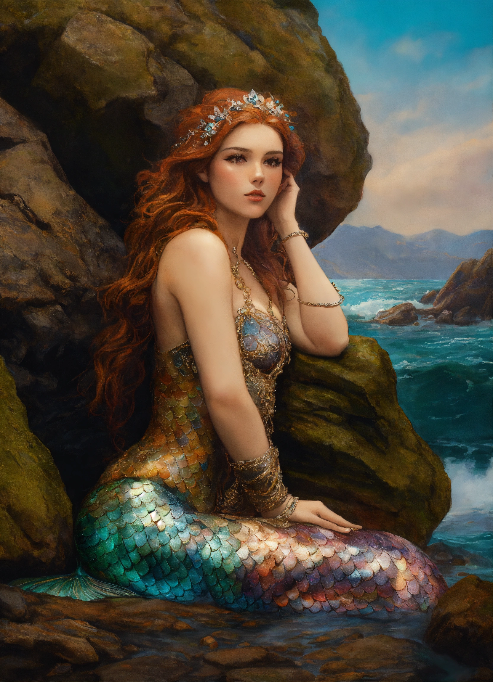 Highly detailed digital picture of a mermaid leaning on rocks in the style of waterhouse