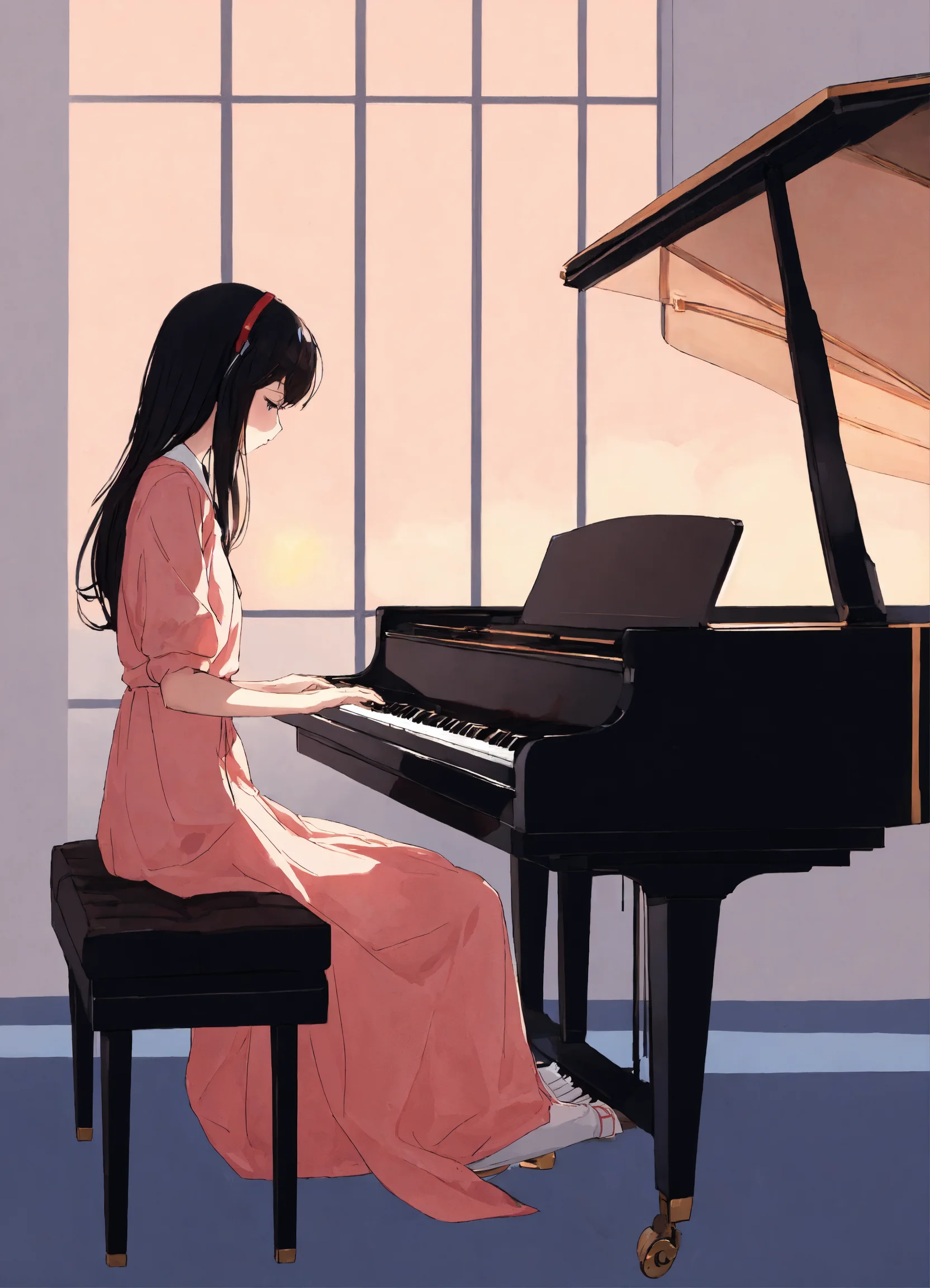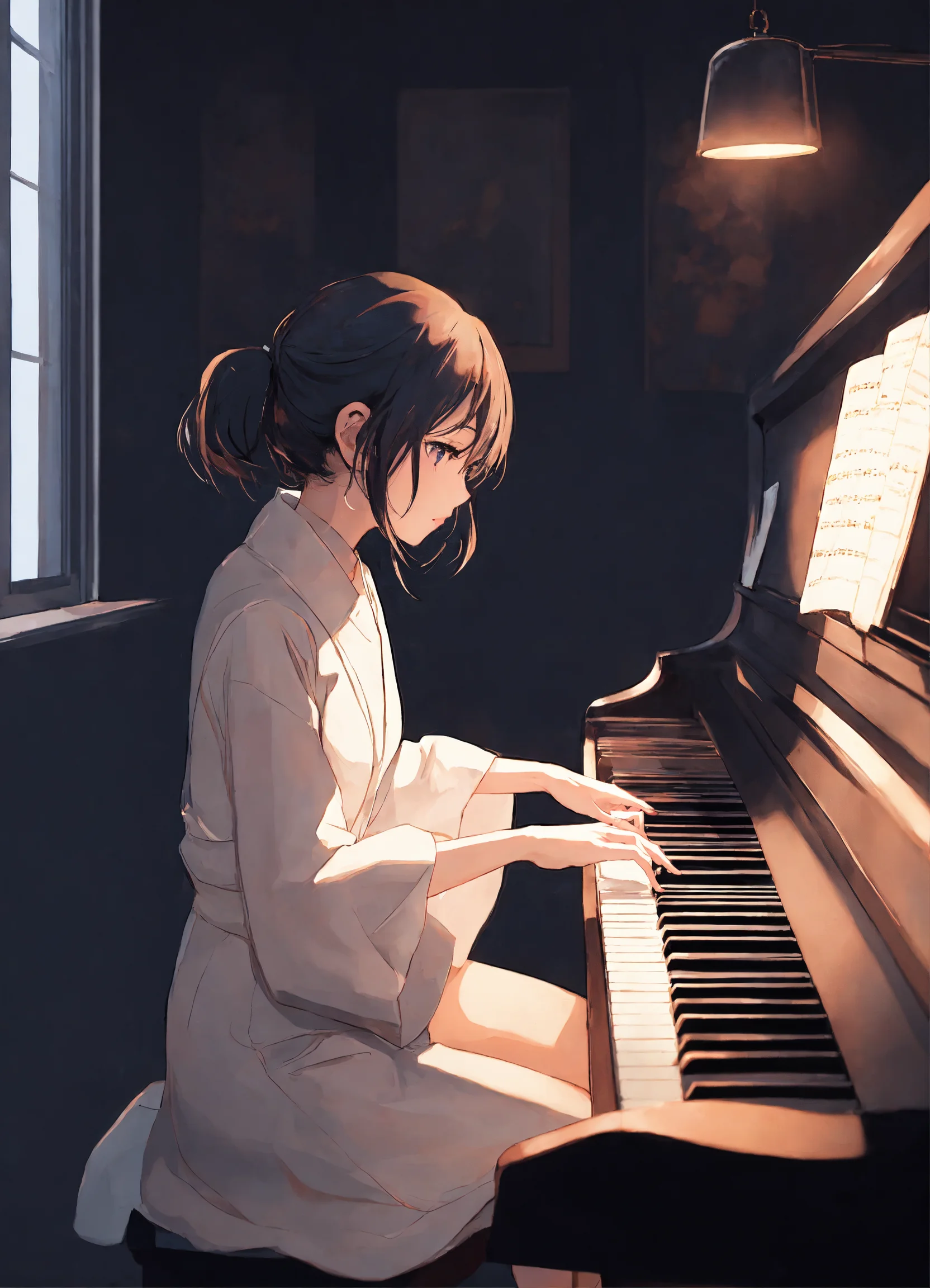 Anime girl playing piano