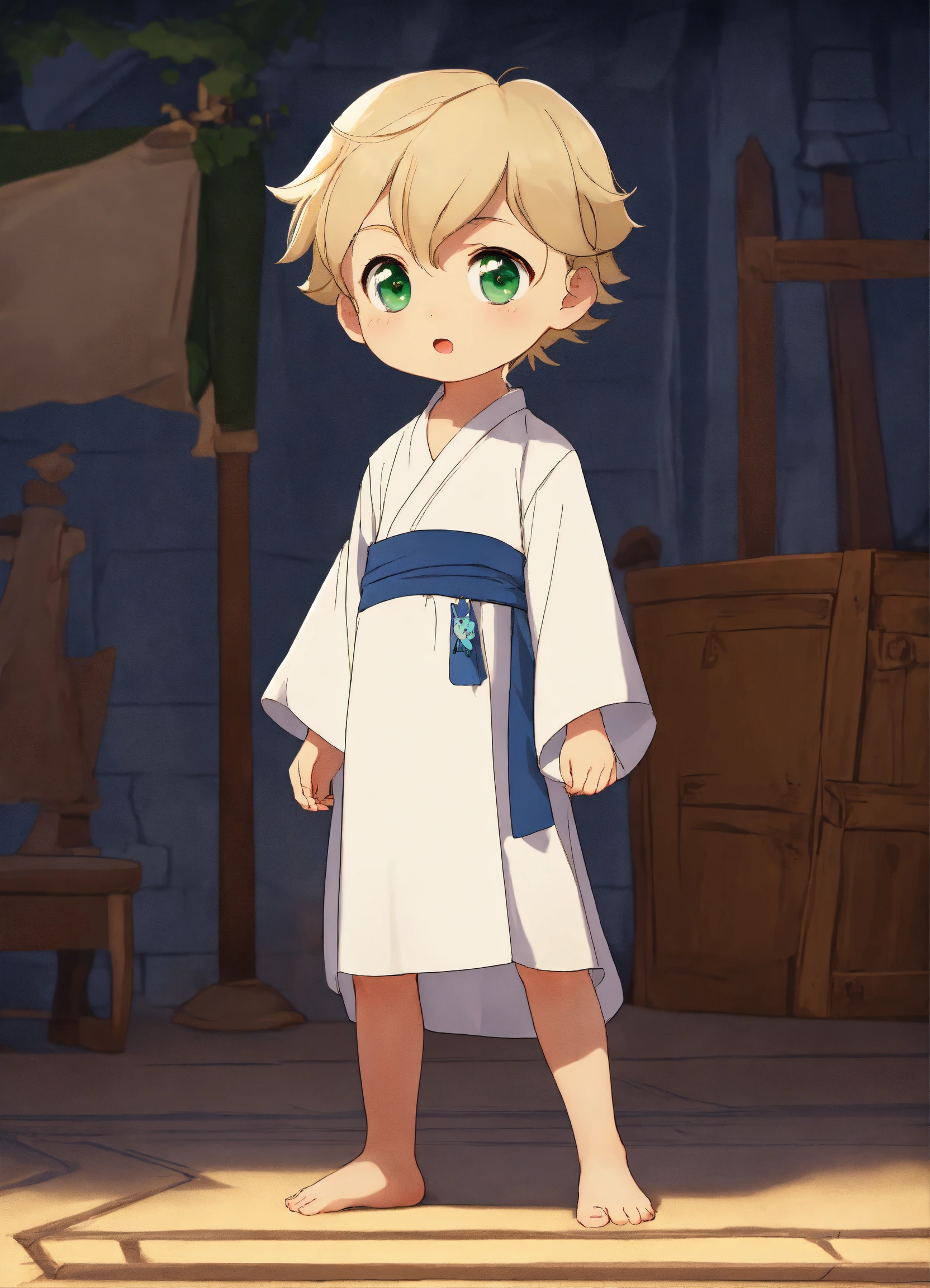 White sheet, cute boy, multiple character multiple angles, animation cartoon, green eyes, dark blue dress, baby white skin, full body pose, legs, blonde hair, 500ad years, old israeli dress