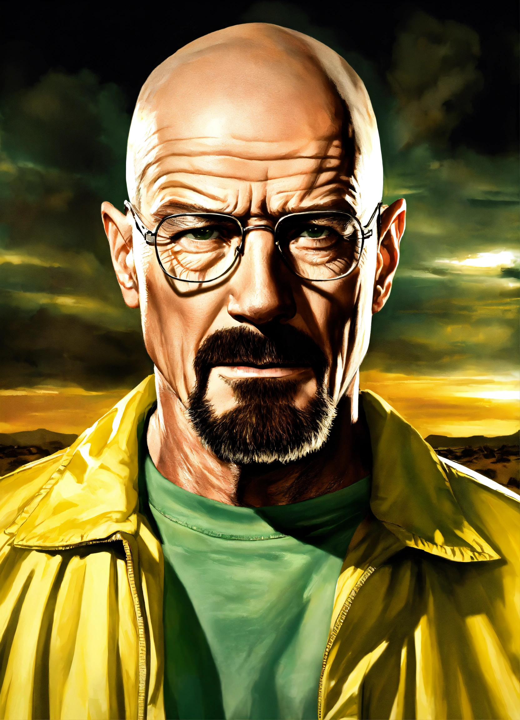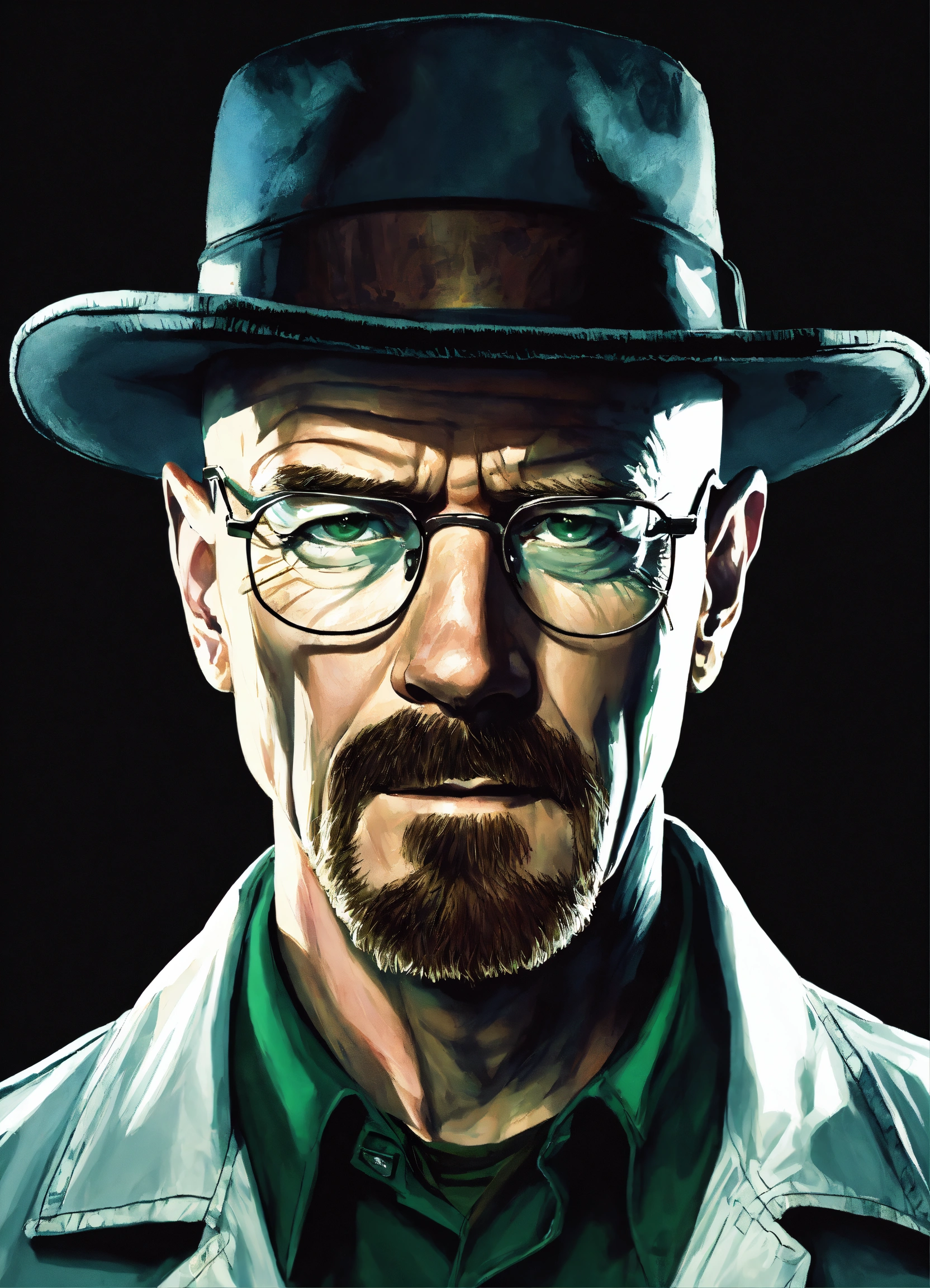 The main character in the show called breaking bad, walter white, portrayed in a realistic style, facing forward toward the camera.