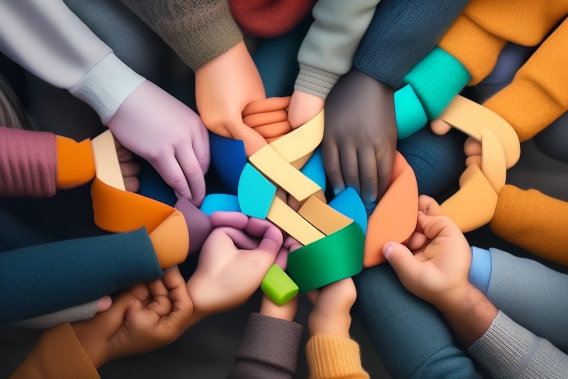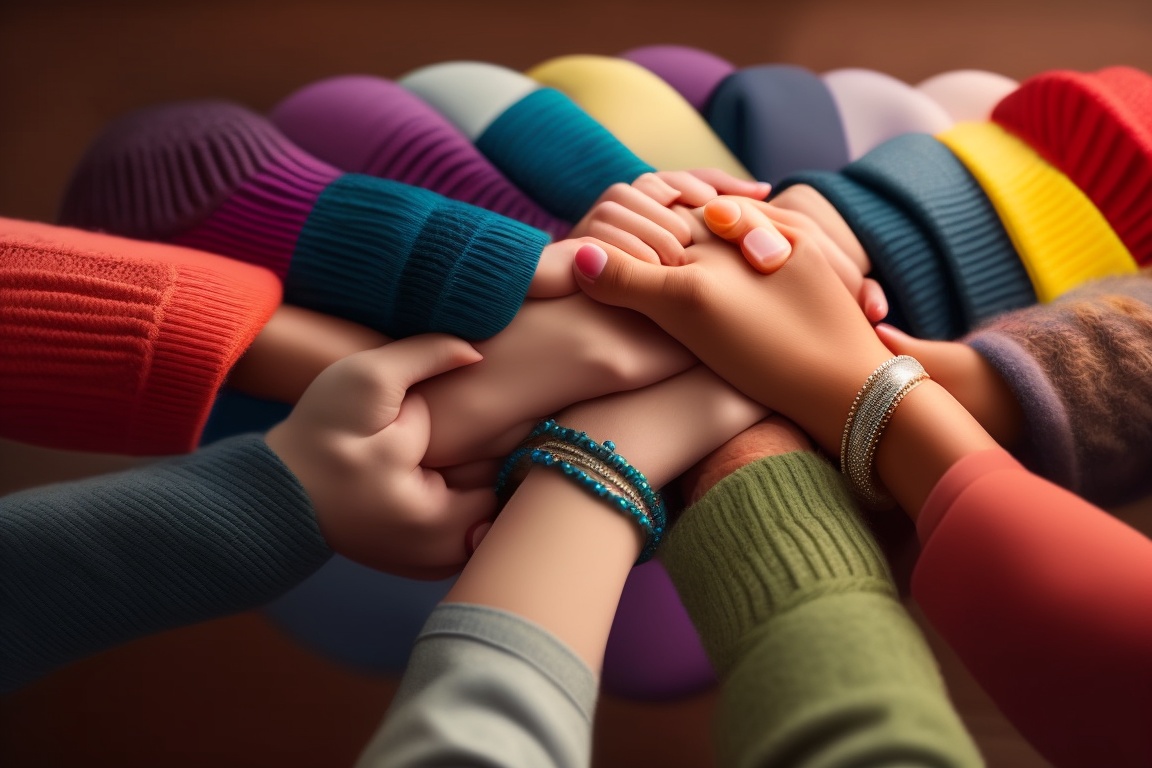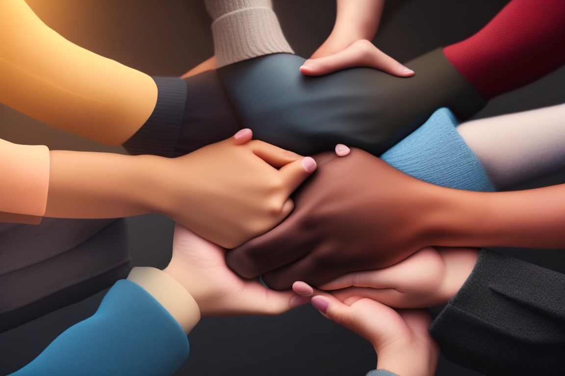 A picture displaying hands holding each other, forming a chain of unity and solidarity, symbolizing the importance of coming together to overcome adversity.