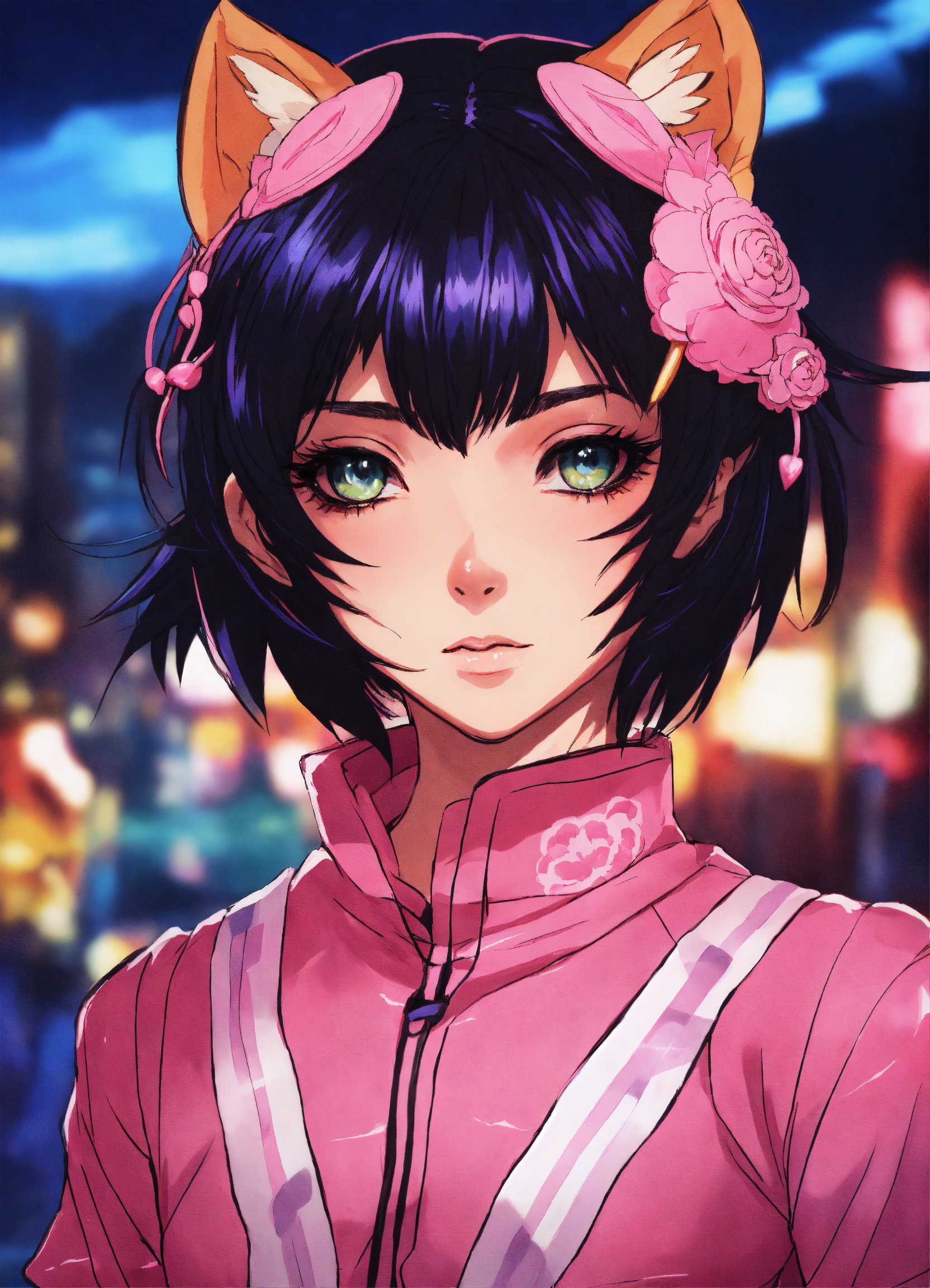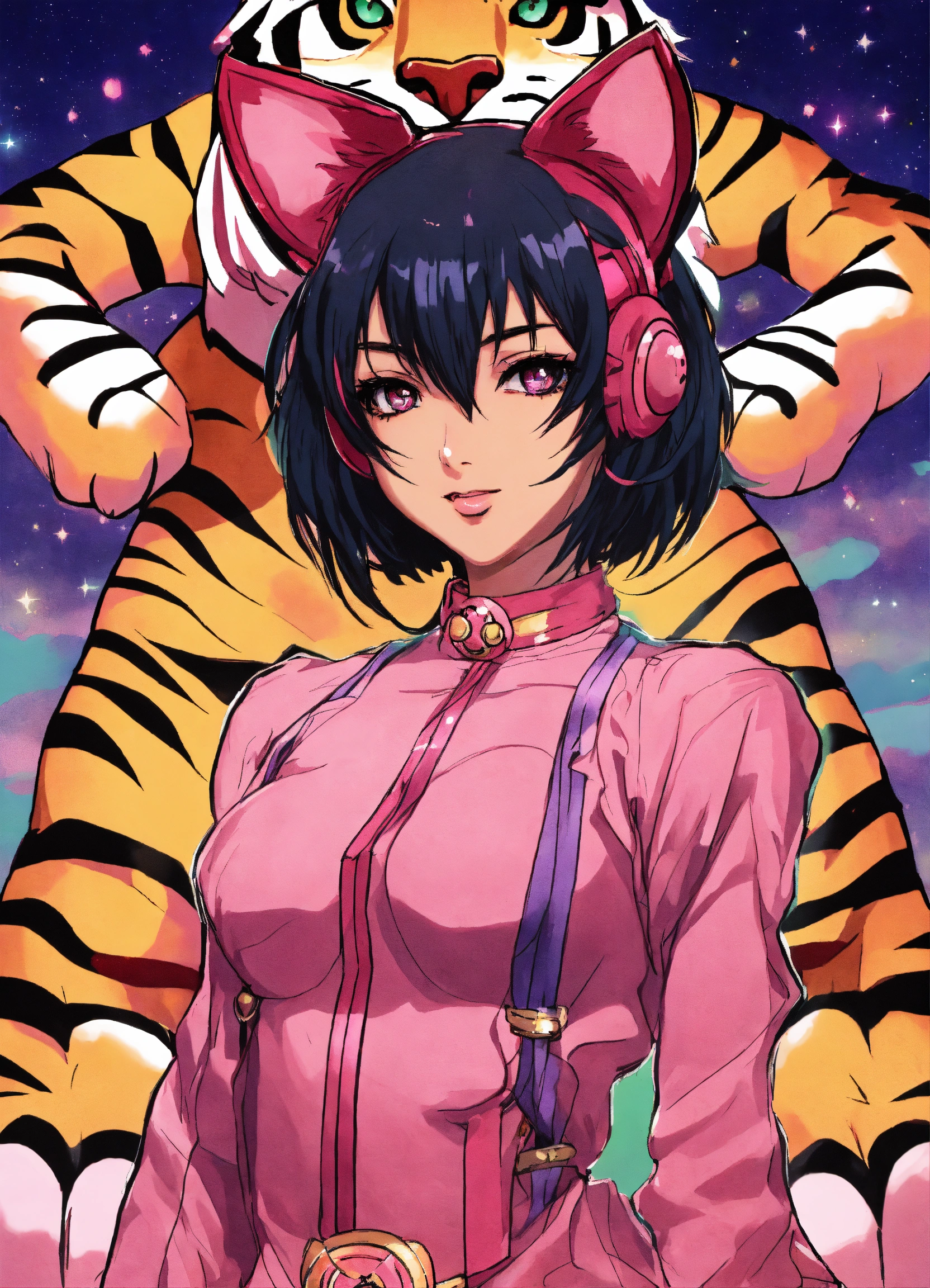 A transgender woman with emo cut black hair, streak in front of her eyes, in magical girl tiger mode, in the style of the manga "tokyo mew mew"