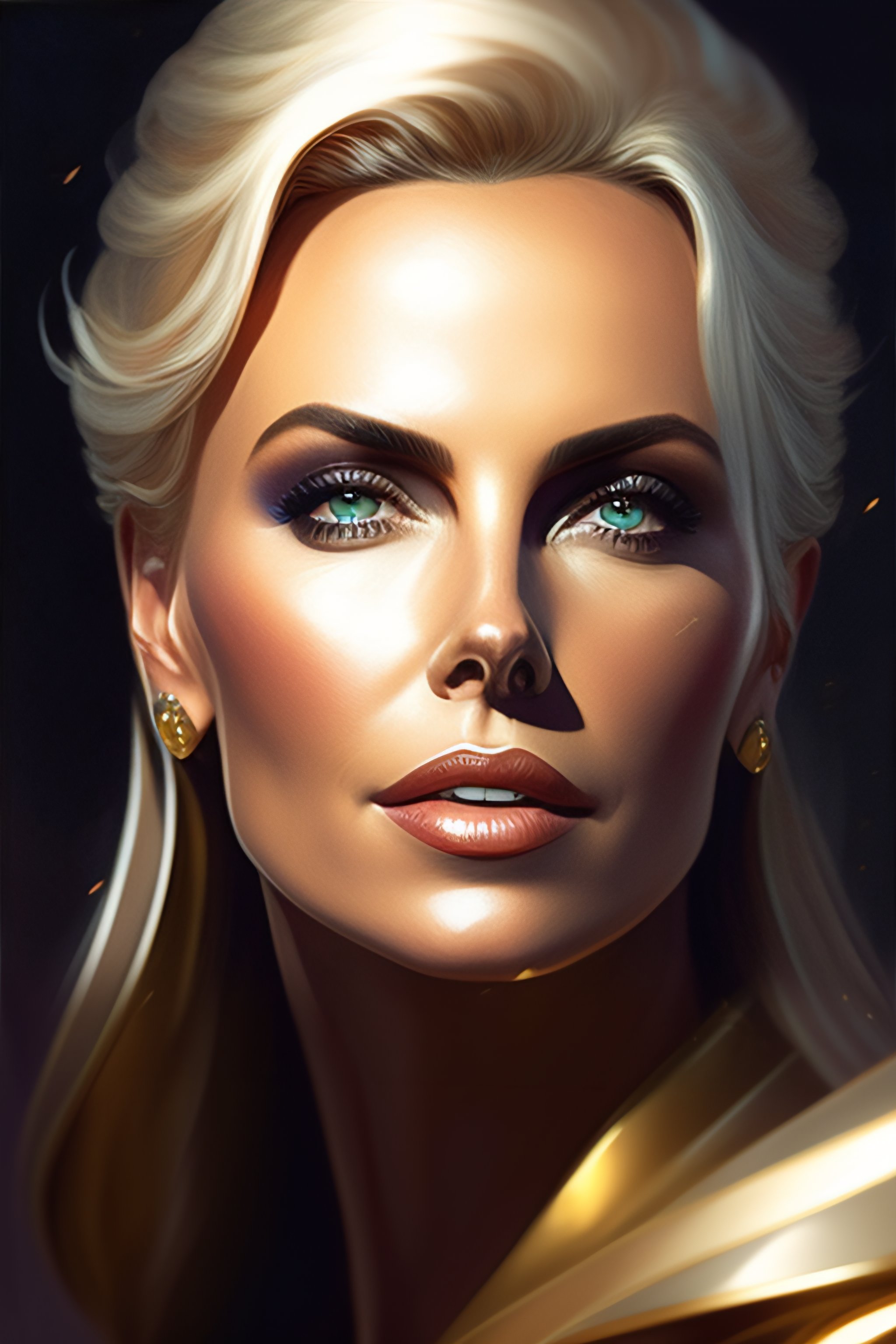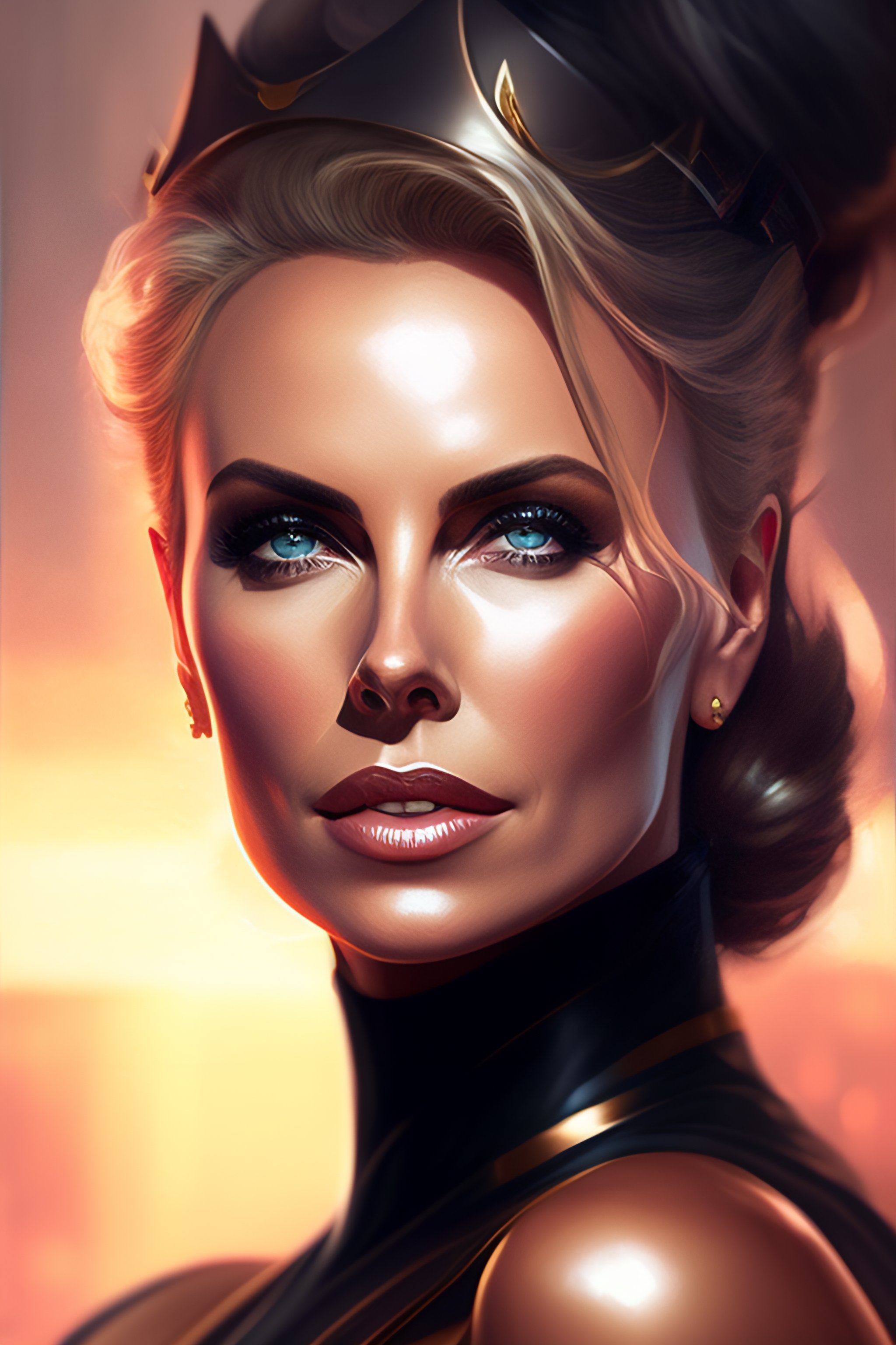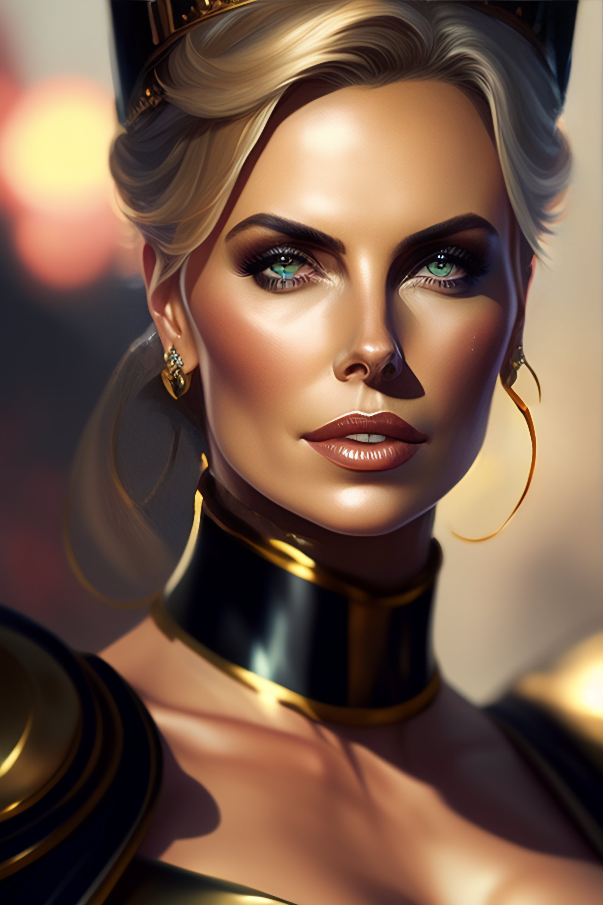 Charlize theron as a queen, medium shot close up, details, sharp focus, illustration, by jordan grimmer and greg rutkowski, trending artstation, pixiv, digital art