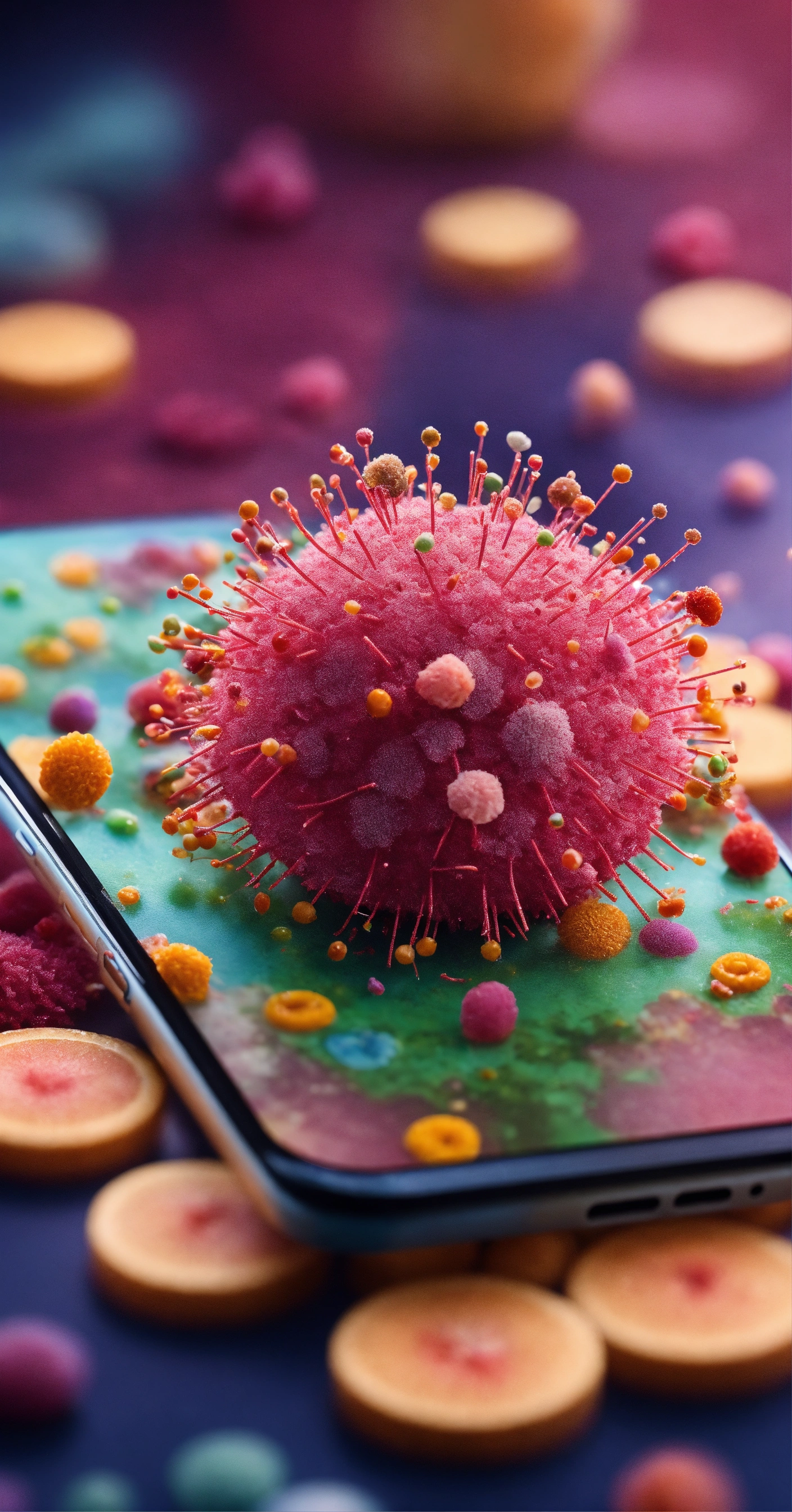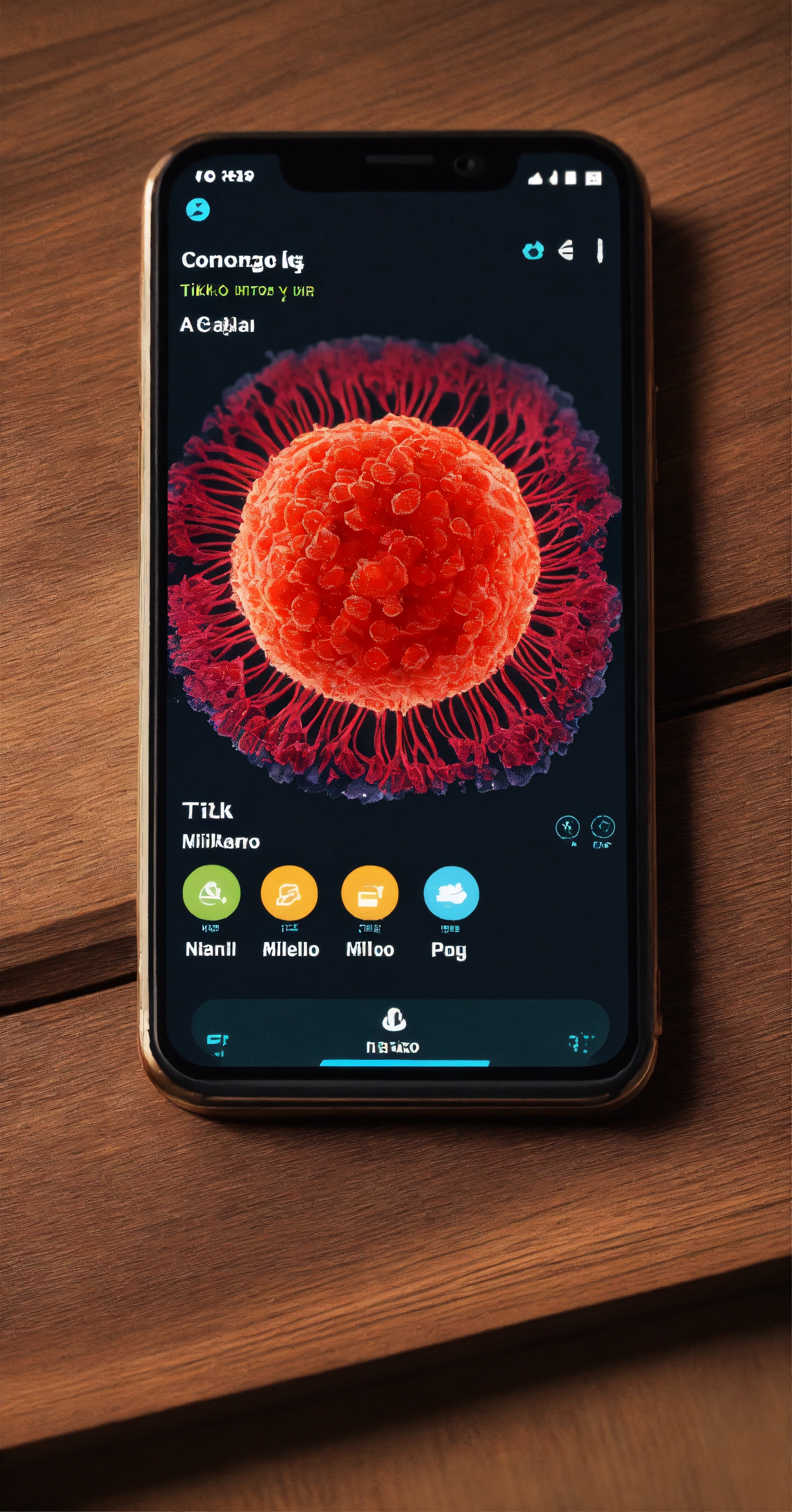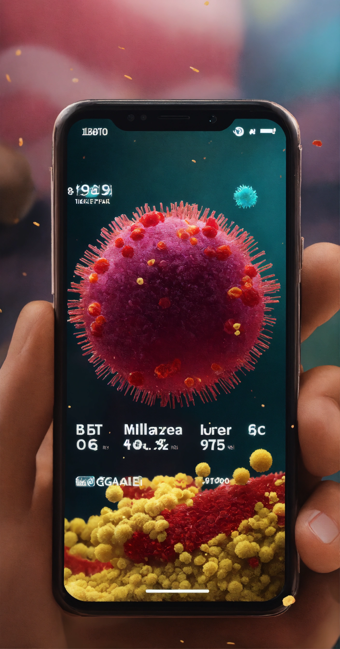 A close up of a cell phone on a table, tiktok video, such as bacteria, mobile game background, indonesia national geographic, detailed screenshot, political propaganda, virus, inspired by manolo millares, screencapture, ramil sunga, 9gag, hindi text, coronavirus, ign