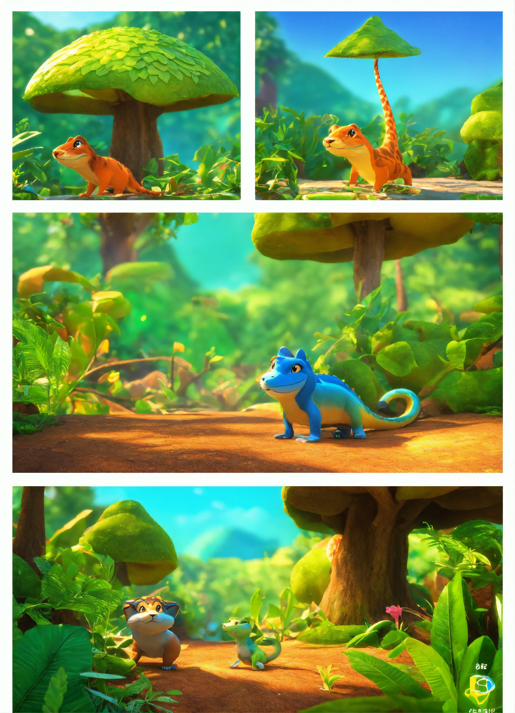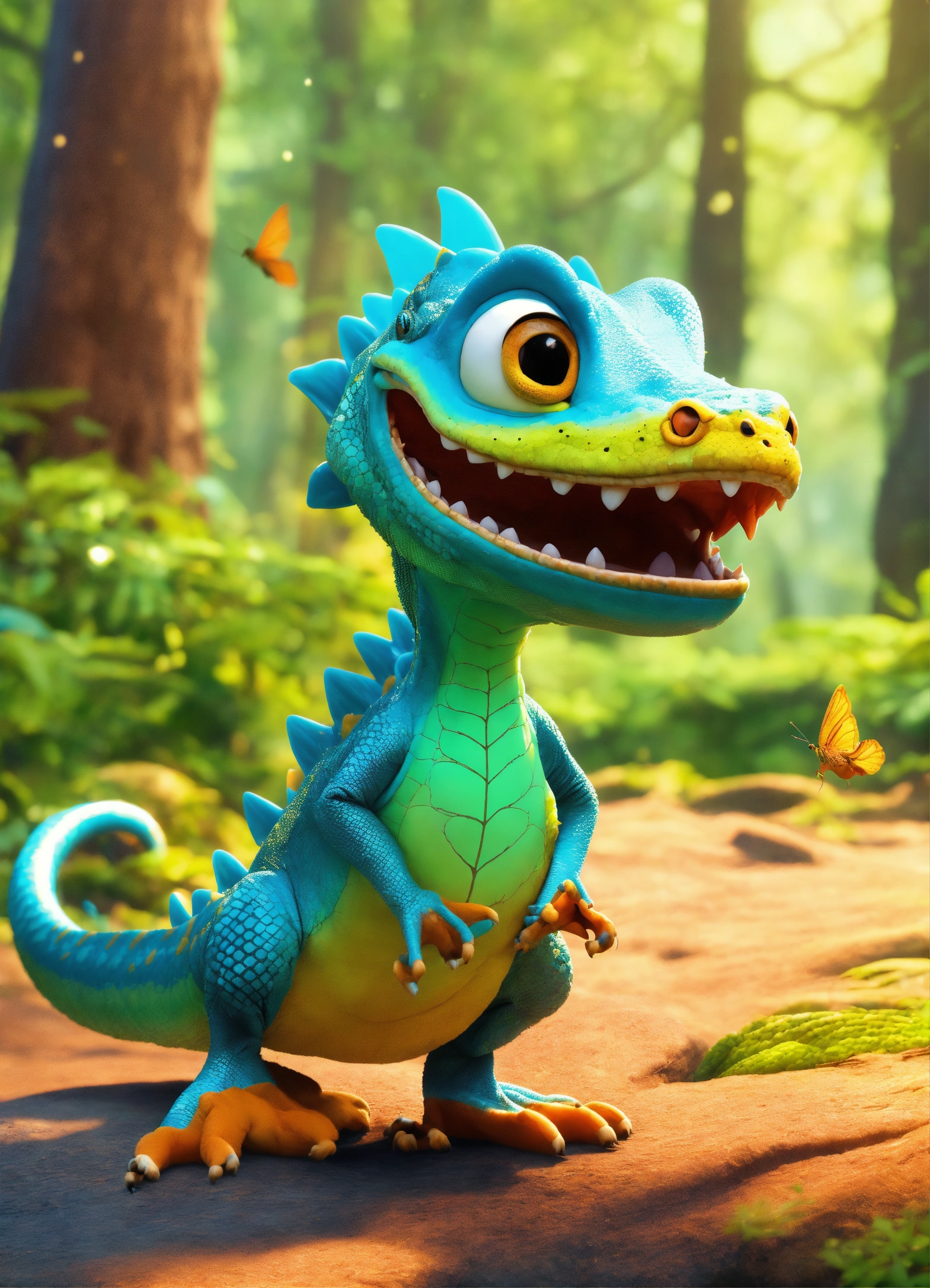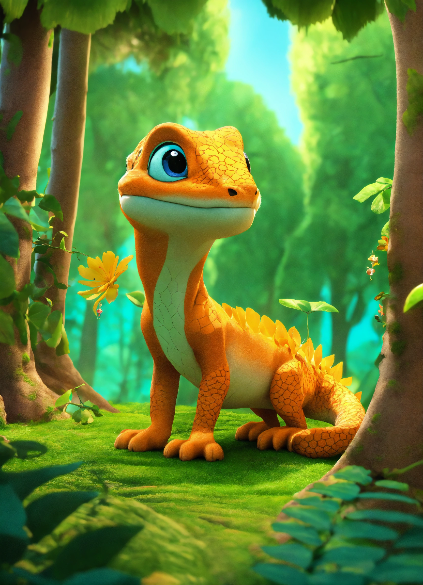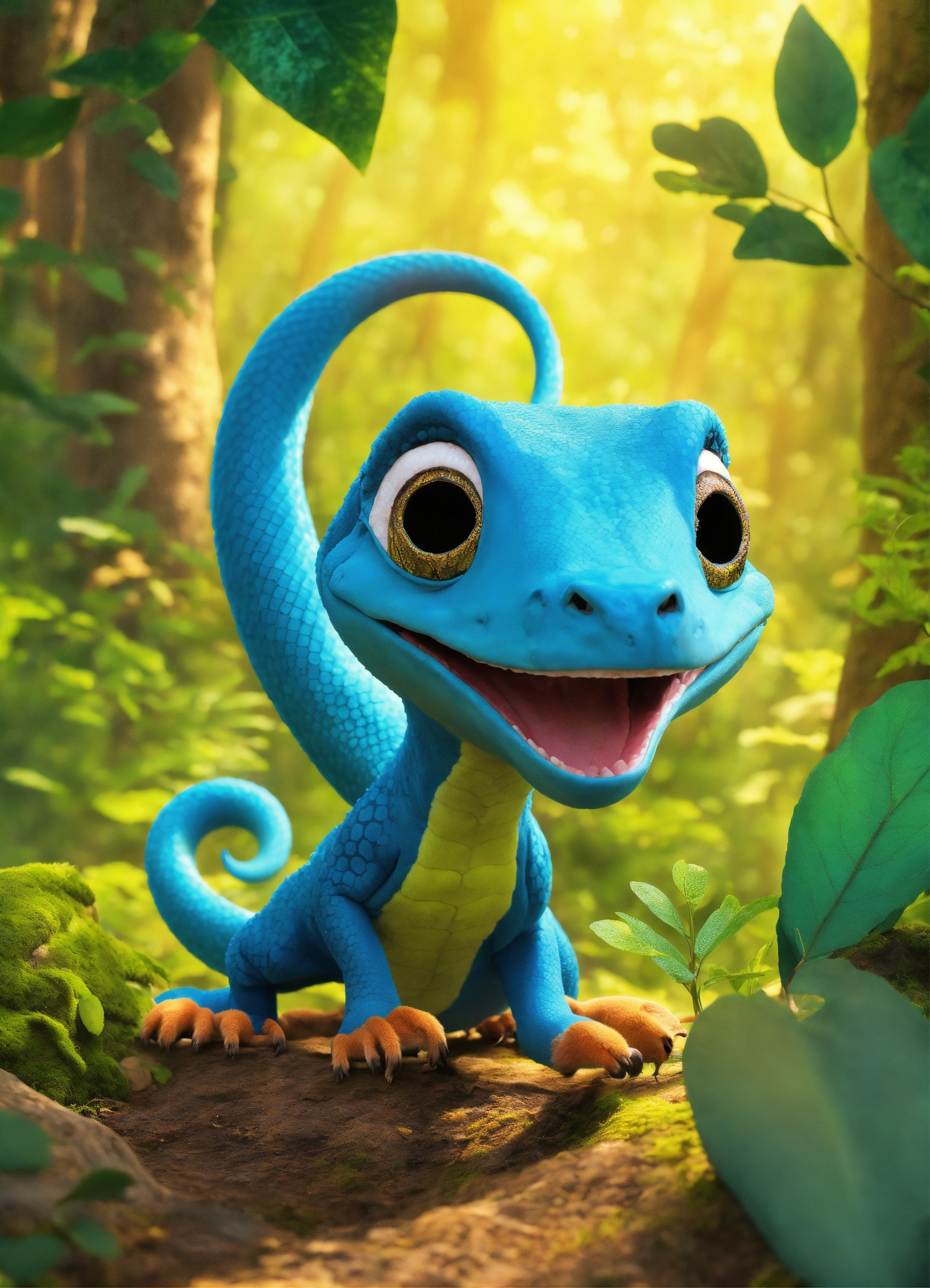 A aventura de cristian menino e o leo o lagarto falante na floresta encantada trees animals exploration nature harmony discovery adventure transformation, colors of nature, animated, 3d character, drawning for kids