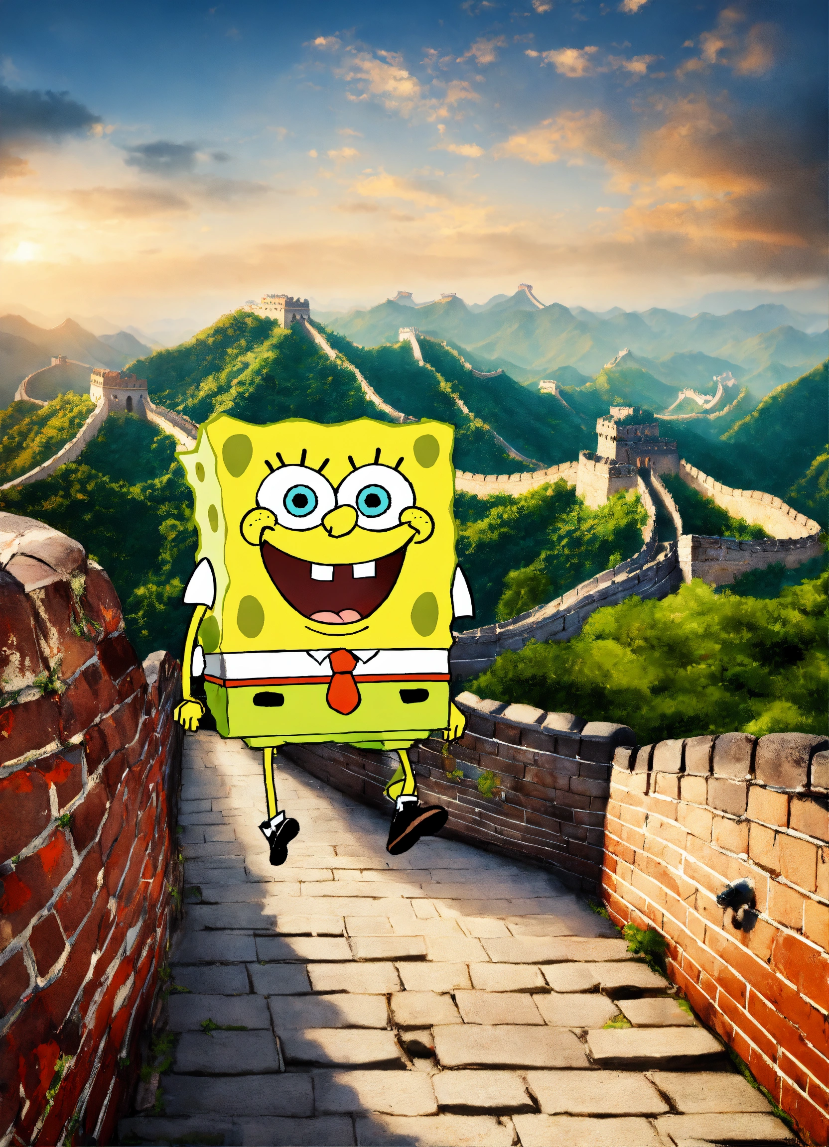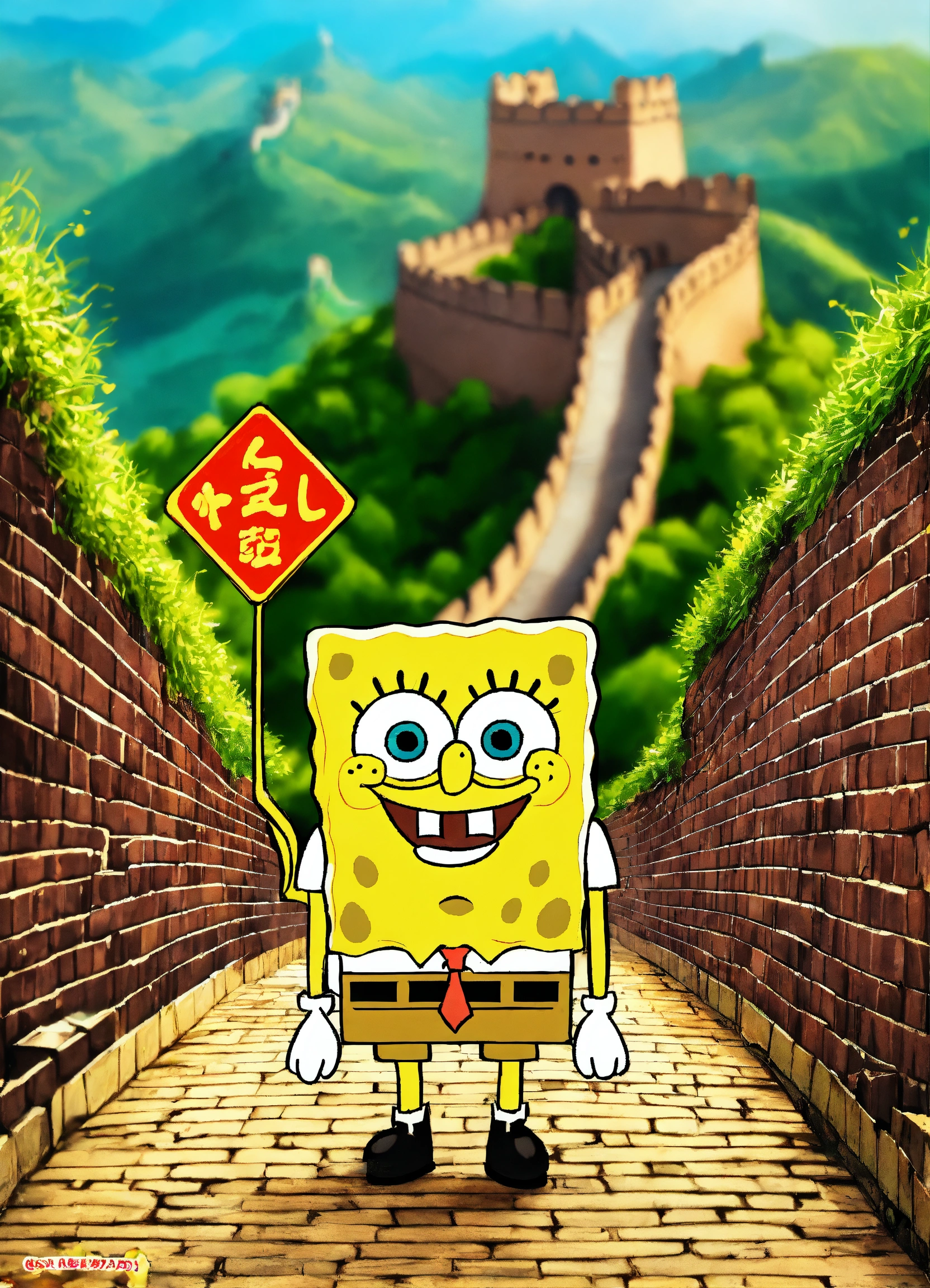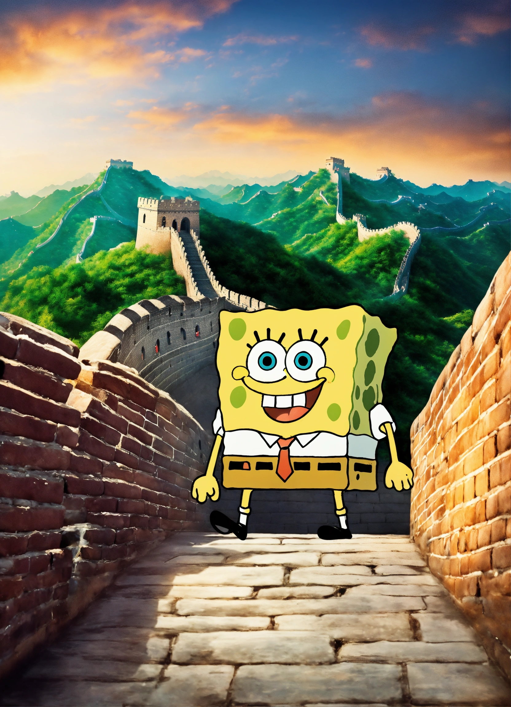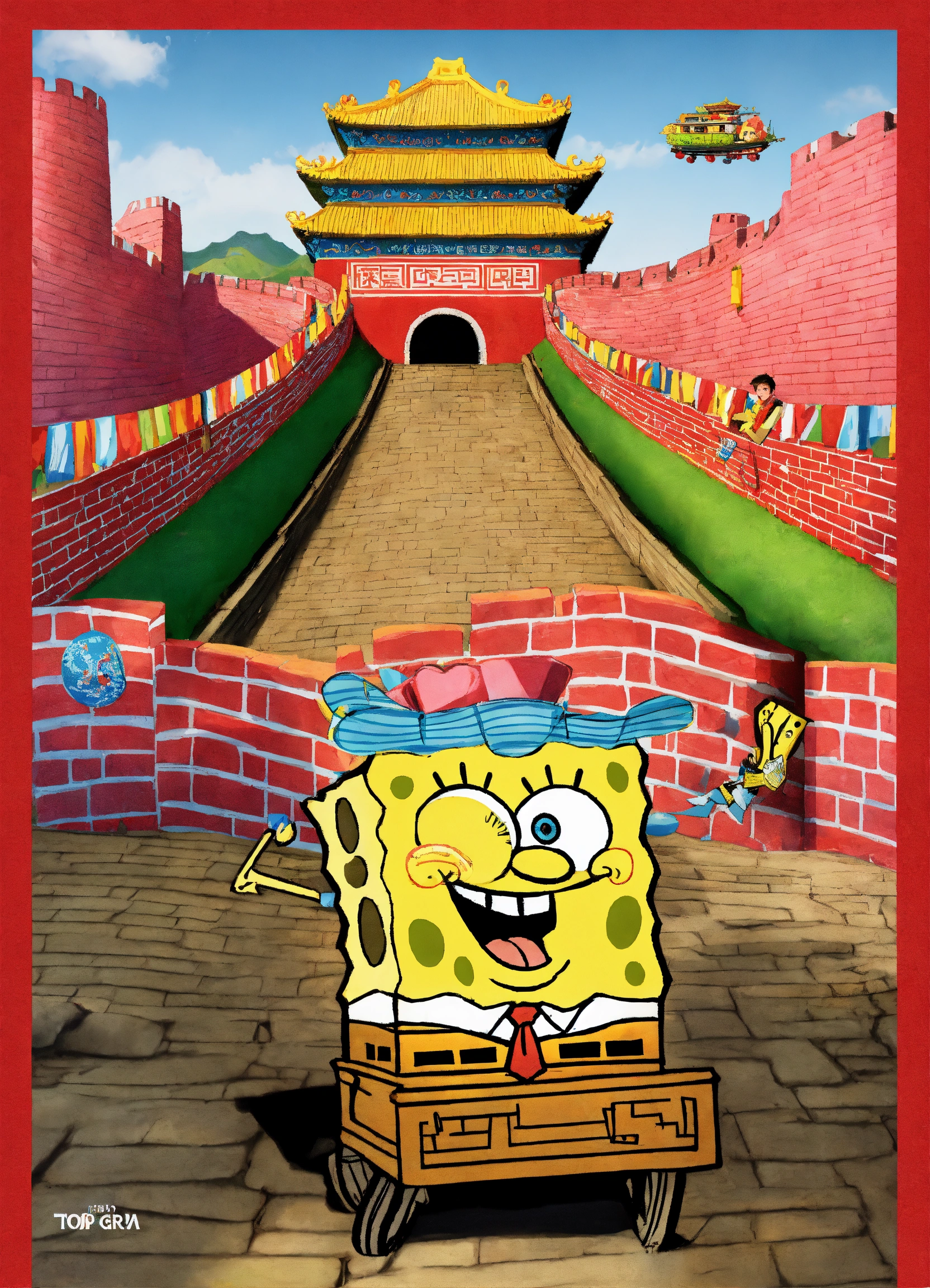 Spongebob squarepants arriba del great wall of china