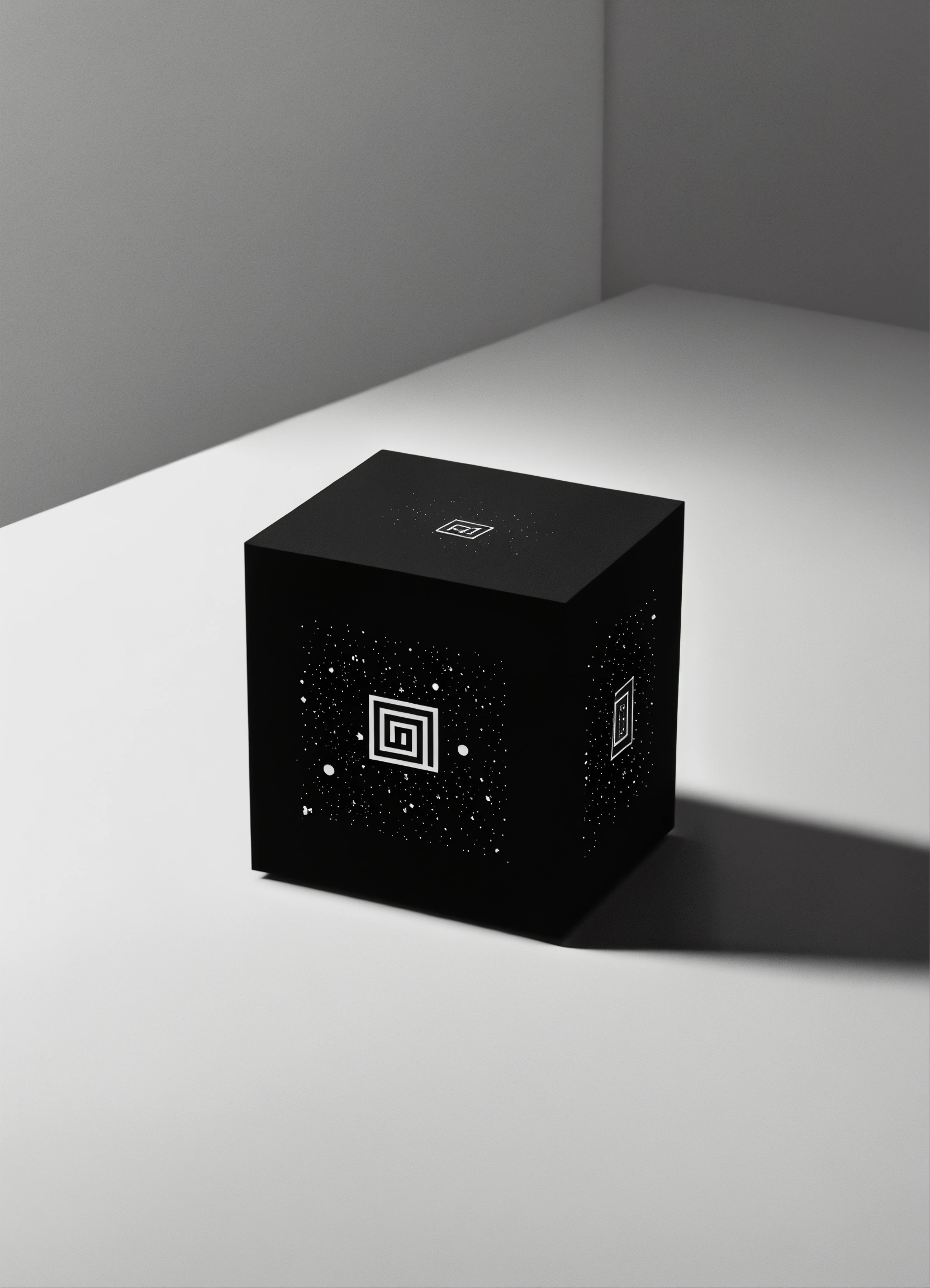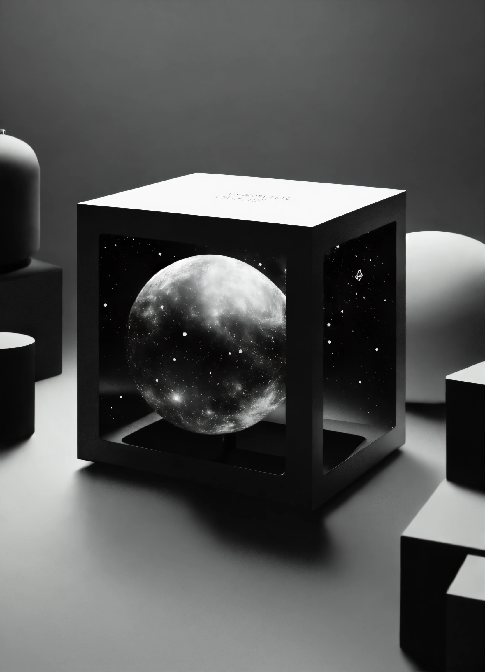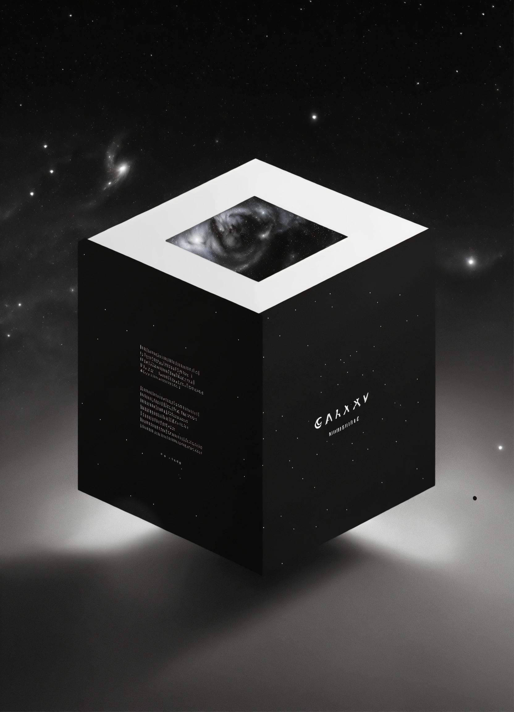(((monochrome minimalistic branding design))) a galaxy inside a cube