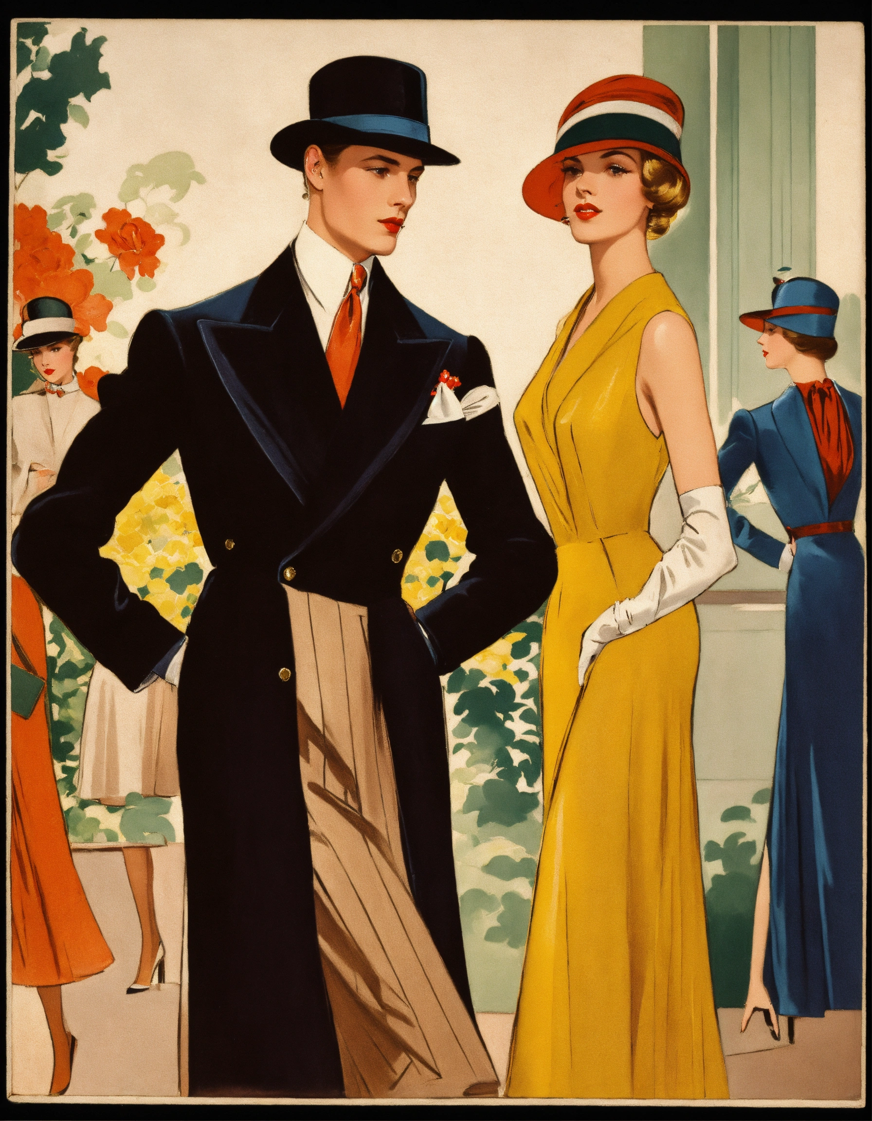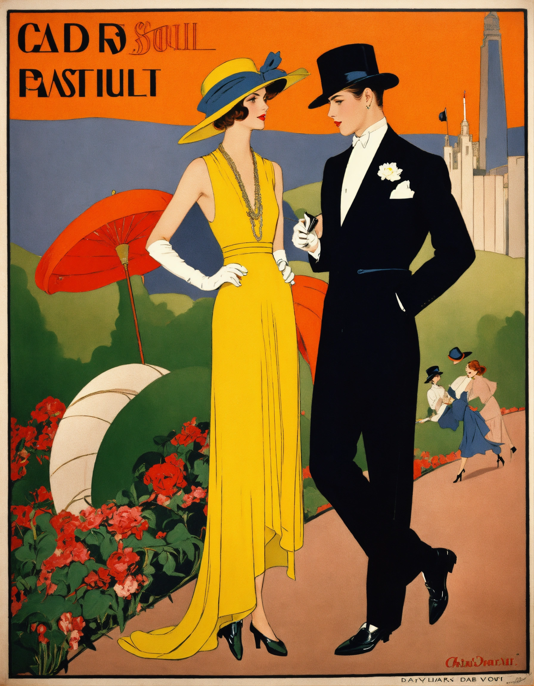 Art deco fashion dress gown hat gloves suit cigarette dandy paris