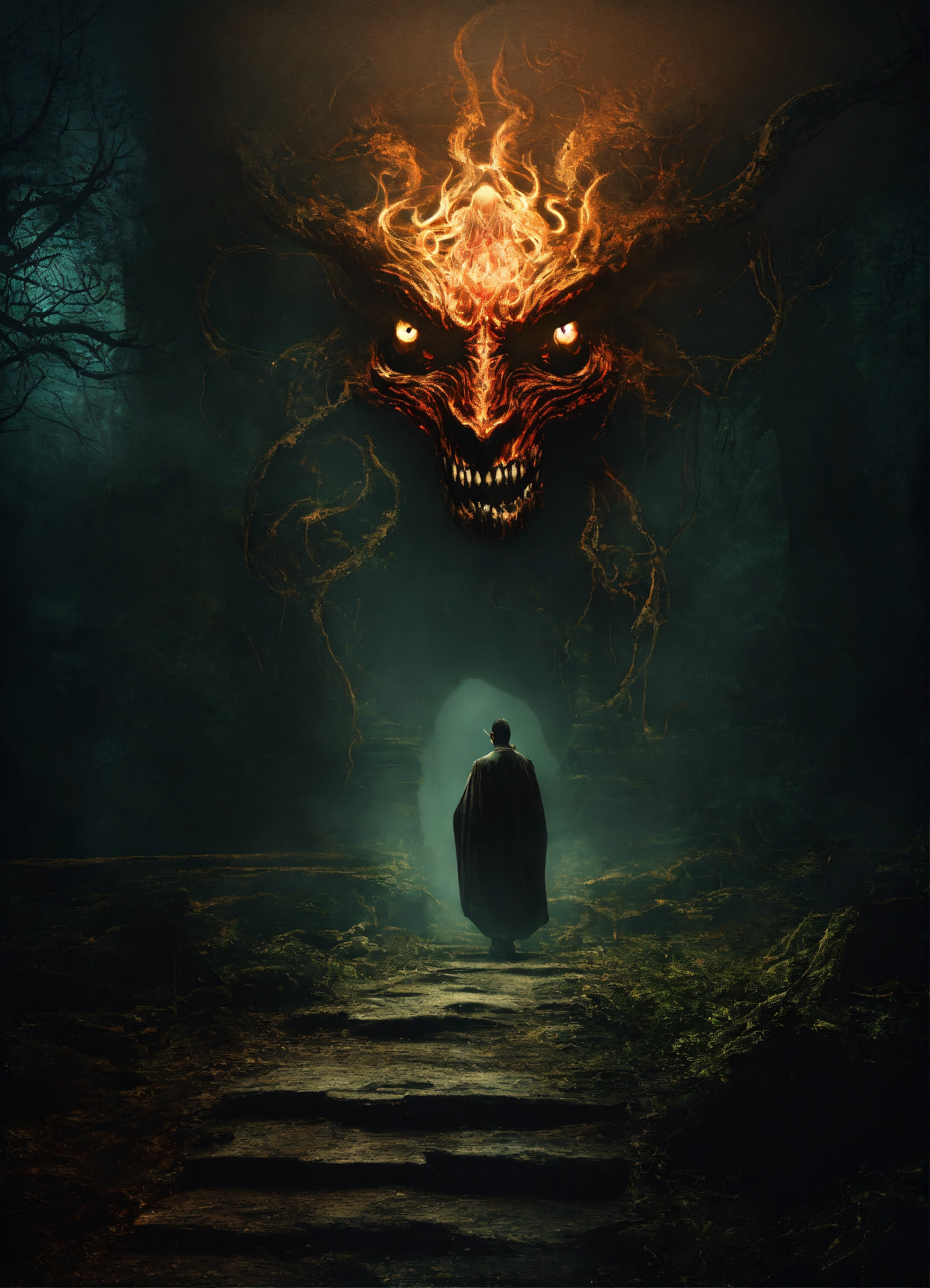 Tulpa demon occult esoteric mysticism supernatural fantasy dark background ghostly apparition eerie atmosphere