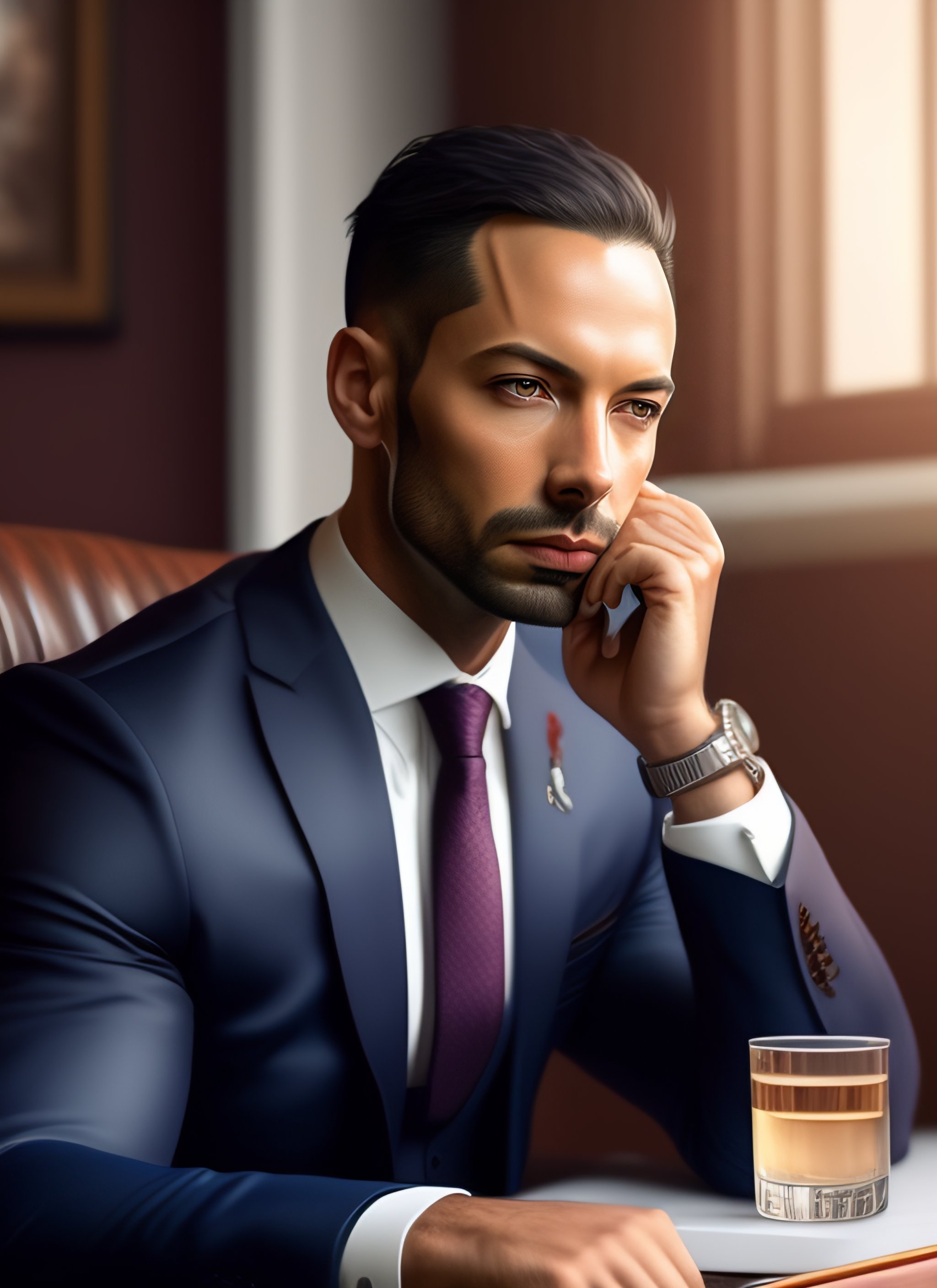 A highly detailed illustration of andrew tate wearing a suit, dramatic sitting thinking pose, intricate, elegant, highly detailed, centered, digital painting, artstation, concept art, smooth, sharp focus, league of legends concept art, wlop