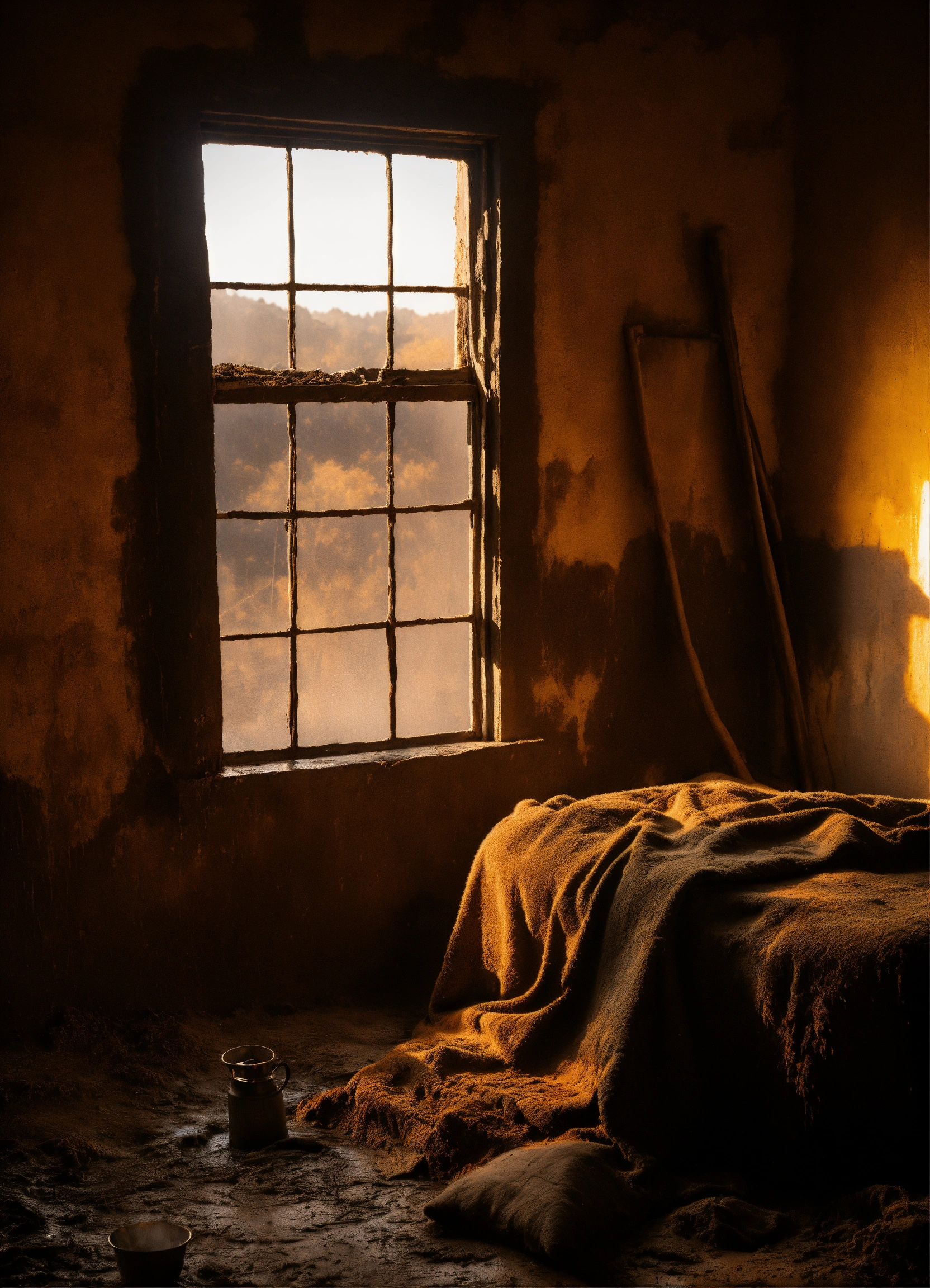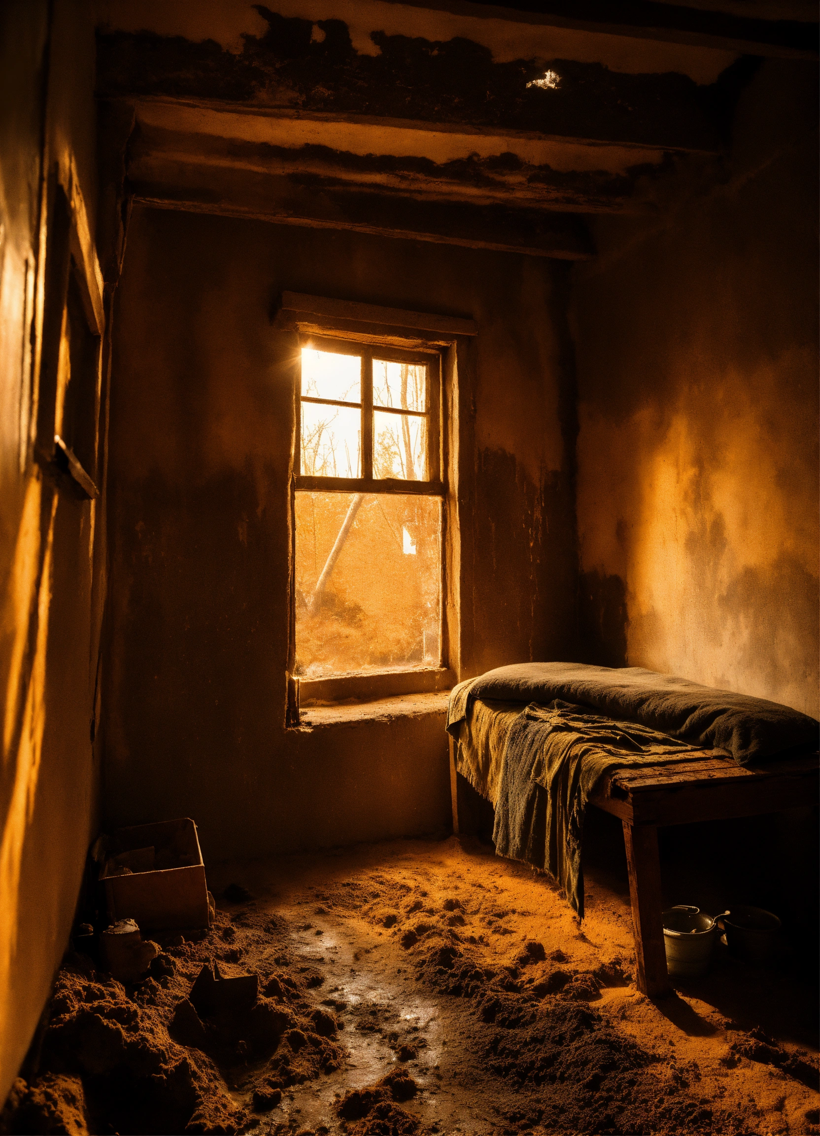 The color of the mud began to ooze from the walls as the sun peeked over the hill and melted the night cold, hernando turned on the pallet to face the patch of light that came in through the small window, the blanket brushed his face with its rough touch and enveloped him with its smell of humidity and charcoal