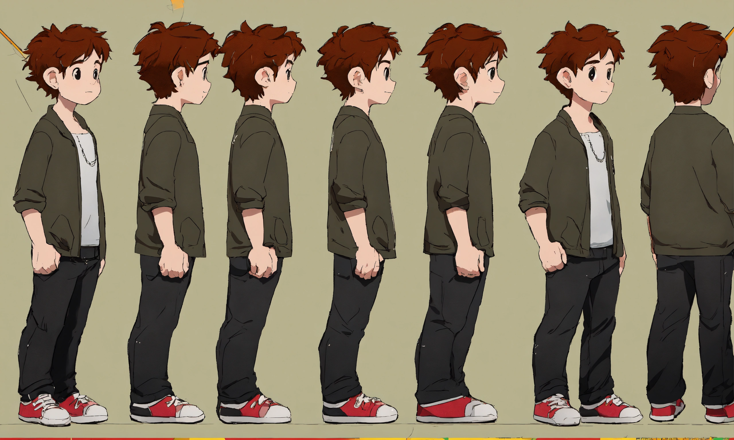 Man, cute, black, cartoon, character sheet, full body, reference sheet, character model, detailed, front view, side view, back view