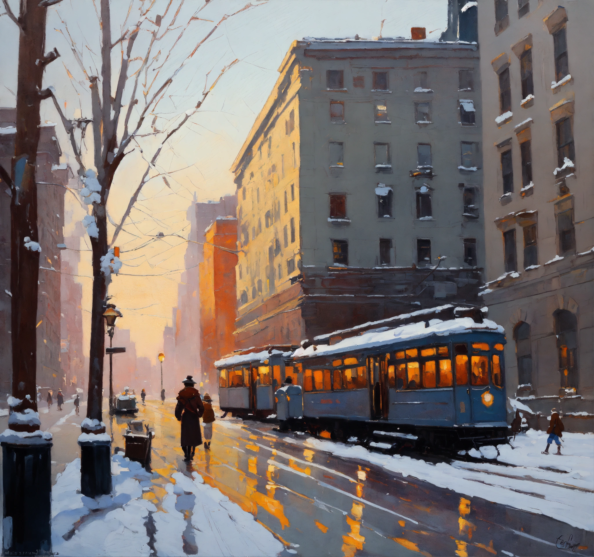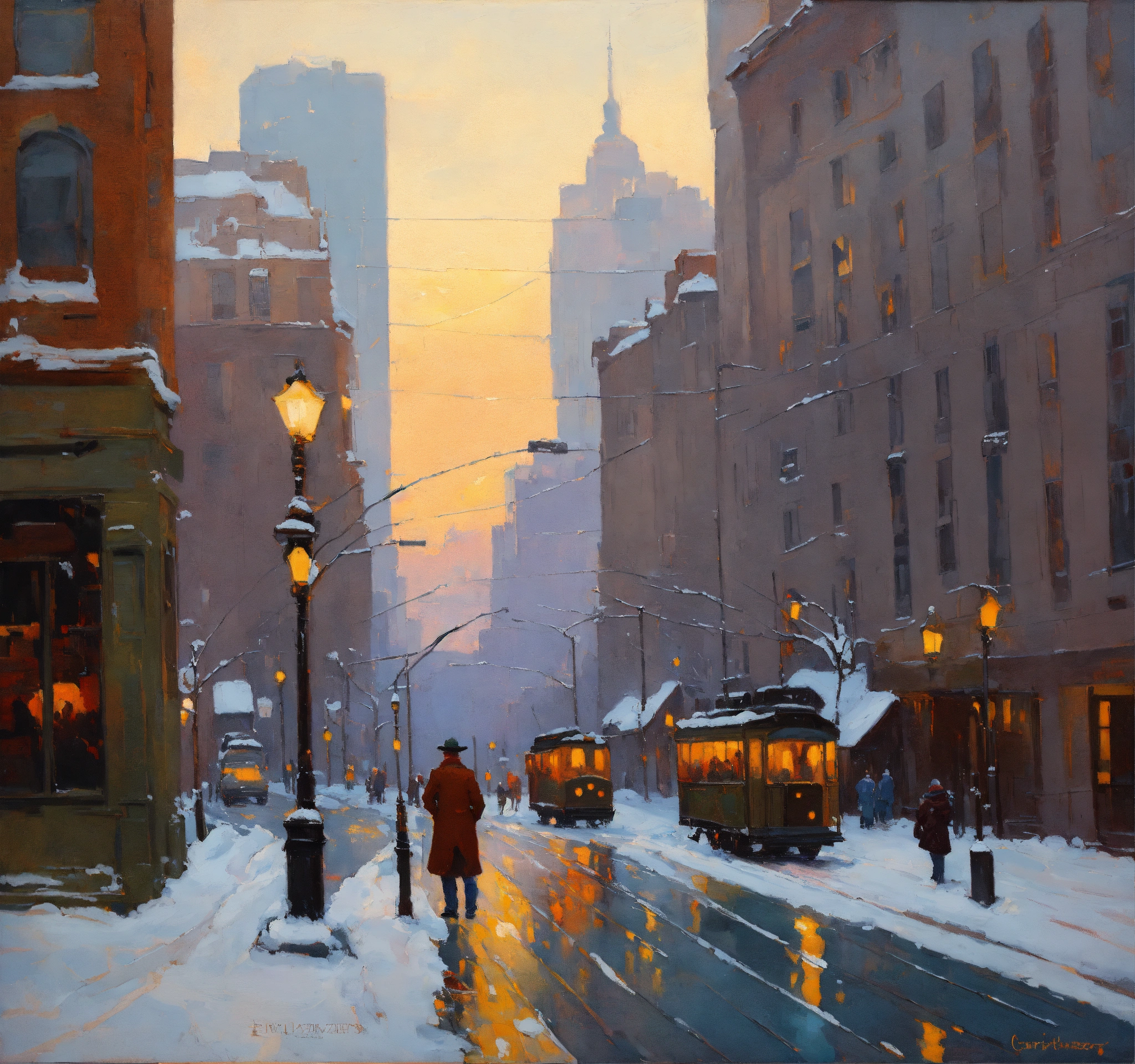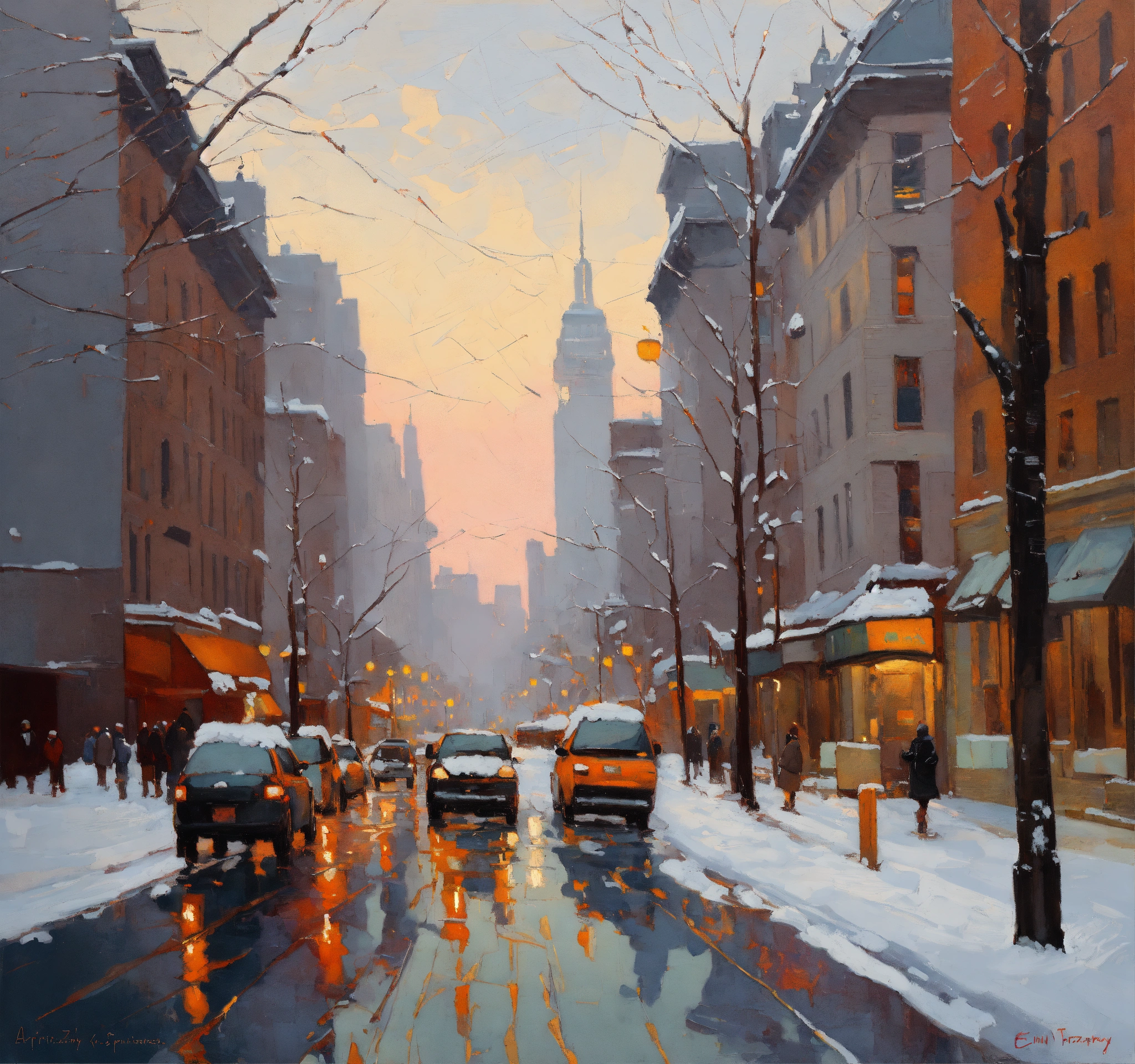 New york, gray colors, winter, breathtaking oil painting by erin hanson, alexi zaitsev, karl spitzweg, craig mullins, award winning, impressionistic