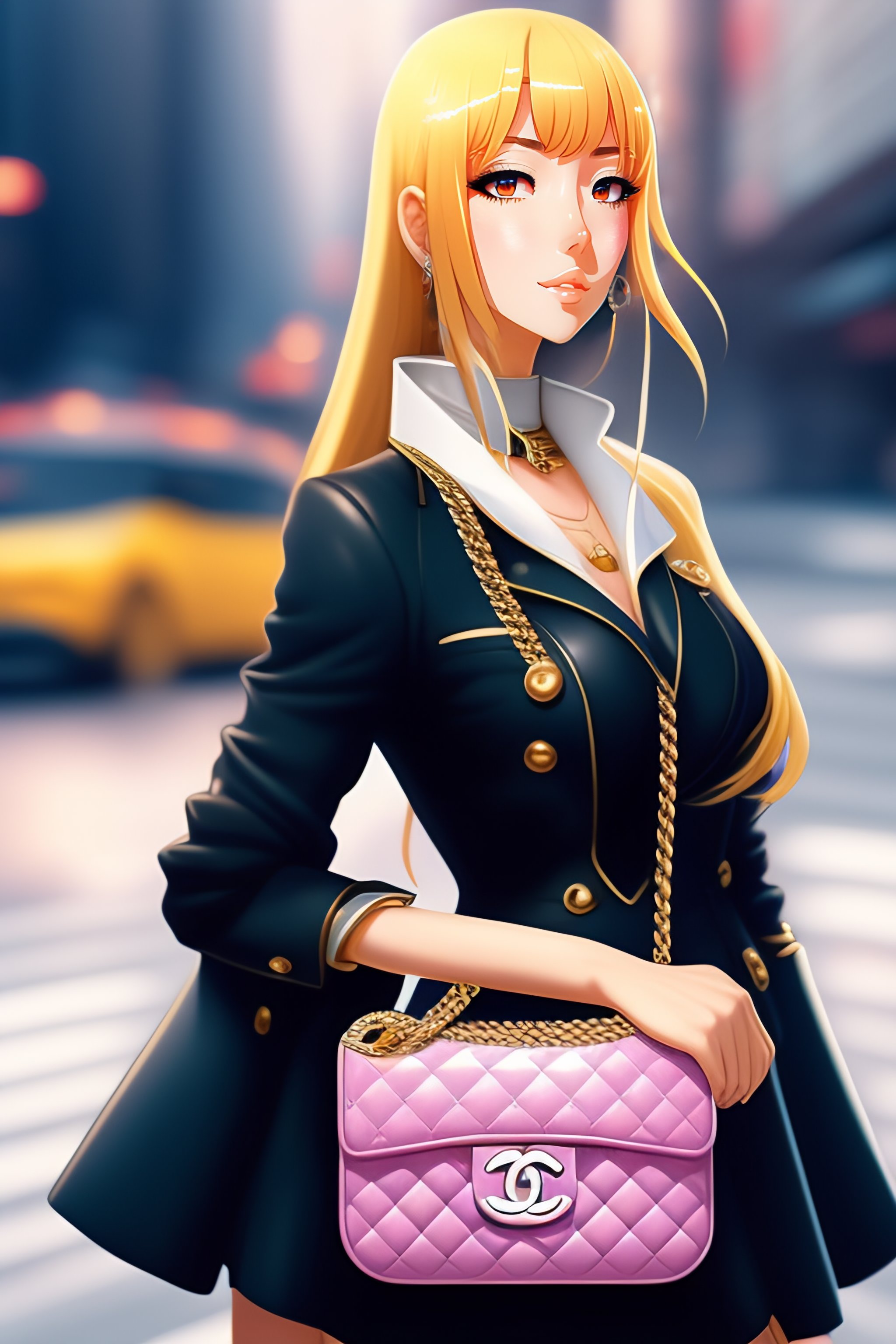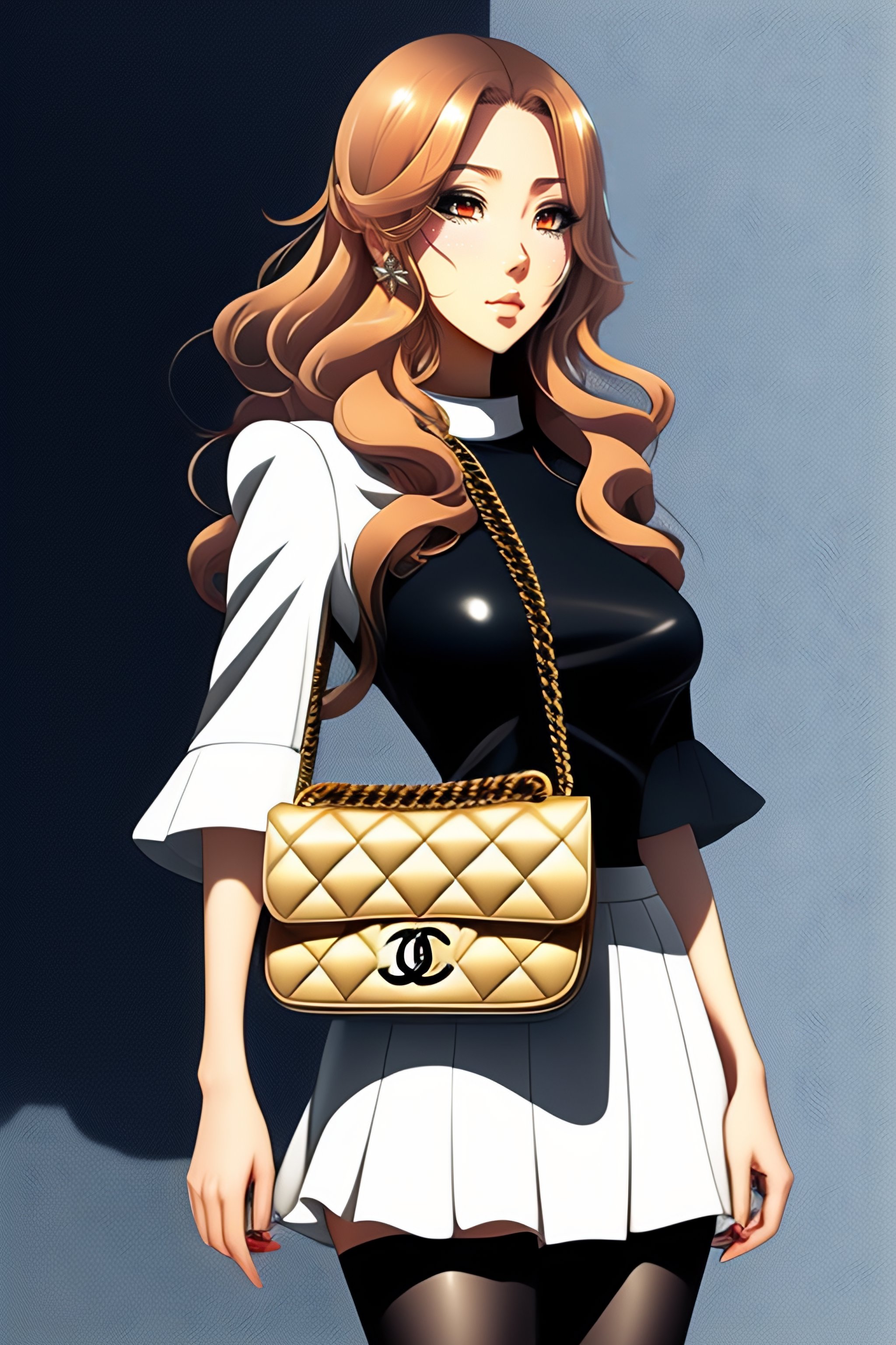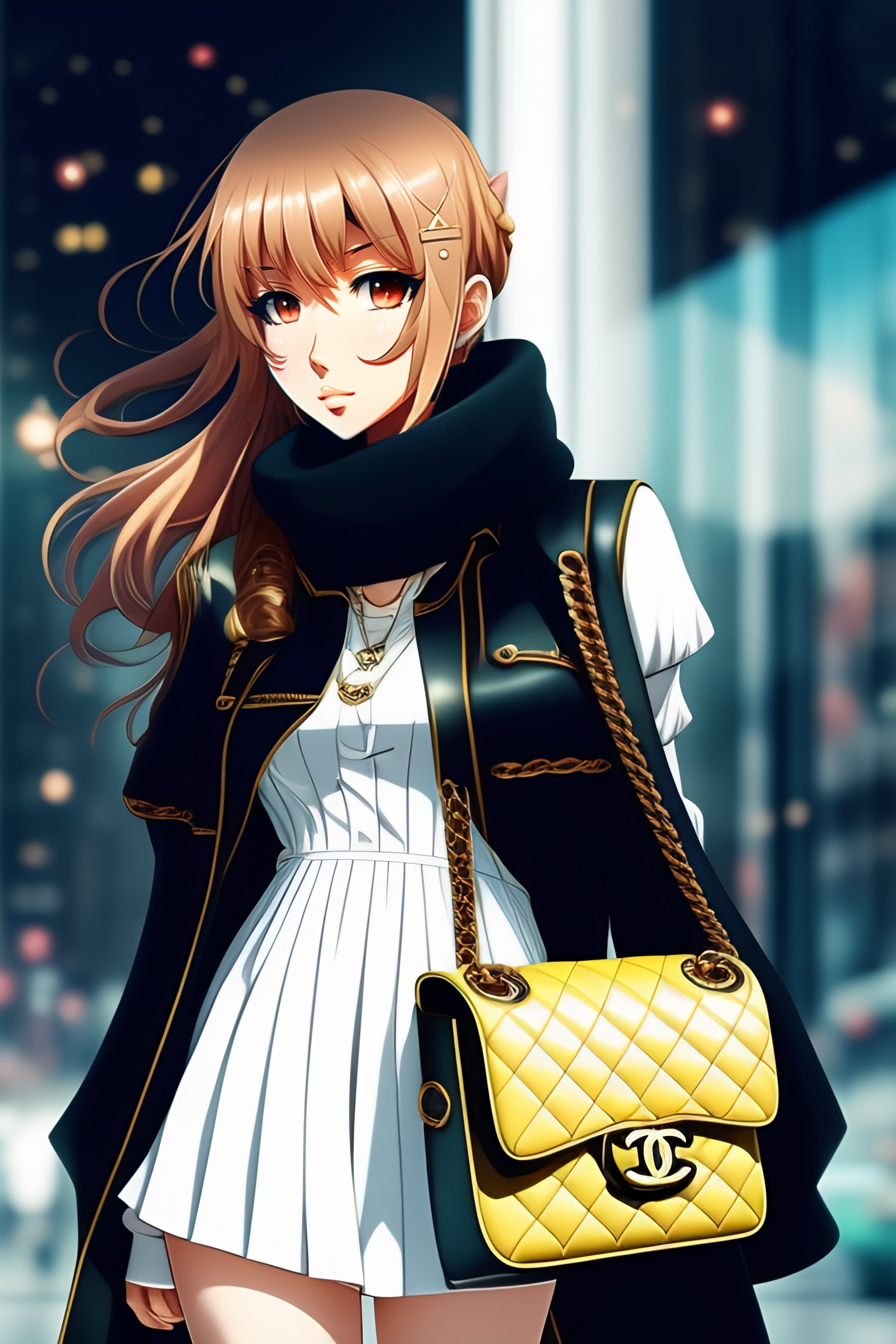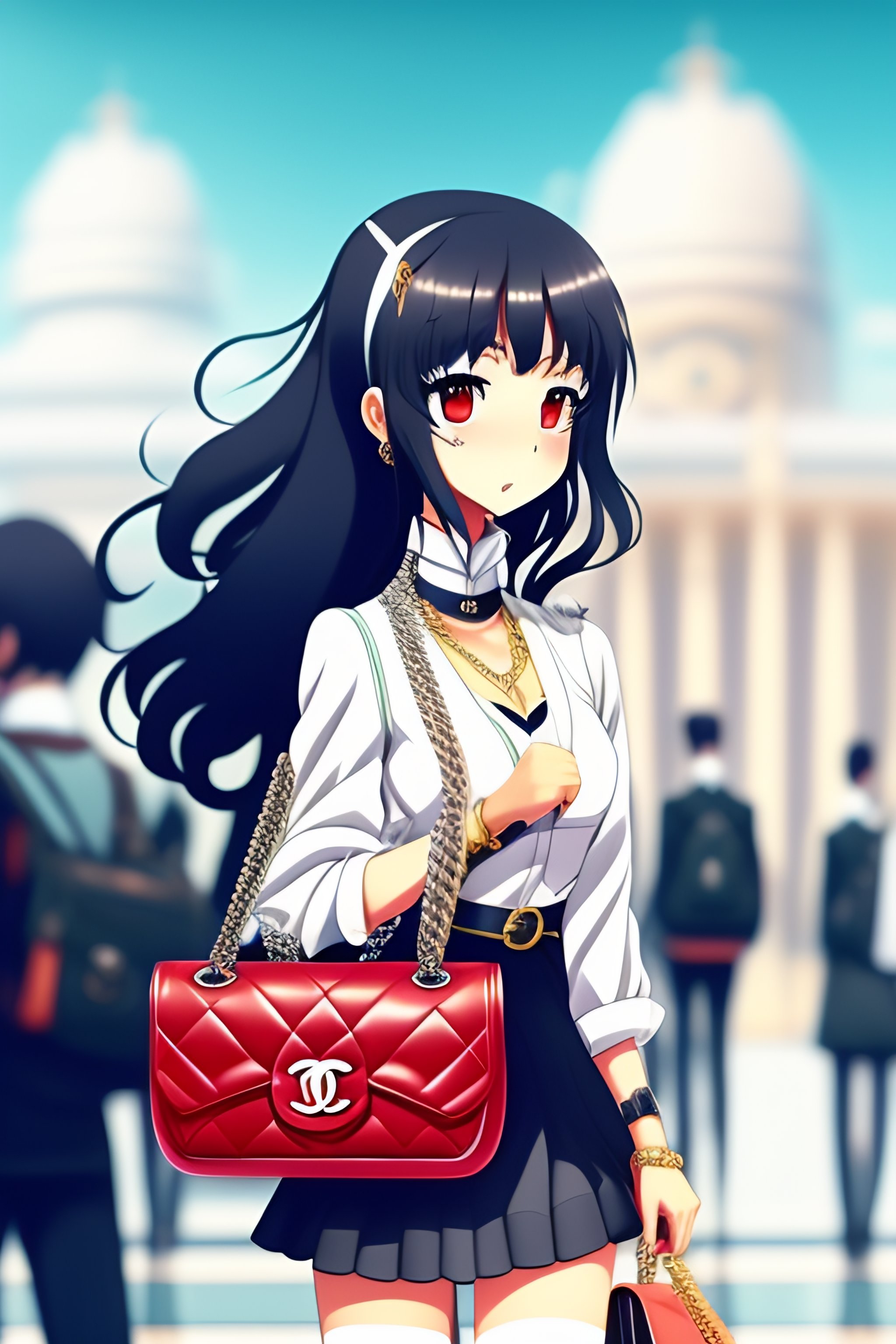 Clear and sharp cartoon of an anime girl wearing a chanel bag