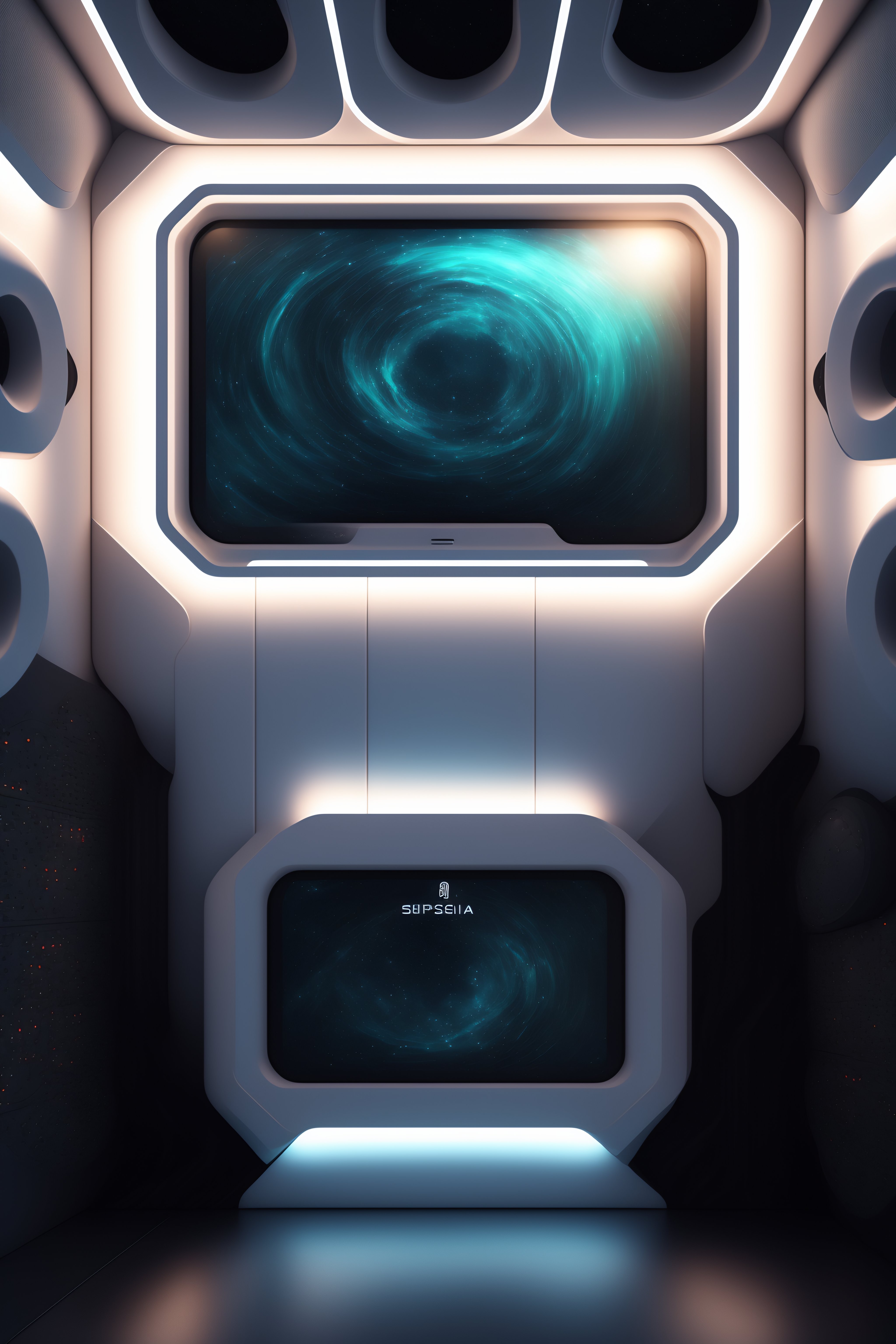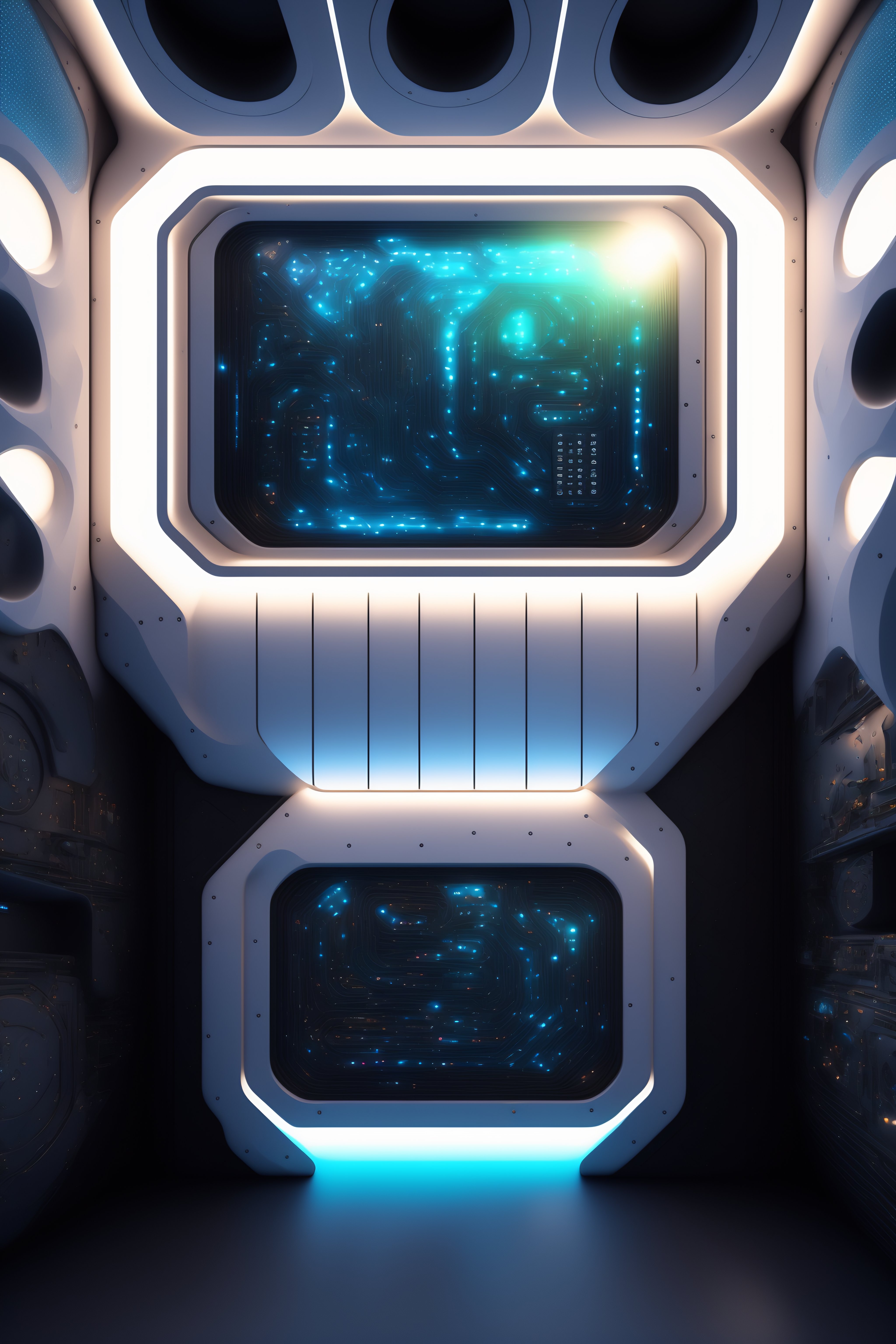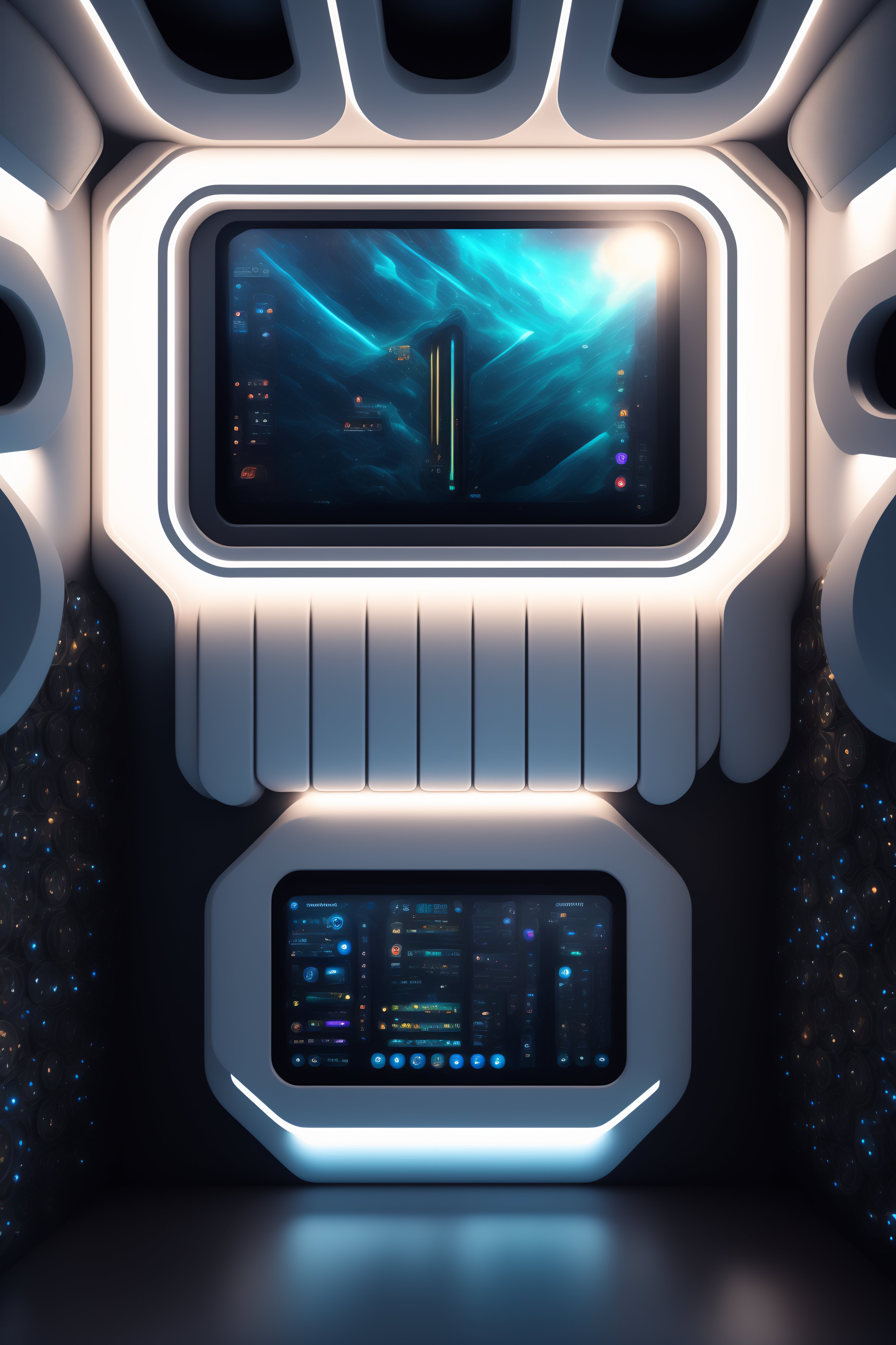 Inside spaceship wall texture with metal shinning parts tubes monitors and touchscreen