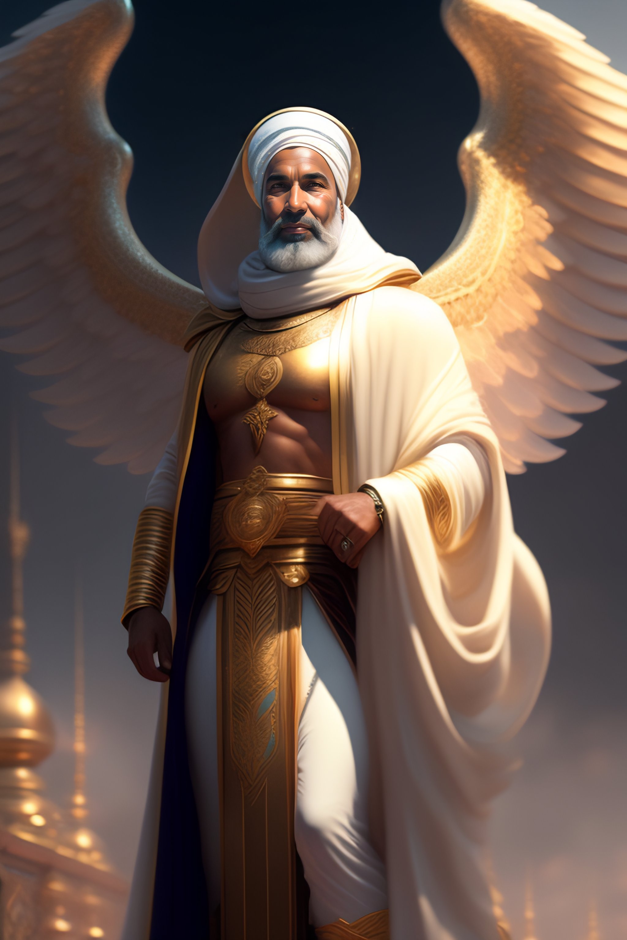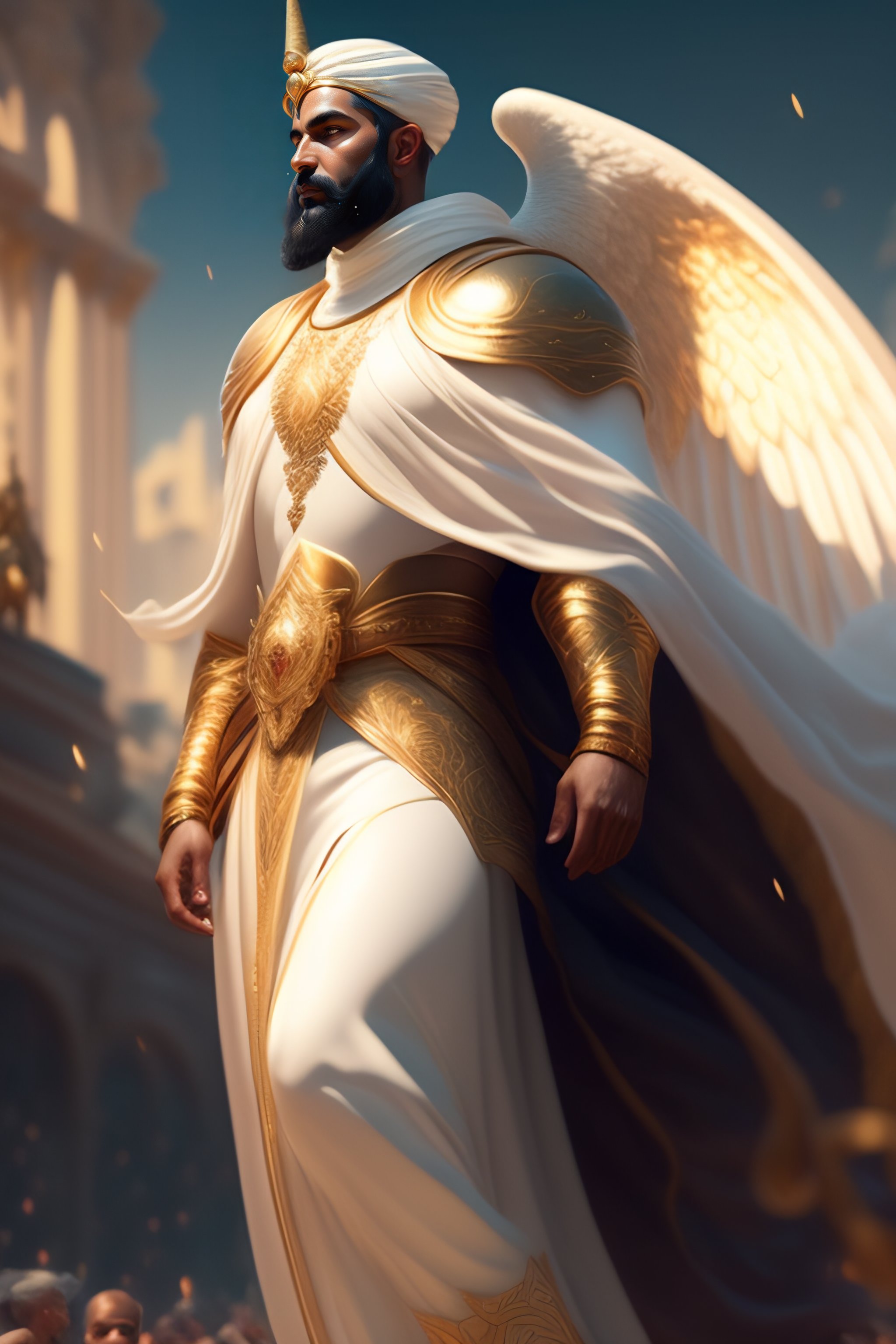Full body rising saint angel hassan rouhani by stanley artgerm lau, greg rutkowski, alphonse mucha, concept art, character design, trending on artstation, rey tracing, unicorns fantasy, 8 k, 4 k, beautiful lighting, painting, rule of thirds