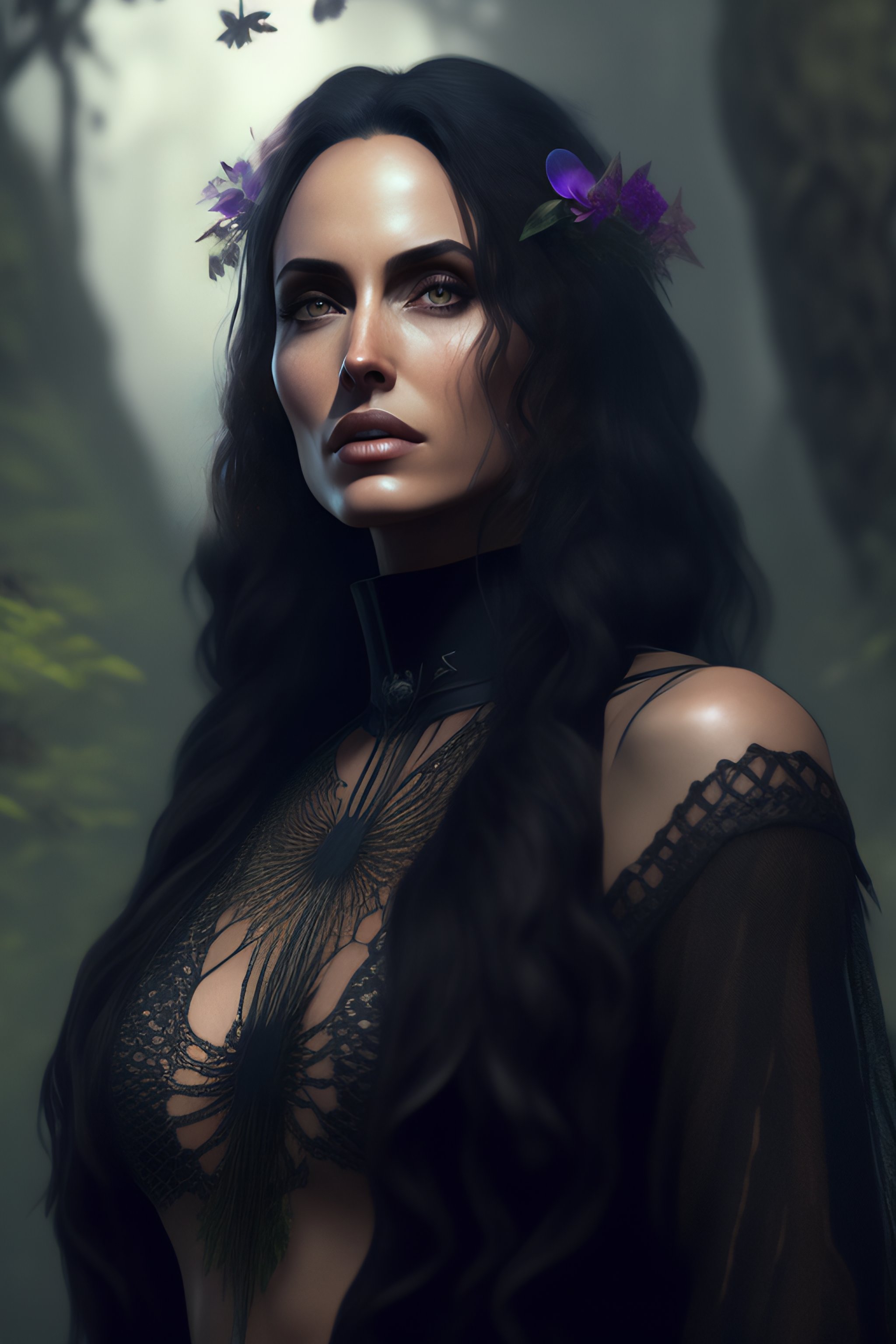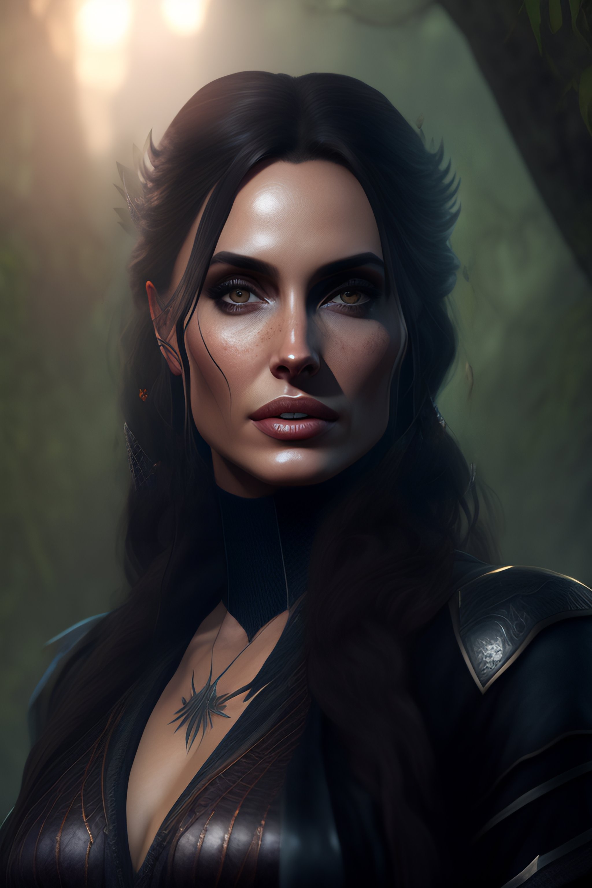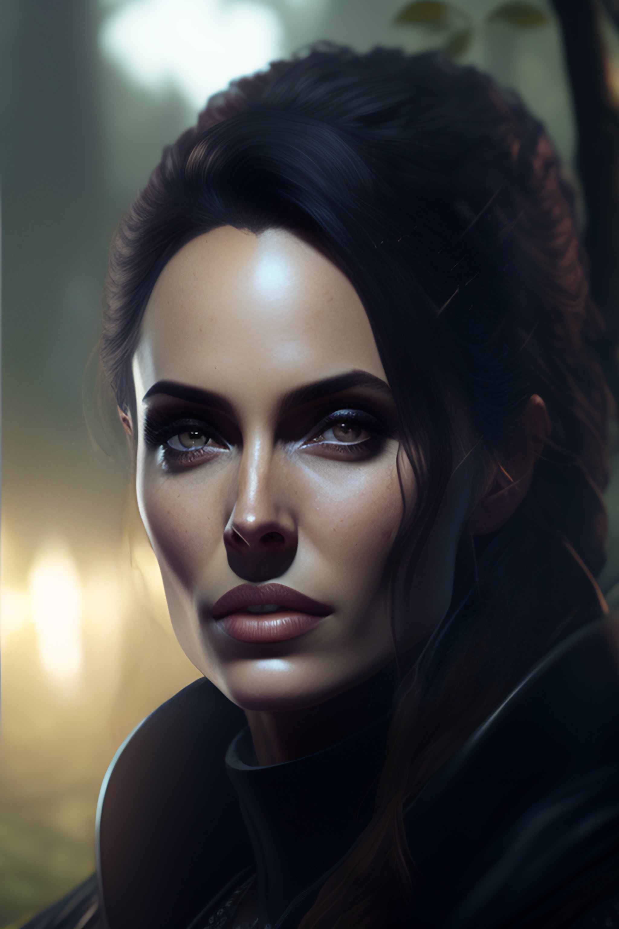 Artistic portrait of gothic realistic true angelina jolie, goth orchid forest, spiderweb, honeycomb, barn wire, cobweb. 8k resolution concept art portrait by greg rutkowski, artgerm, rpg, jrpg, hdr, unreal engine, game character in a topselling game, playstation 5