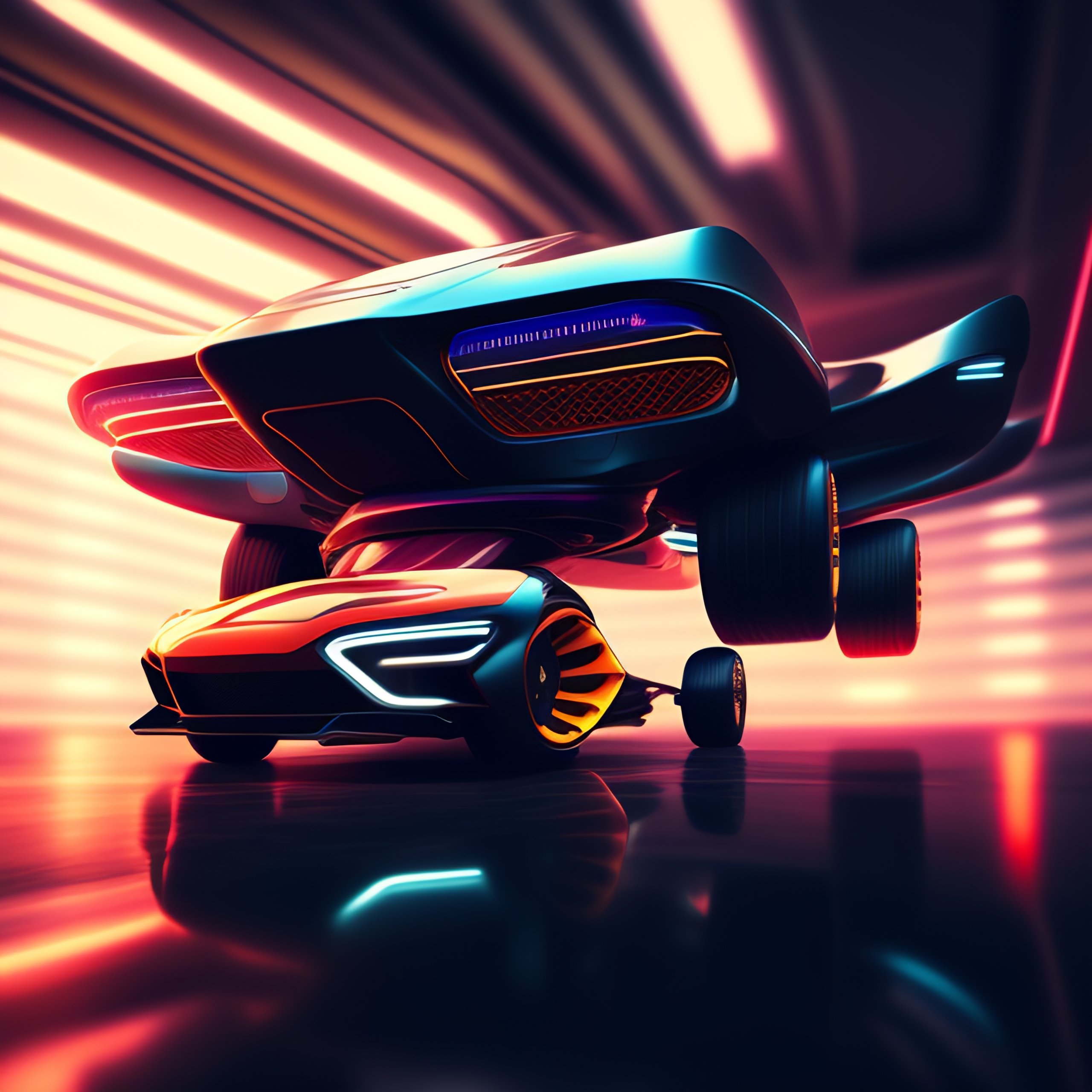 Front of a futuristic flying car, cyberpunk, horizontal flaps, dramatic lighting, 4k, digital art, concept art