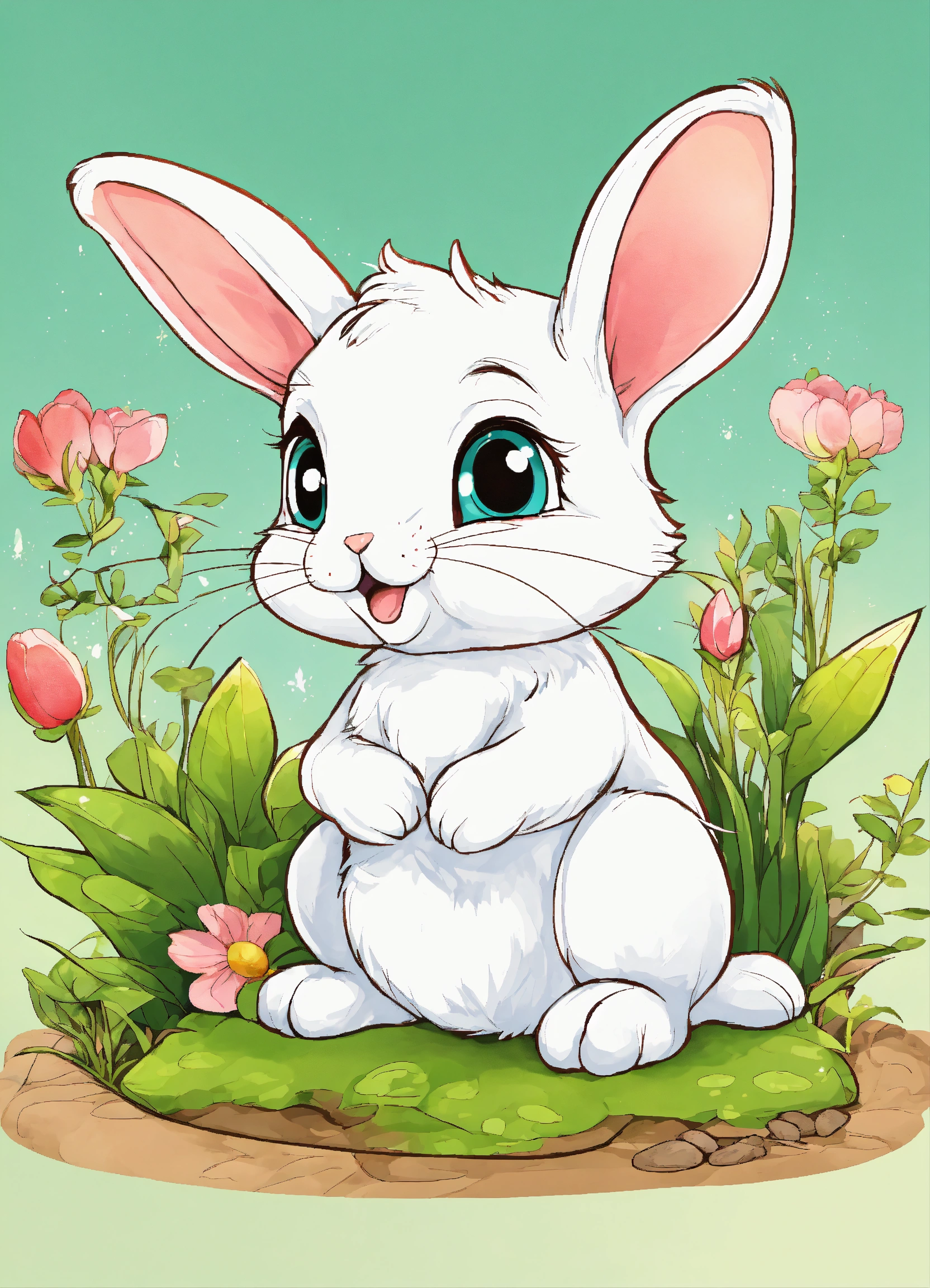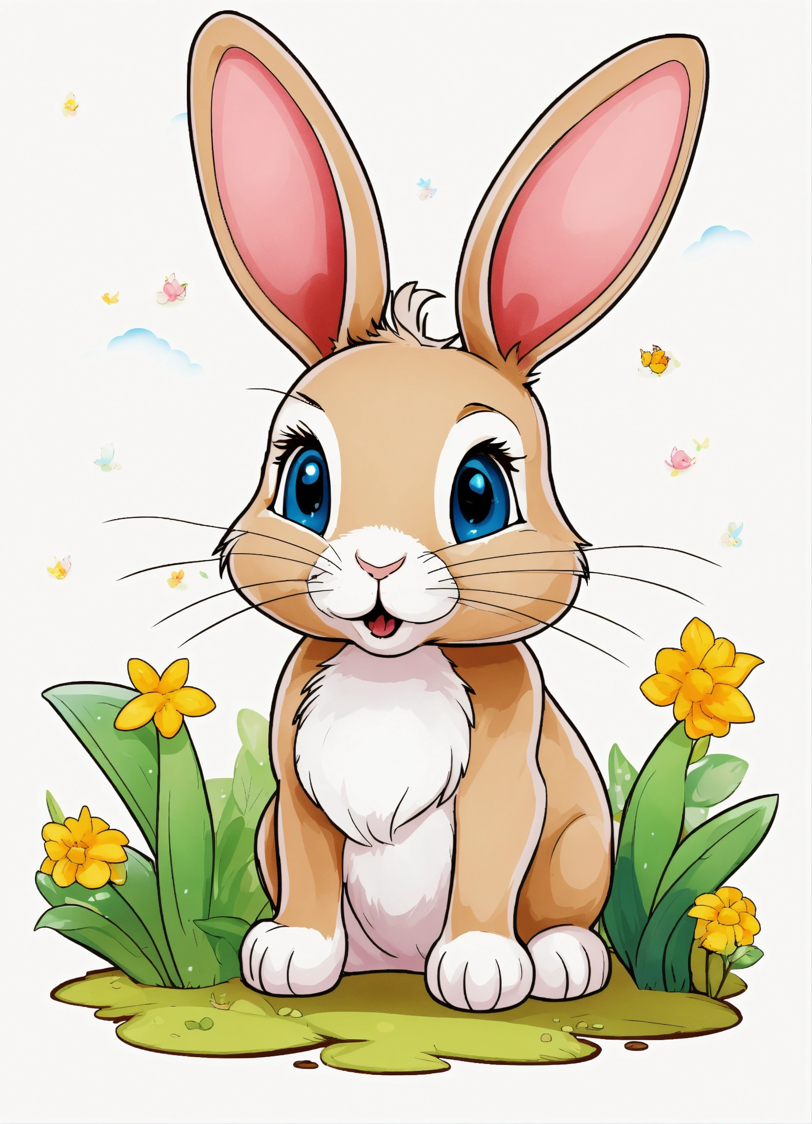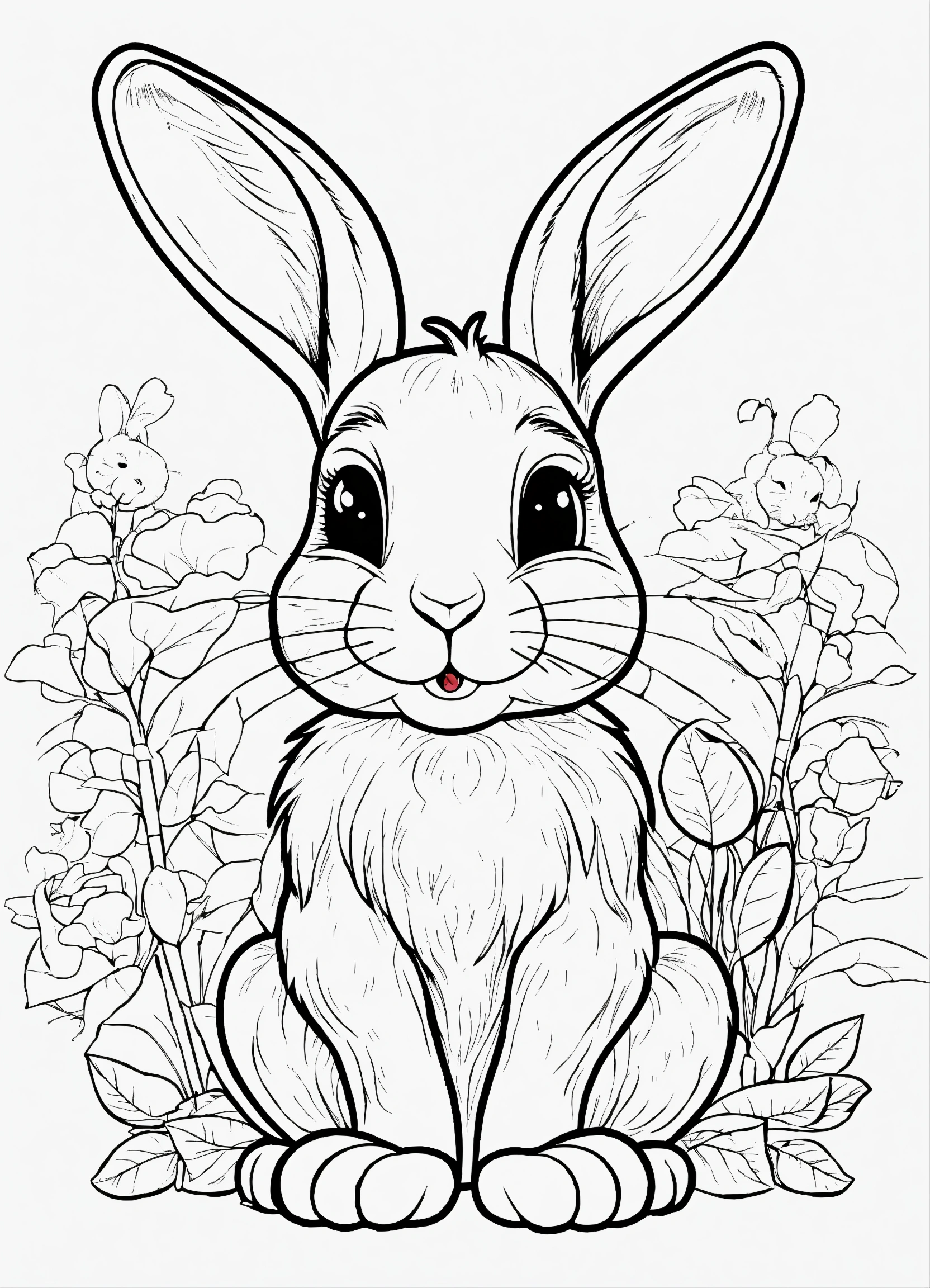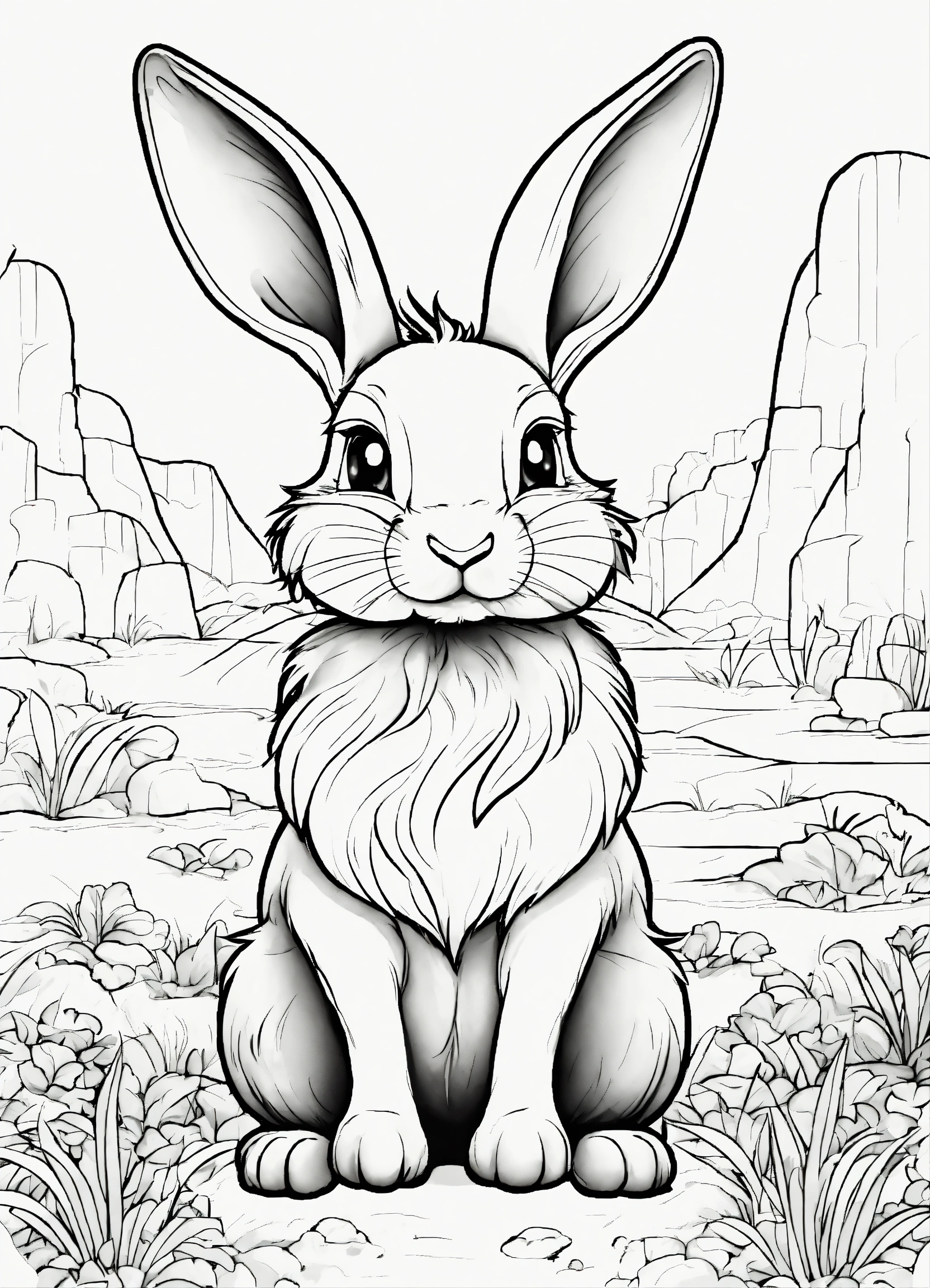 Generate a cute little rabbit, super eye-catching illustration, resolution, cartoon-sticker style with clear lines on a pure white background suitable for a children's coloring book.