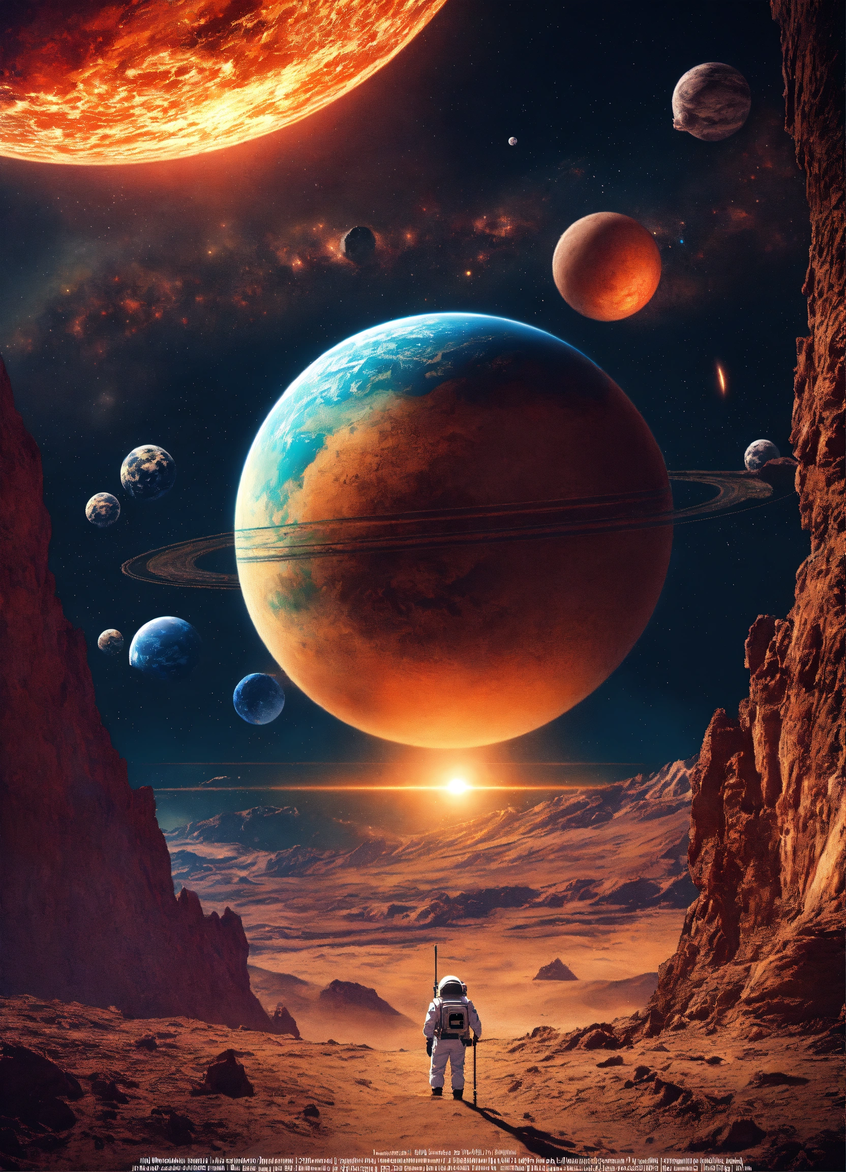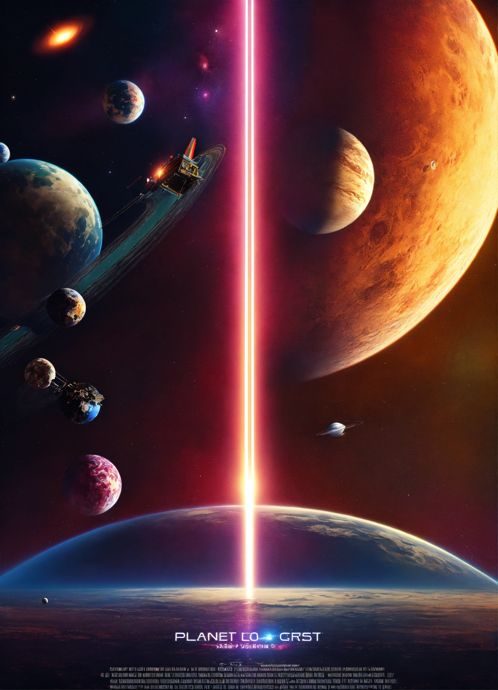 Poster space über einen planeten der zerstört wird von einem laser