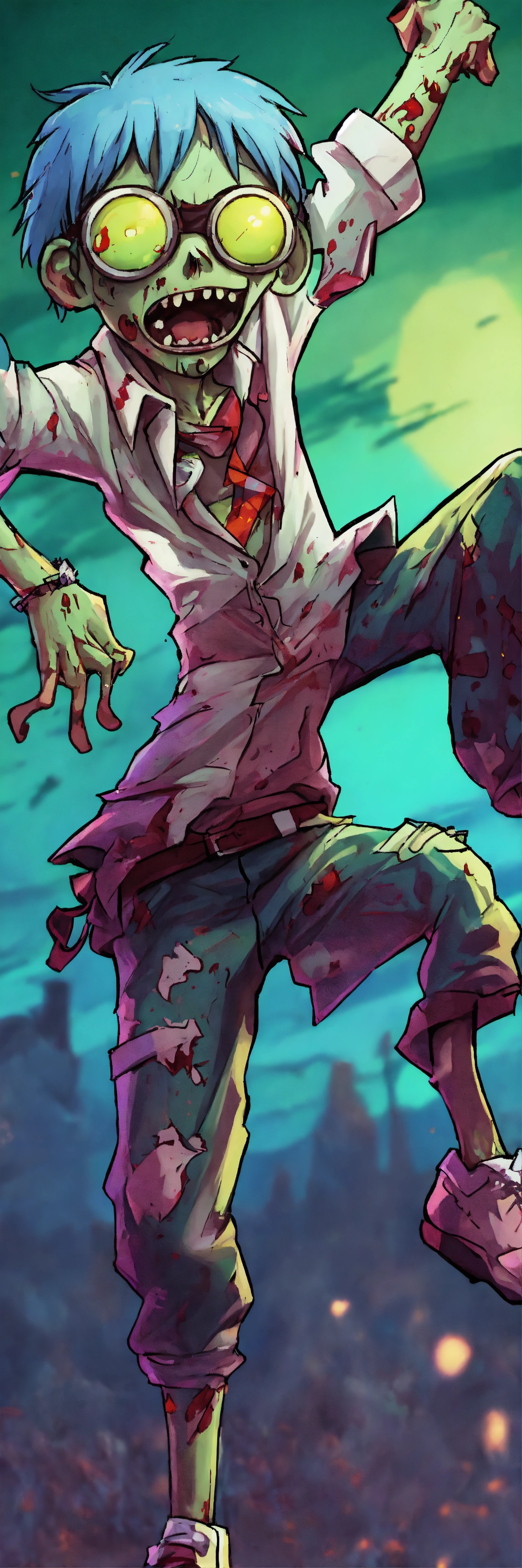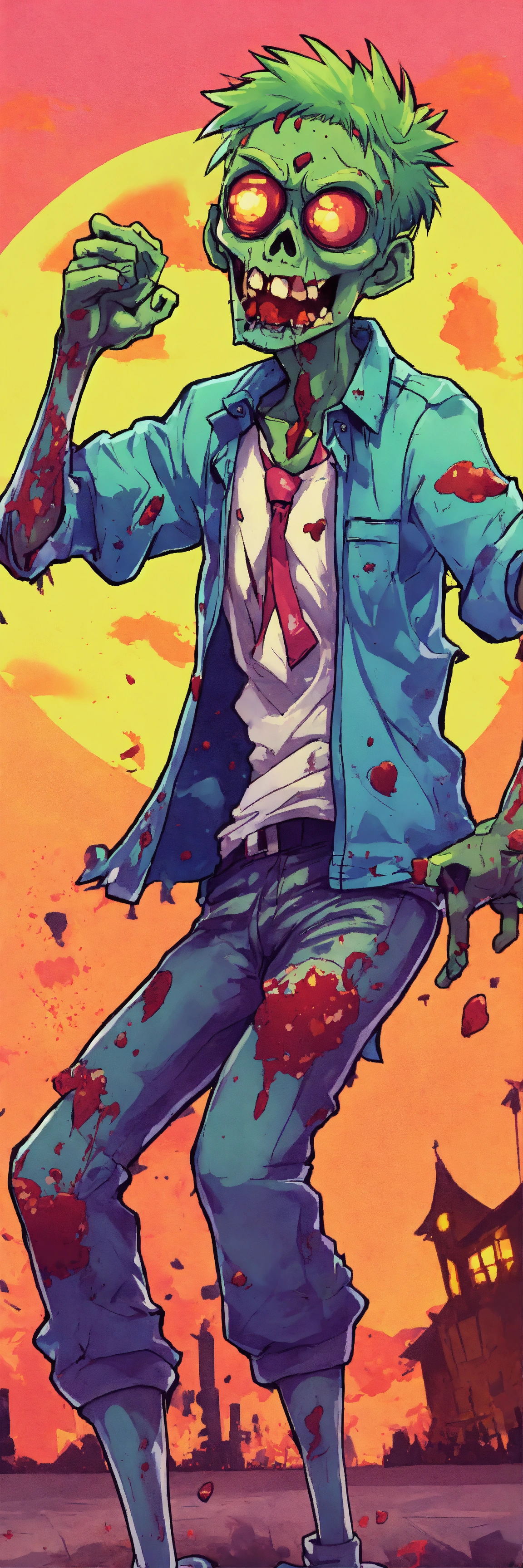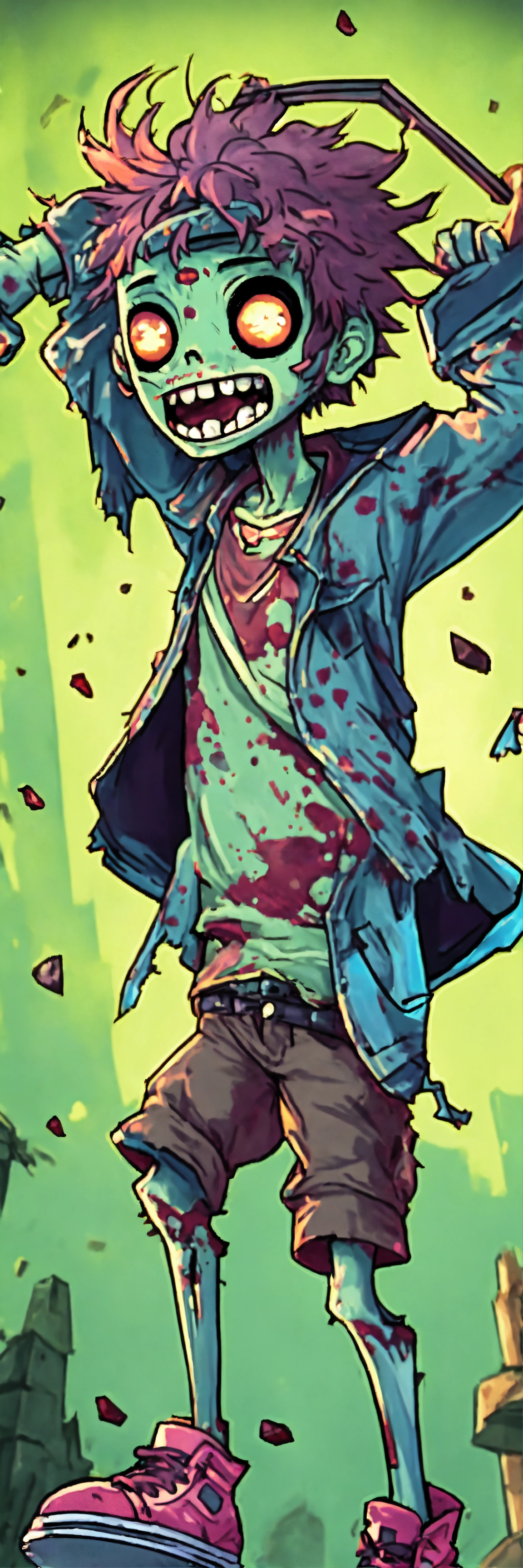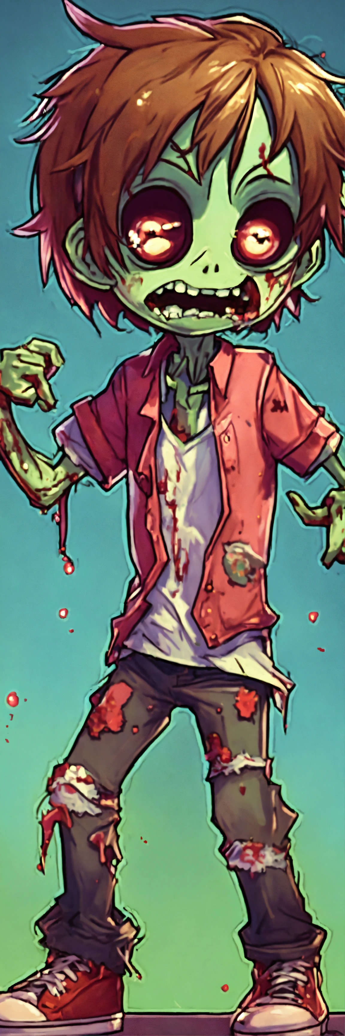 Anime cartoon illustration of one cute dabbing (dance) zombie