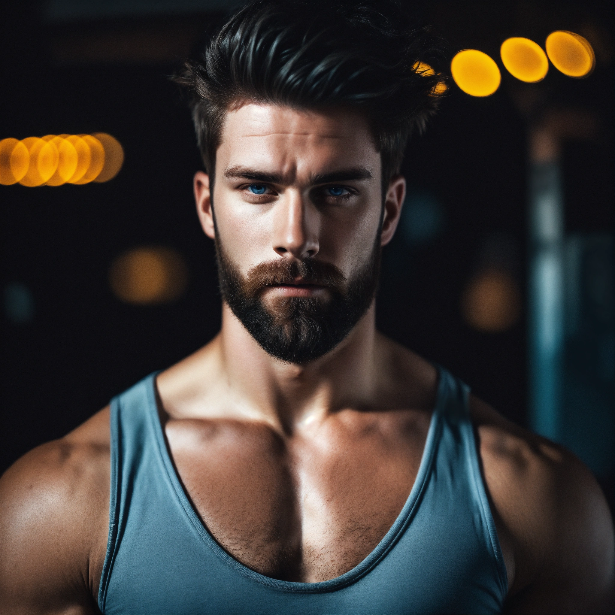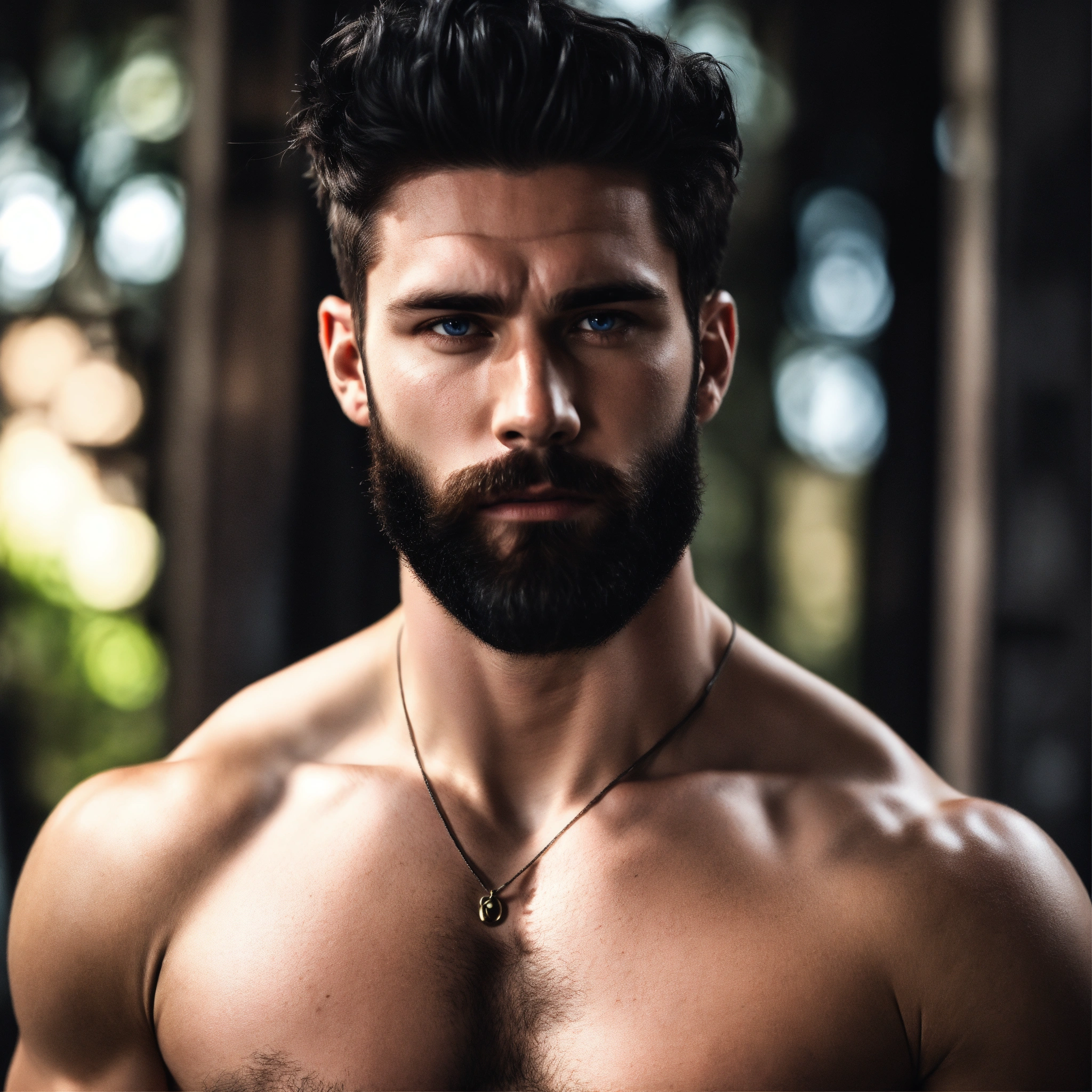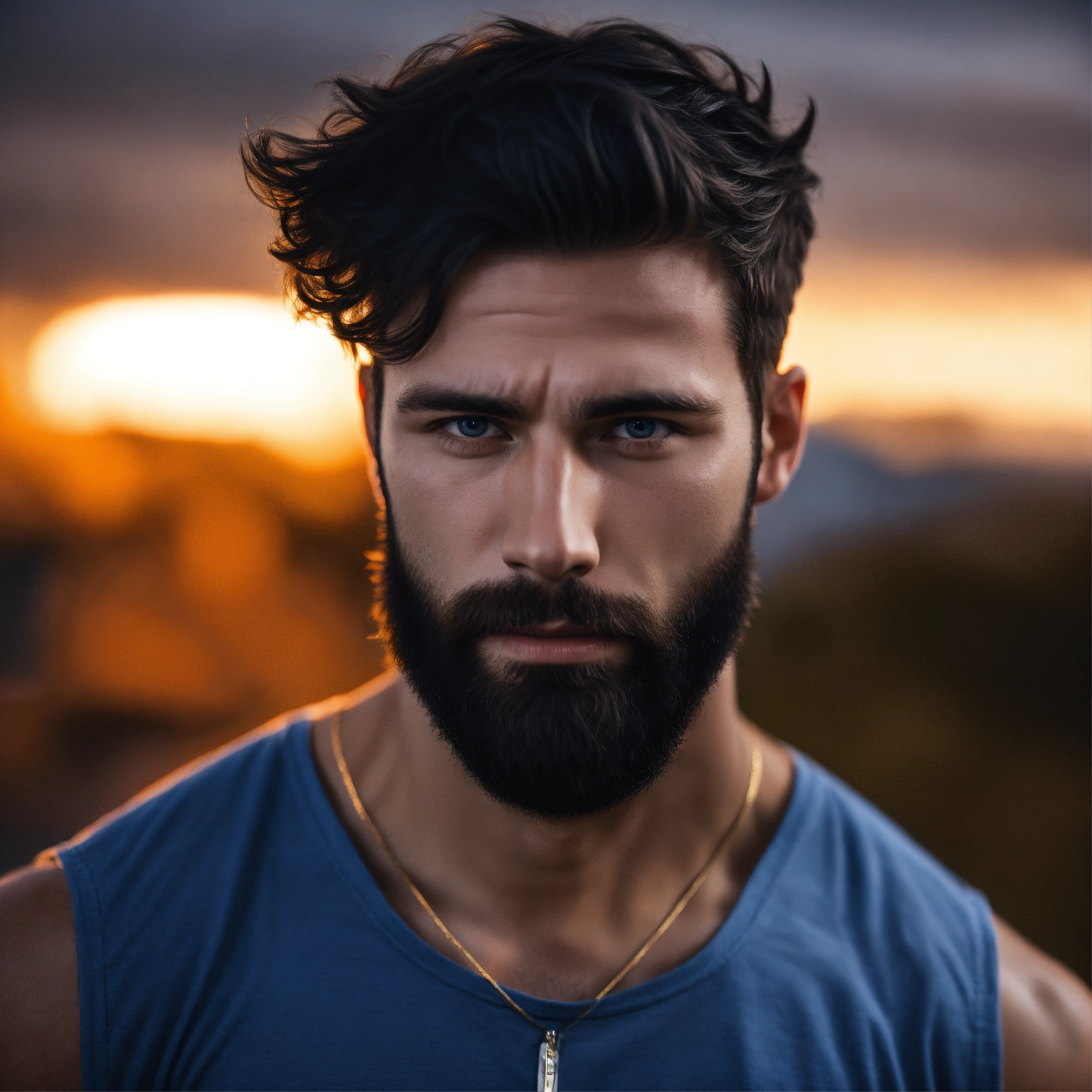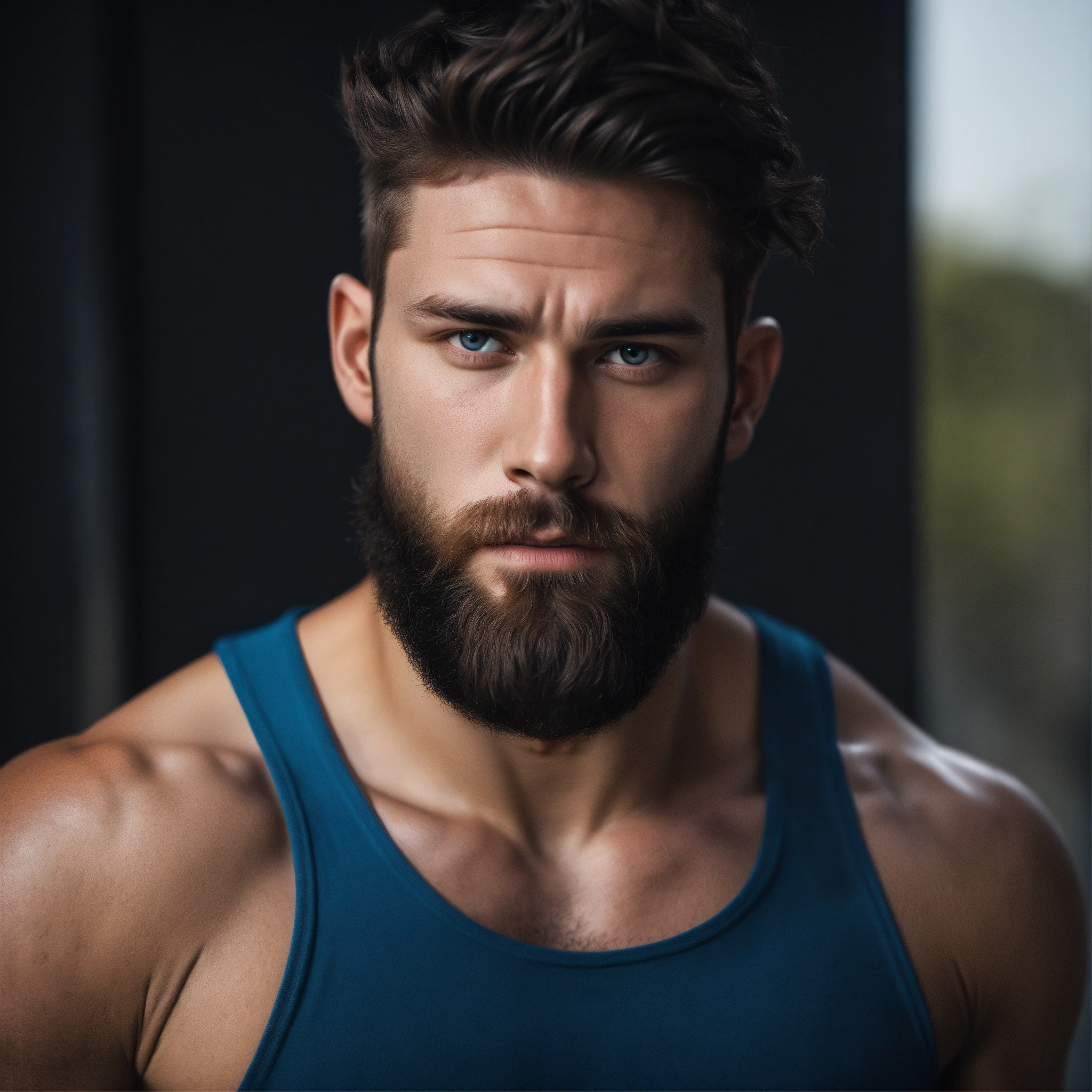 Hot white boy face blue ayes black hair muscular face and beard dark background