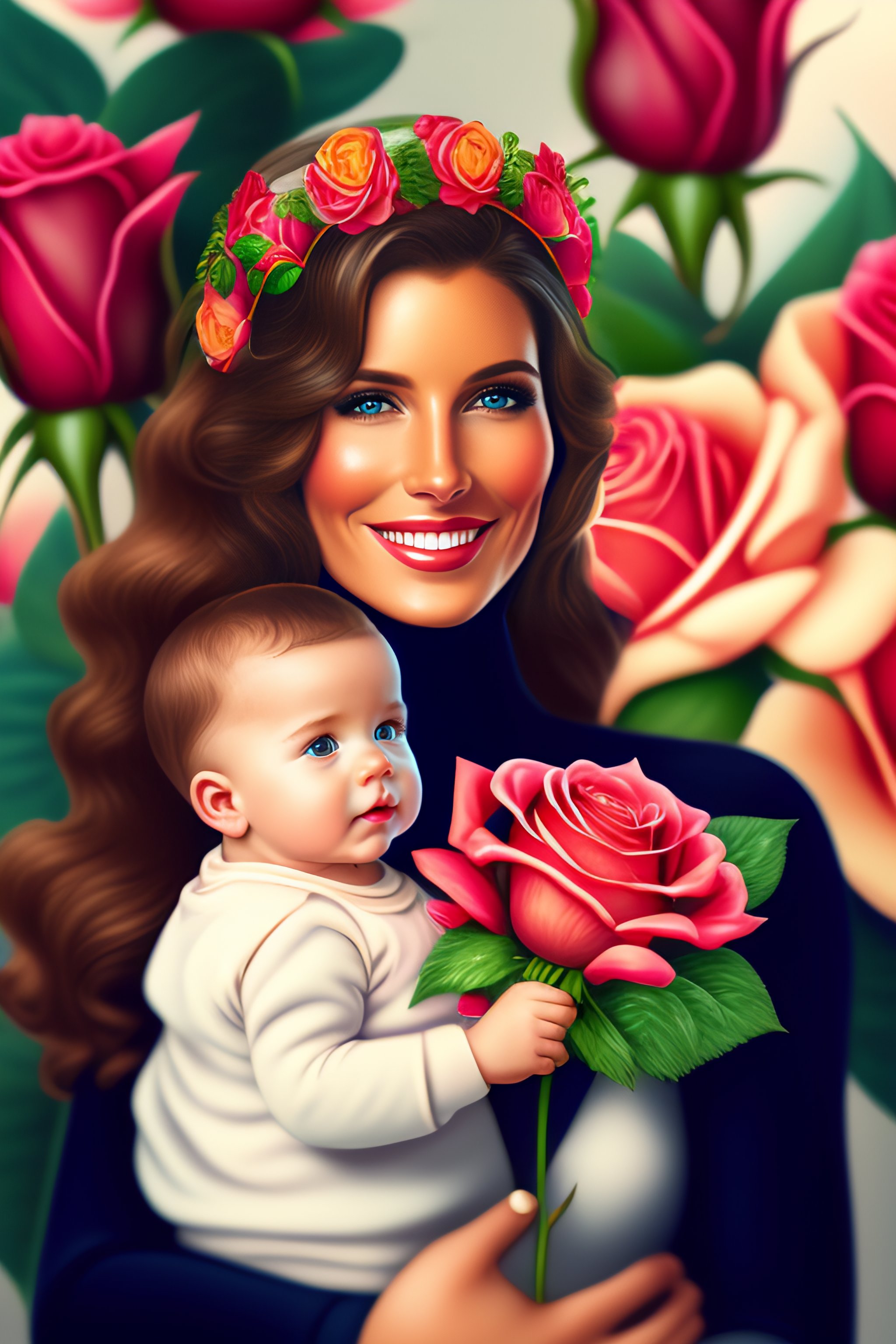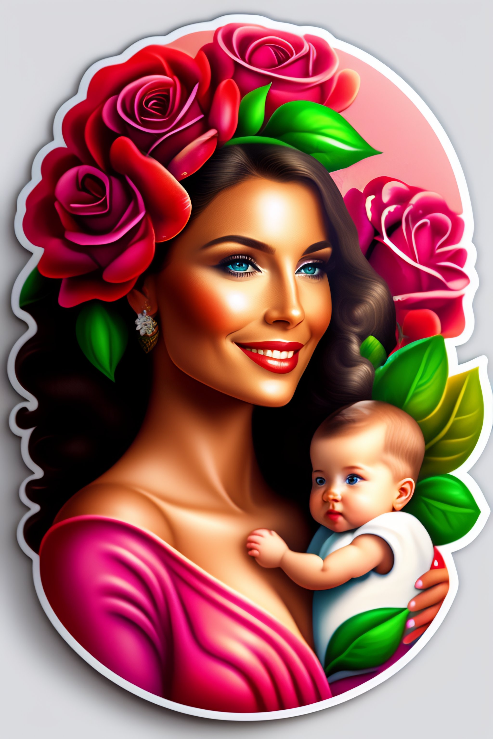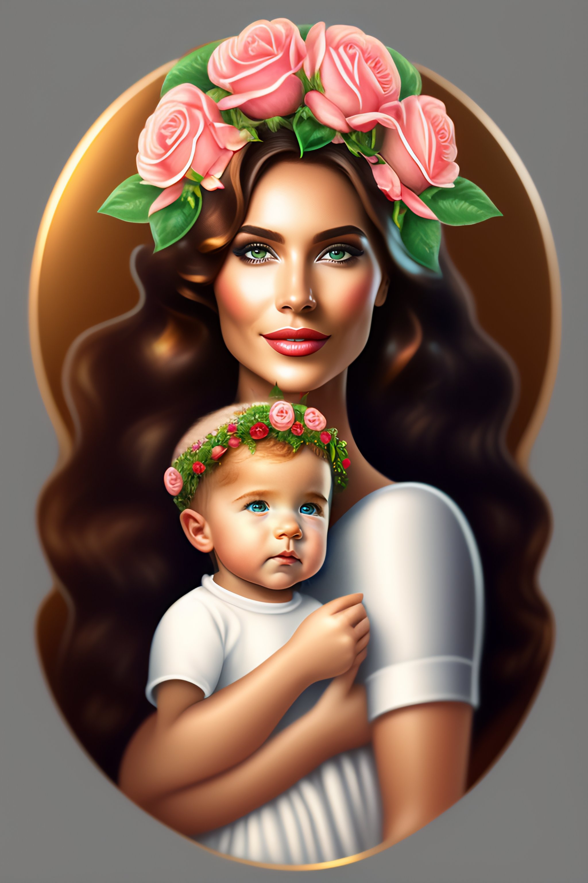 Mother holding a baby with a rose crown on it’s head, sticker, cut-out, coloring book, hyper detailed, ultra-sharp, octane render, 8 k, adobe illustration, photoshop, highly detailed, simple, smooth and clean vector, no jagged lines, vector, smooth, no jagged edges