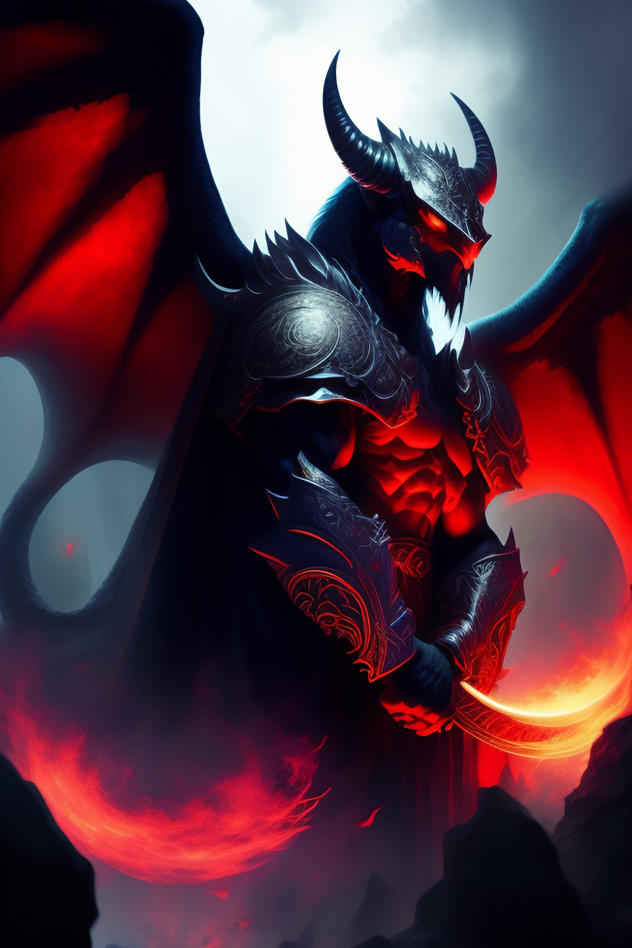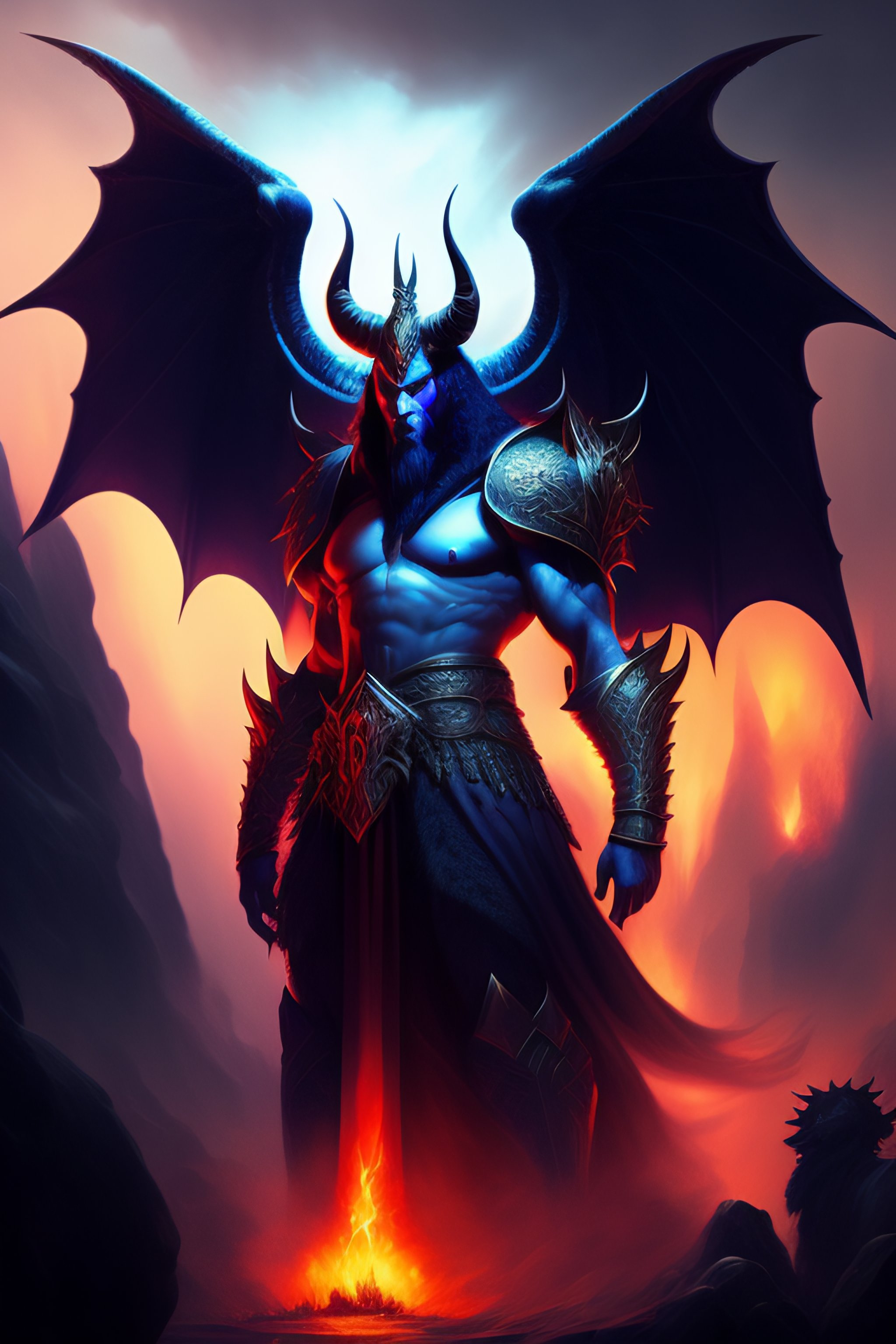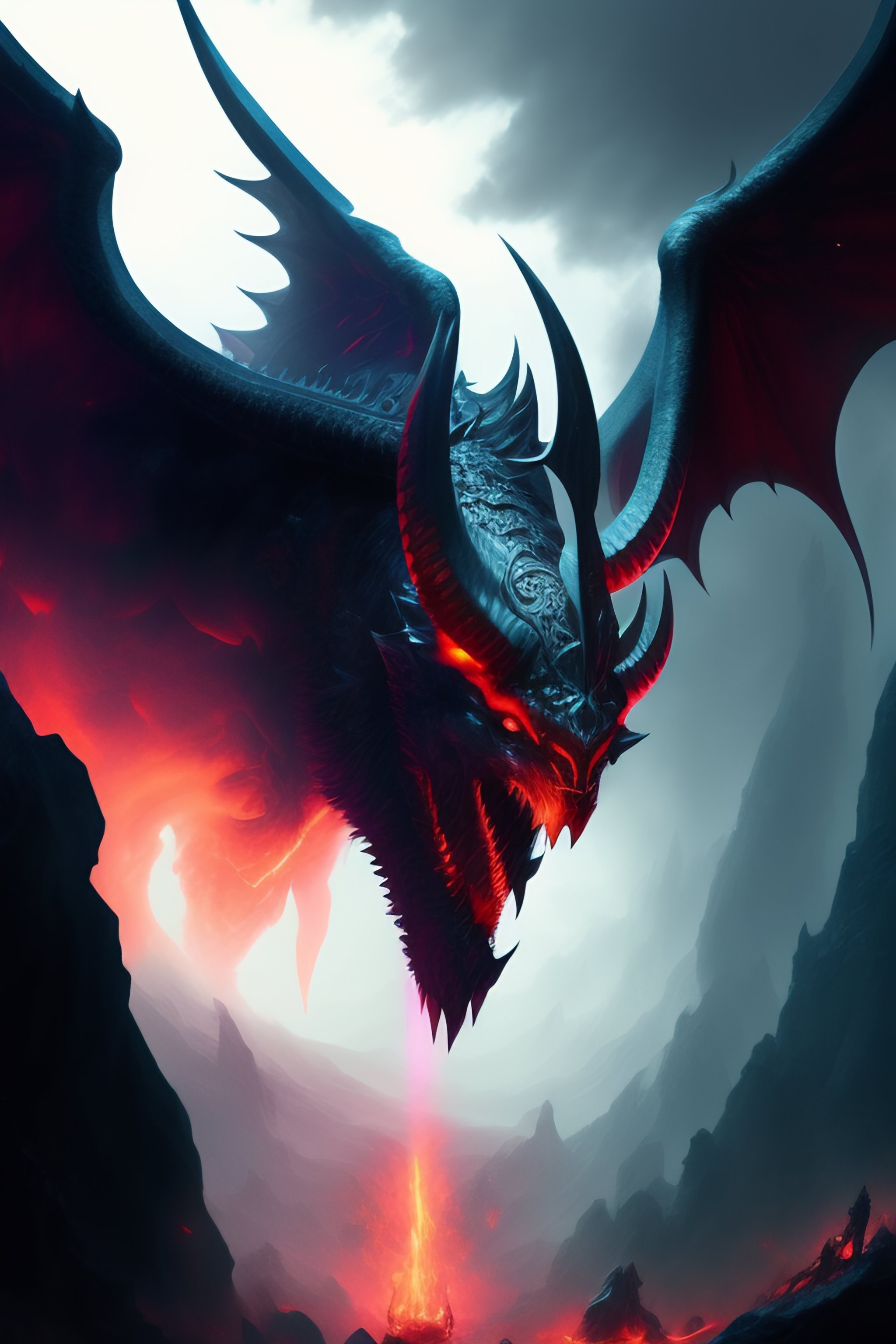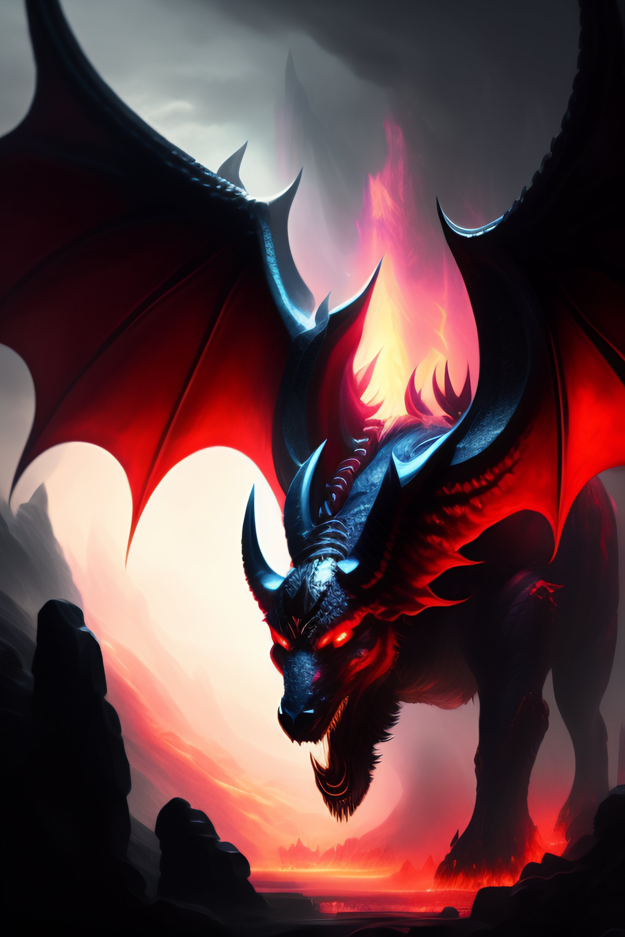 Greater demon baal called the great duke red color wings horns dark magic, digital painting, splash art in a cave in the night horrible horror sinister scary surrounded by enormous dragons and infinite demons