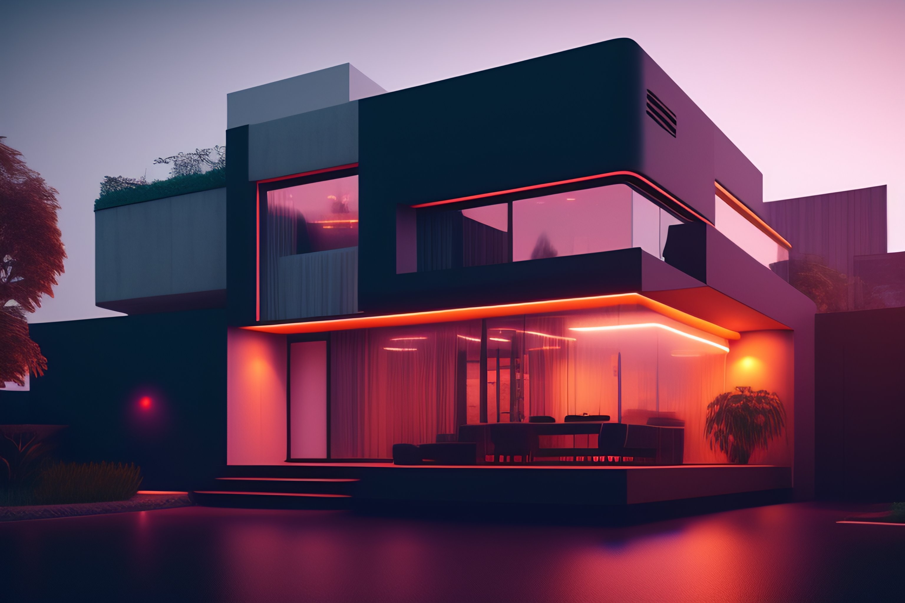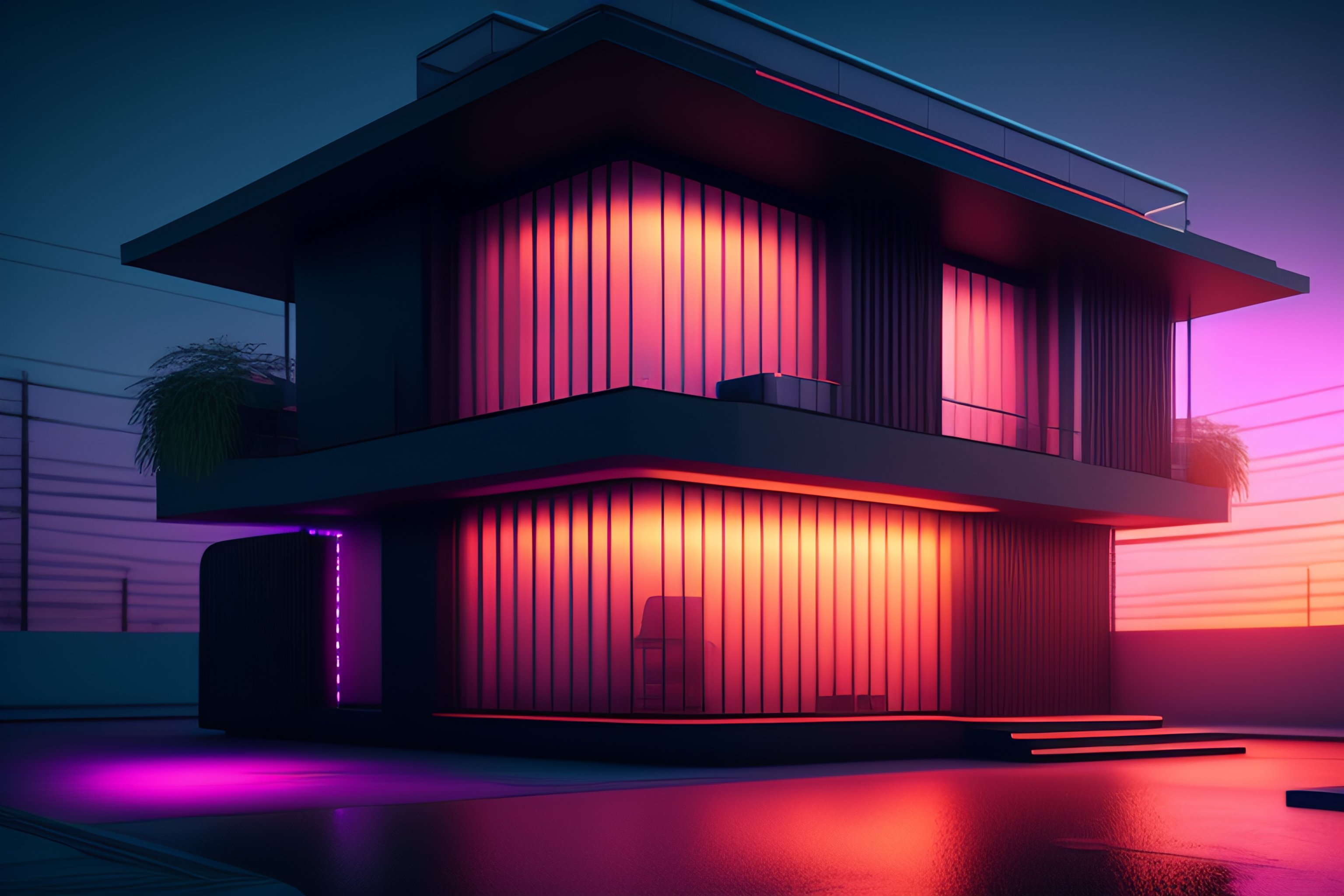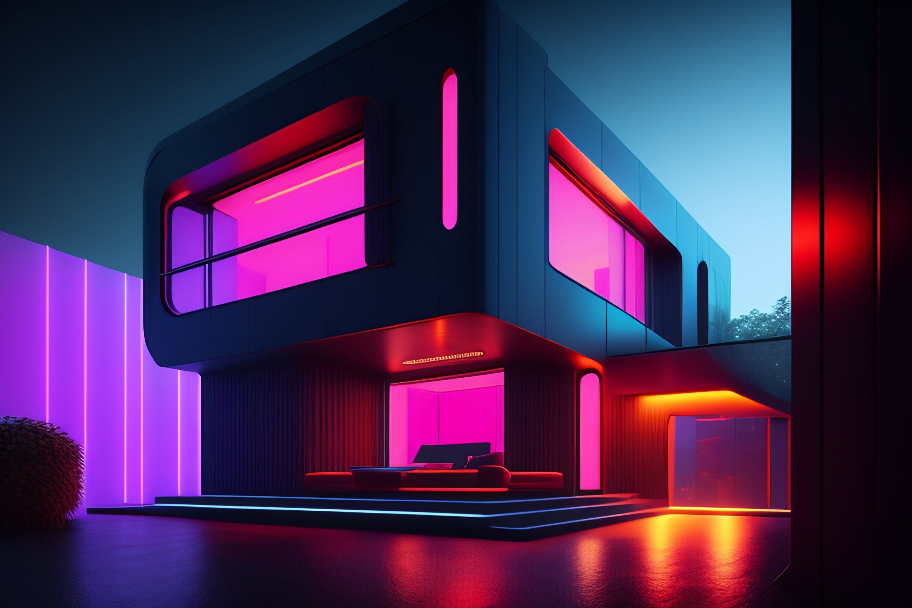Cyberpunk house, dinamic pose, futuristic, neon, cinematic, intricate detail, atmospheric, dramatic lighting, realistic, octane render --ar 2:3 --v 4