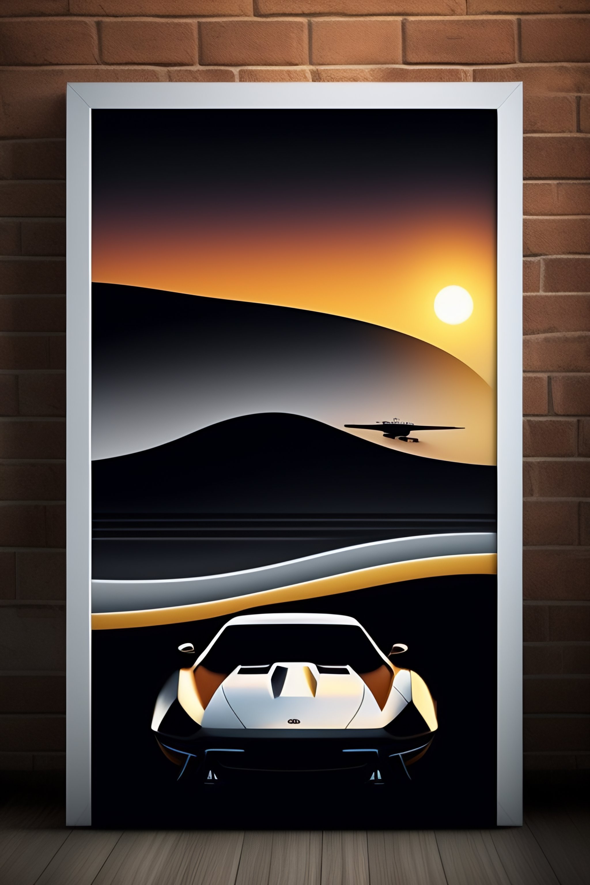 Create vector for a half car silhouette wall art piece that showcases the sleek,