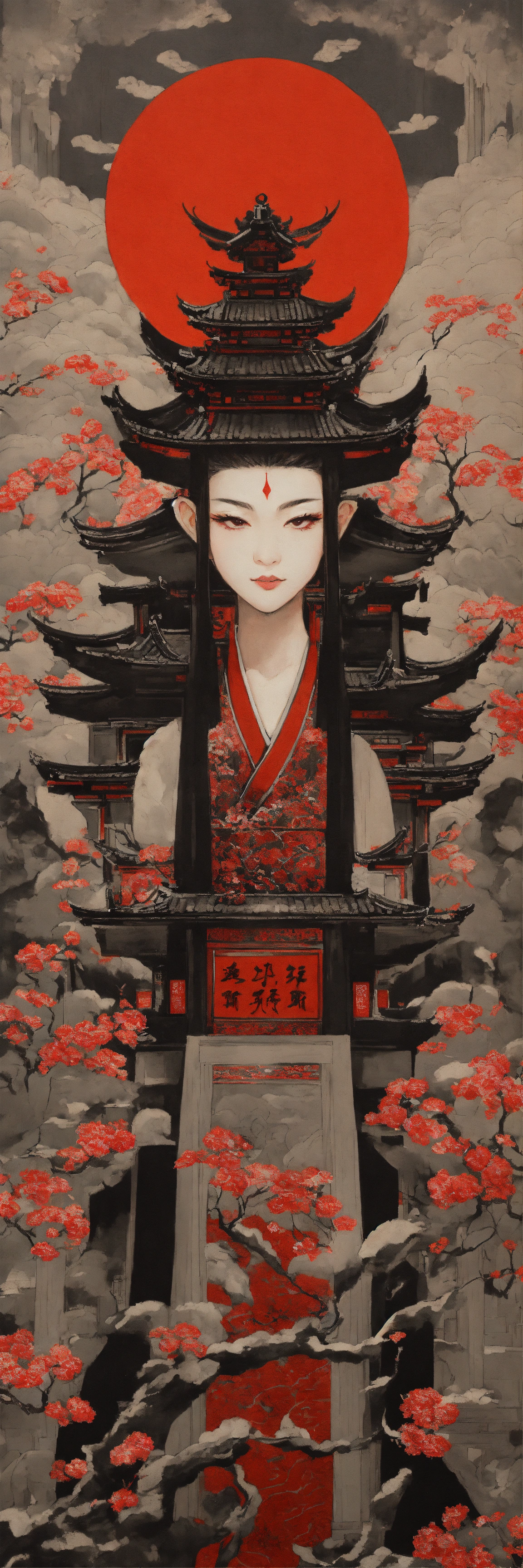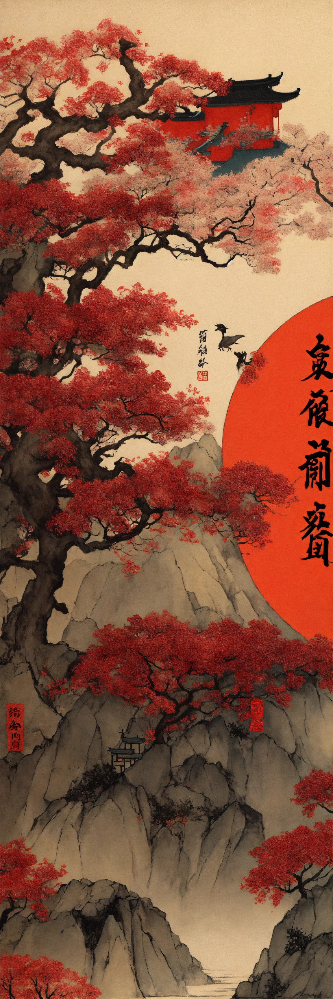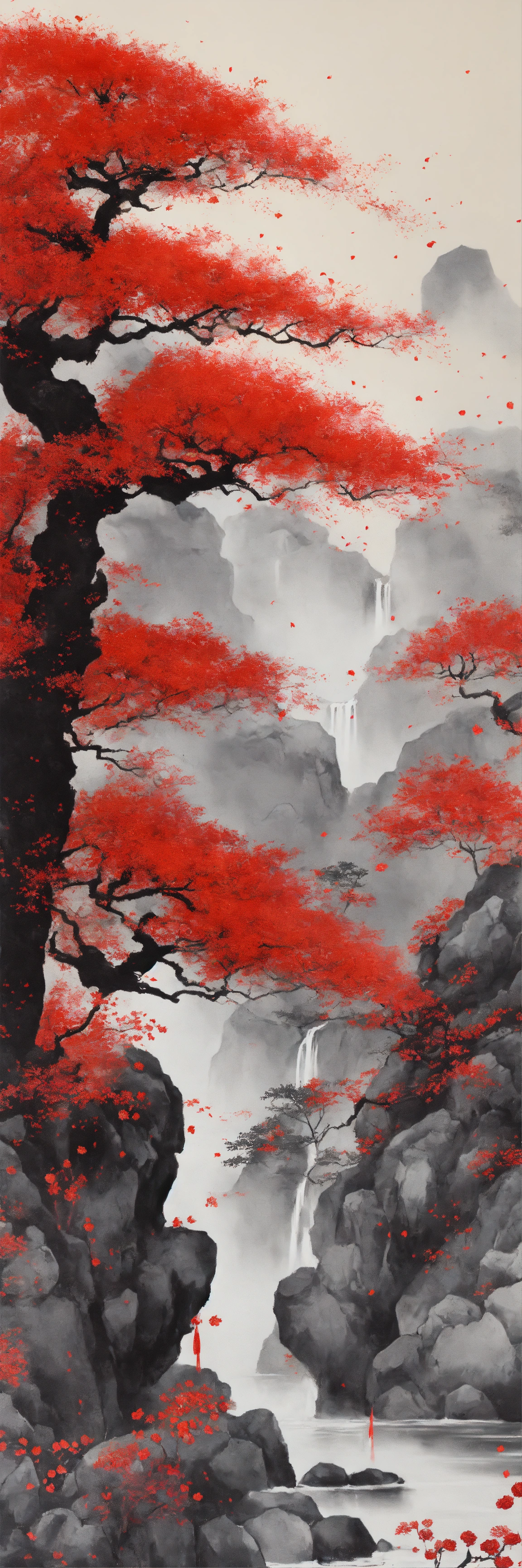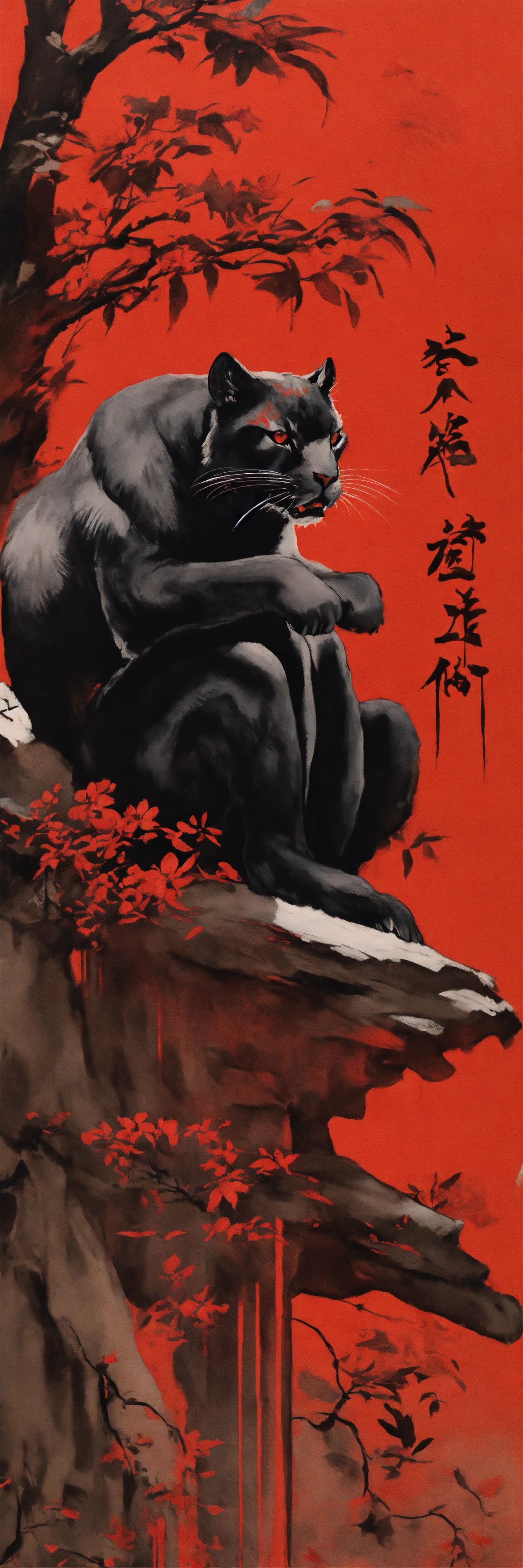 Shuǐmò huà, 水墨画, tinta negra y roja, una pantera en estilo chino, arte en tinta de mschiffer, boceto caprichoso y aproximado, (boceto1.3)