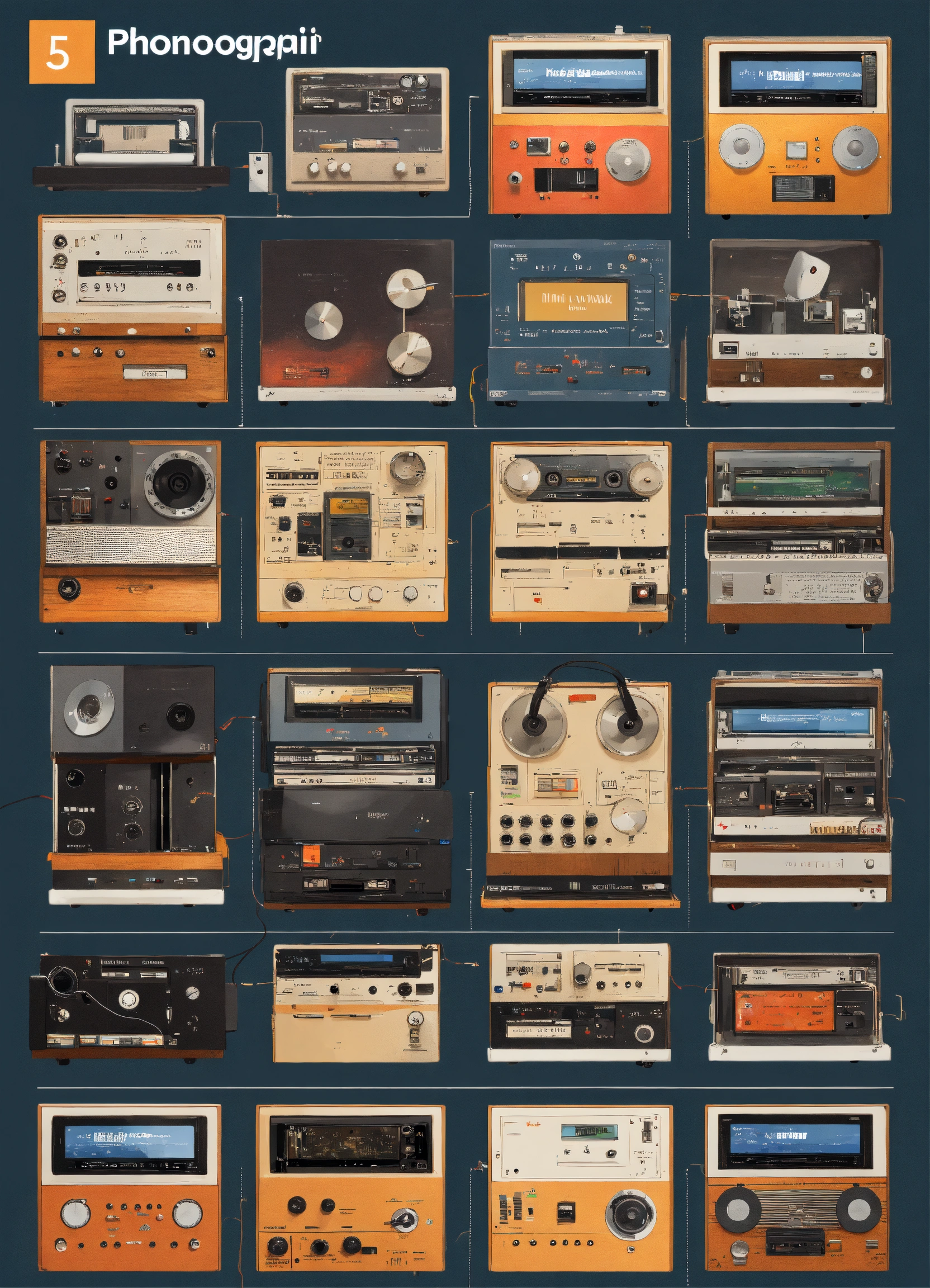 1, phonograph 2, magnetic tape recorder 3, reel-to-reel tape recorder 4, compact cassette recorder 5, digital audio recorder 6, minidisc recorder 7, digital audio workstations 8, voice assistants 9, virtual reality 10, automatic speech recognition
