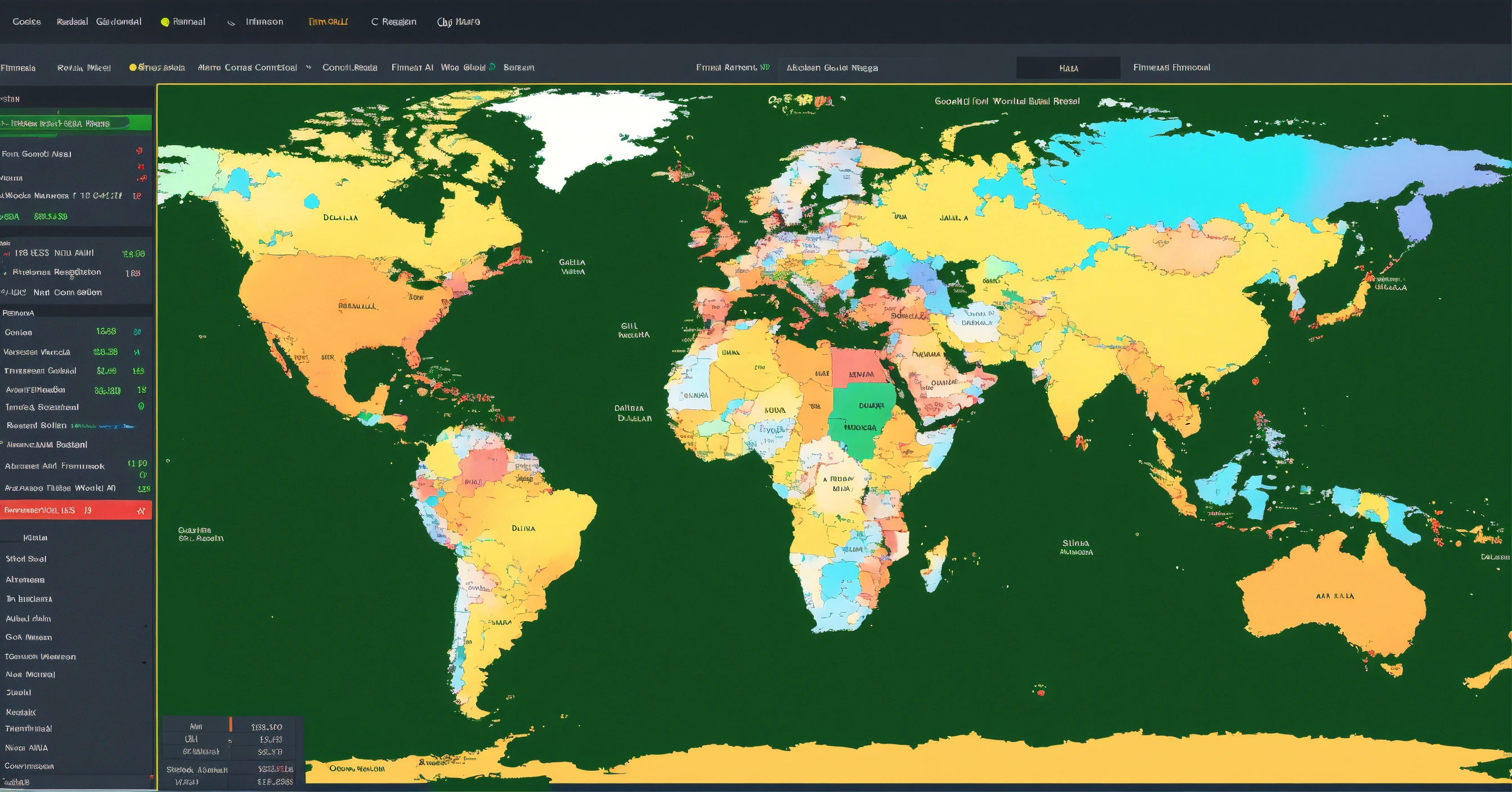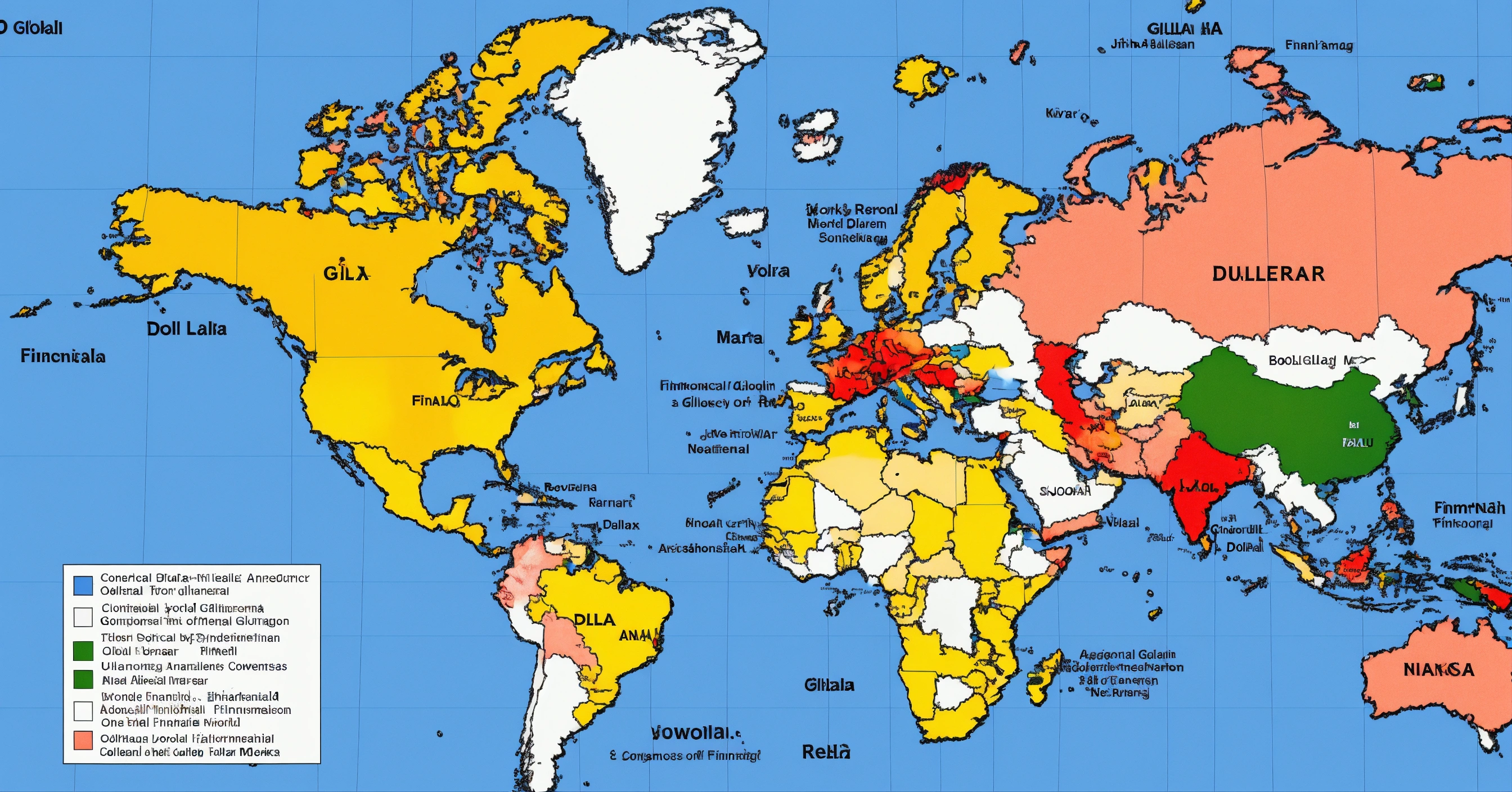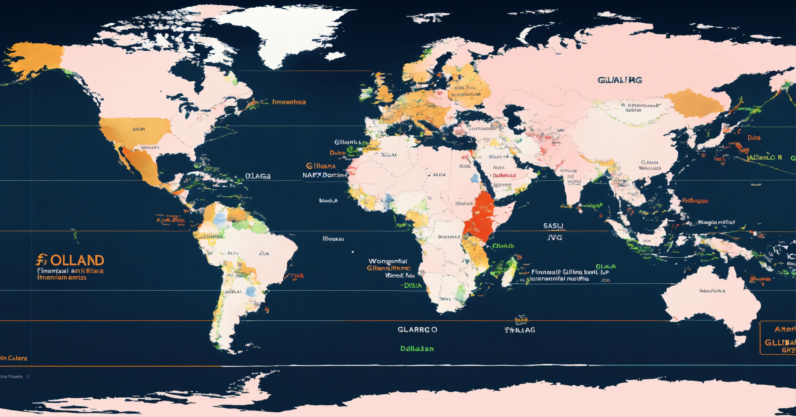 Create a world map with financial elements integrated into different regions. for example, you can show bonds in one region, stocks in another, and the dollar in yet another. this conveys the global nature of financial markets.
