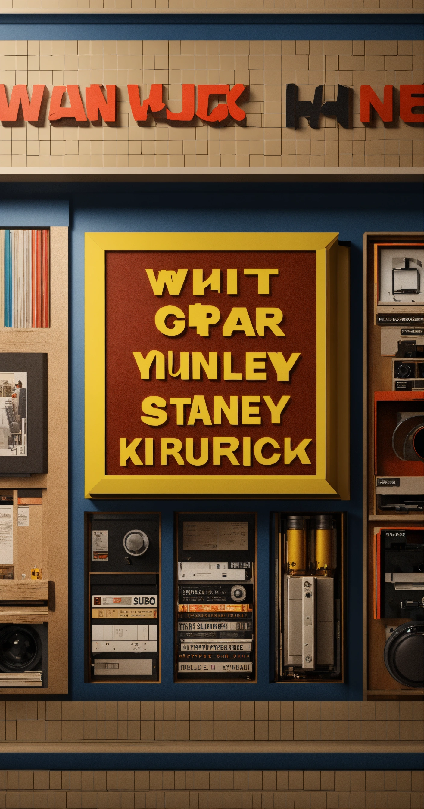 Graphic designers, typography, inspired by stanley kubrick, photorealistic rendering, hyper-realistic, 8k