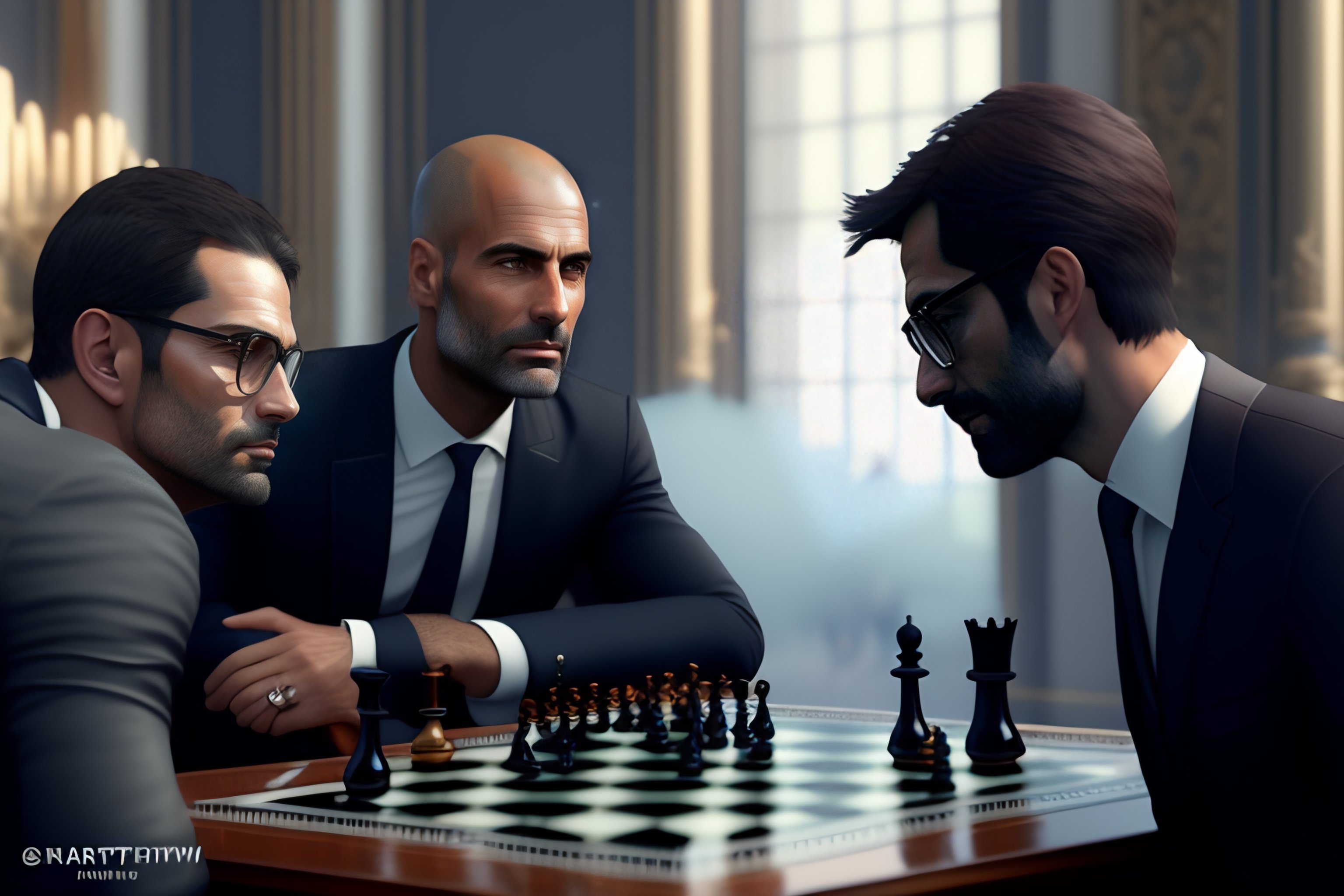 Highly detailed pep guardiola and jurgen klopp playing chess gracefully, louis vuitton, cinematic, detailed, atmospheric, epic, concept art, matte painting, background, mist, photo-realistic, concept art, volumetric light, ((long shot)), highly detailed realistic painting by grandmaster, unreal engine, octane render, 4k, by artgerm and drew struzan and krenz cushart, trending on artstation steps: 50, sampler: plms, cfg scale: 7, seed: 1325962227, size: 300x900, model hash: 7460a6fa