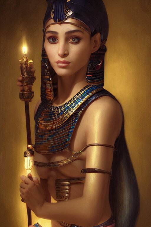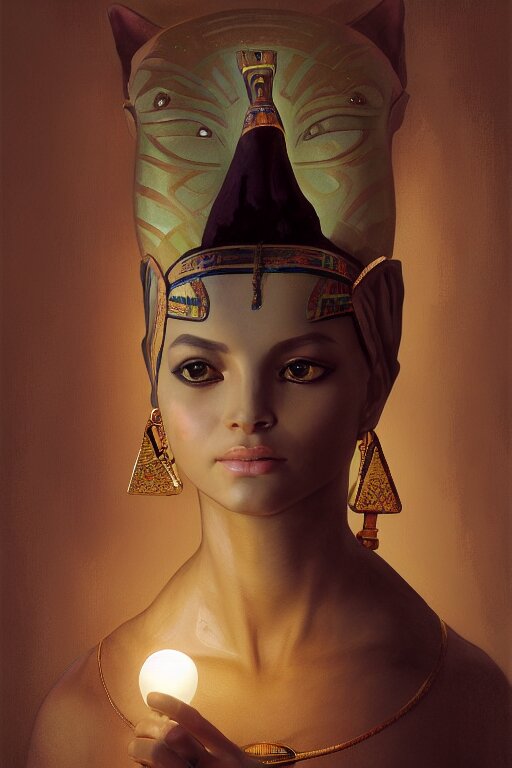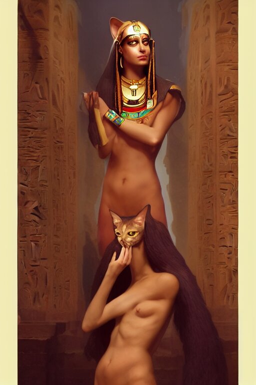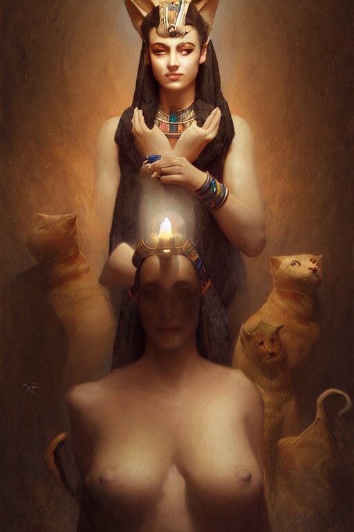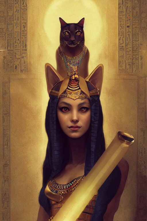 Portrait of the beautiful egyptian goddess, bastet, bast, woman / cat hybrid, torchlight in an egyptian tomb, digital art by ruan jia and mandy jurgens and artgerm and william - adolphe bouguereau, highly detailed, trending on artstation, award winning